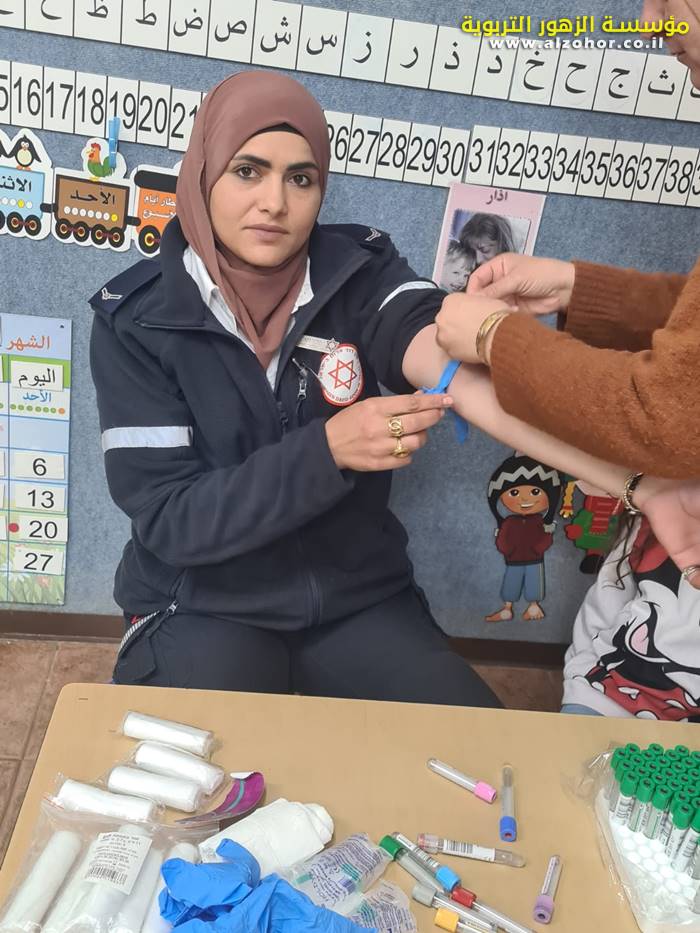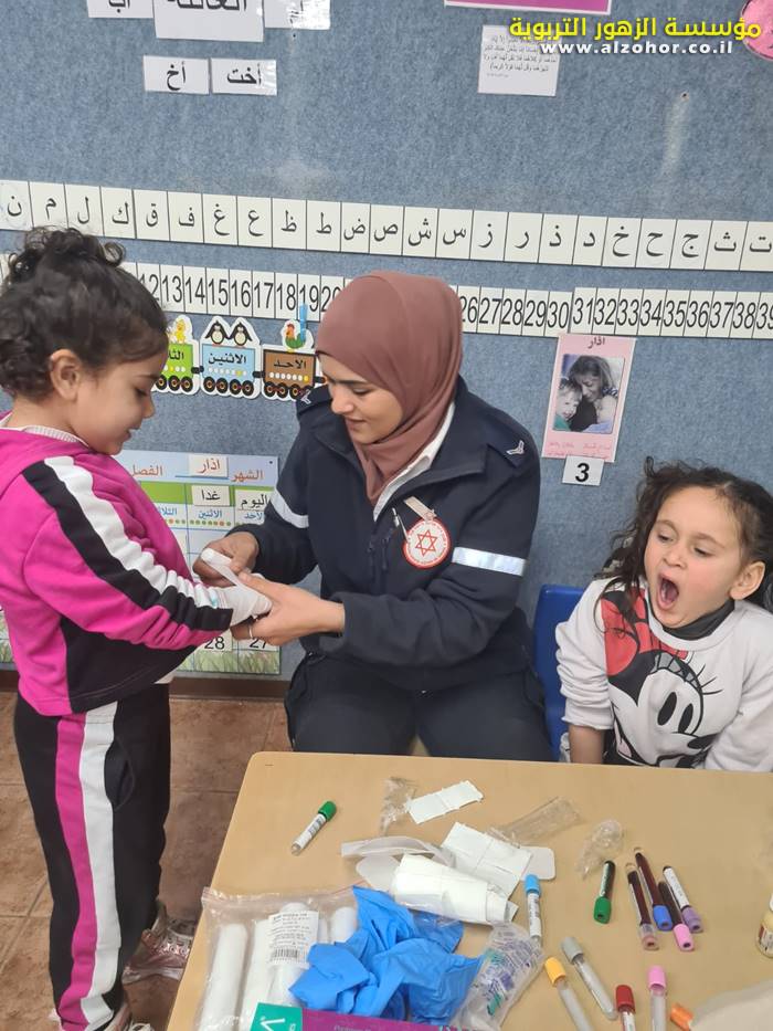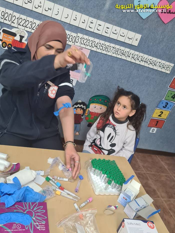 أطفال ومربيات روضة الإبتسامه يتقدمون بجزيل الشكر لأم الطفله جوري هيجاوي والتي زارت روضتنا للشرح عن مهنتها الرائعه ” مسعفة وتقوم بإجراء فحوصات دم ” لها منا جزيل الشكر والعرفان.