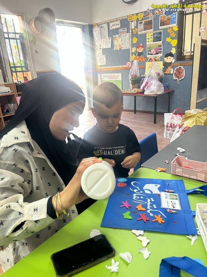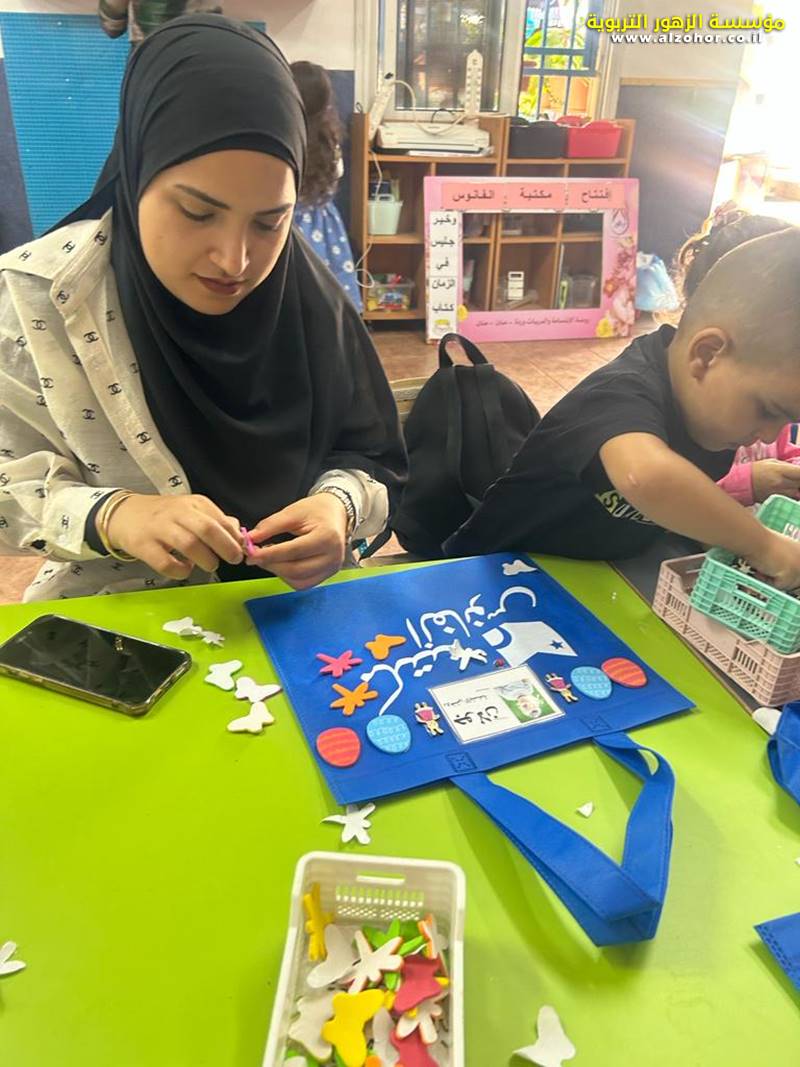 افتتاح مكتبة الفانوس بروضة الإبتسامه بمشاركة أمهات اطفالنا وتقديم بعض الشرح والنصائح عن اهمية القصة في حياة الطفل من مديرة المكتبة العامه السيدة منى حجار وكذلك سرد قصة الدب الكسول من تقديم ام الطفل اشرف ابو البصل وتزيين حقيبة الفانوس كل طفل مع امه.