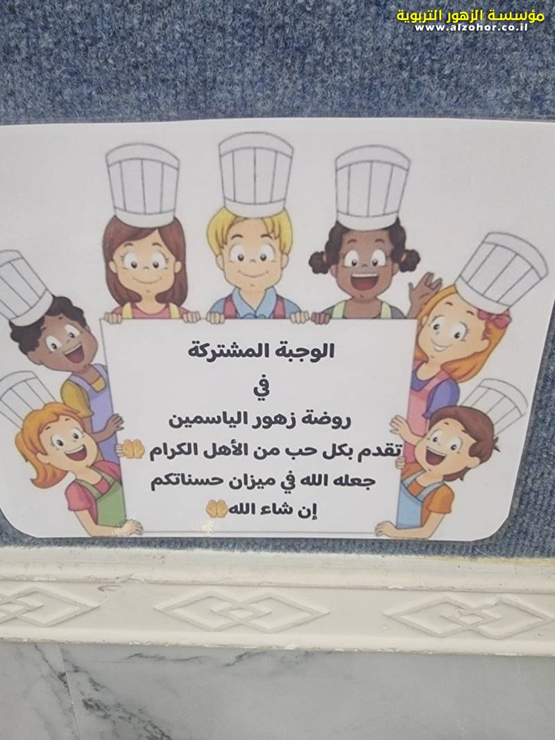 الرئيسيةروضة زهور الياسمينالوجبة المشتركة في روضة زهور الياسمين مقدمة من أهل الطفلين خطاب وعمر سمار