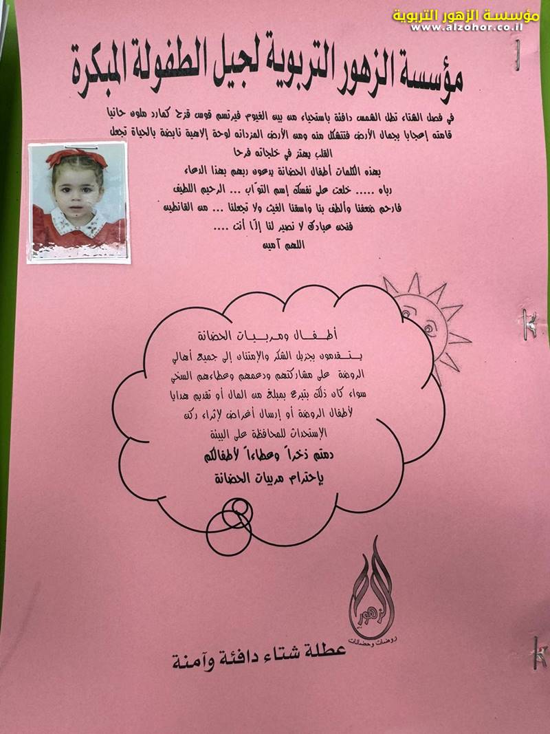الرئيسية ⁄ حضانة الزهور ⁄ احتفال اطفال حضانة الزهور بقدوم فصل الشتاءحضانة الزهور احتفال اطفال حضانة الزهور بقدوم فصل الشتاء مؤسسة الزهور 23/12/20232980 شارك على فيسبوكشارك على تويتر حضانة الزهور 🌹💐🌺 احتفال اطفال حضانة الزهور بقدوم فصل الشتاء 🌈🌨️🌤️ شارك على فيسبوكشارك على تويتر تصفّح المقالات السابق فعاليات خلال الاسبوع في حضانة الزهورالتالي احتفال روضة الزهور بعيد ميلاد الأمّورة لانا ذياب اترك تعليقاً إلغاء الردلن يتم نشر عنوان بريدك الإلكتروني. الحقول الإلزامية مشار إليها بـ *الاسم * البريد الإلكتروني * الموقع الإلكتروني احفظ اسمي، بريدي الإلكتروني، والموقع الإلكتروني في هذا المتصفح لاستخدامها المرة المقبلة في تعليقي. التعليق * Δ