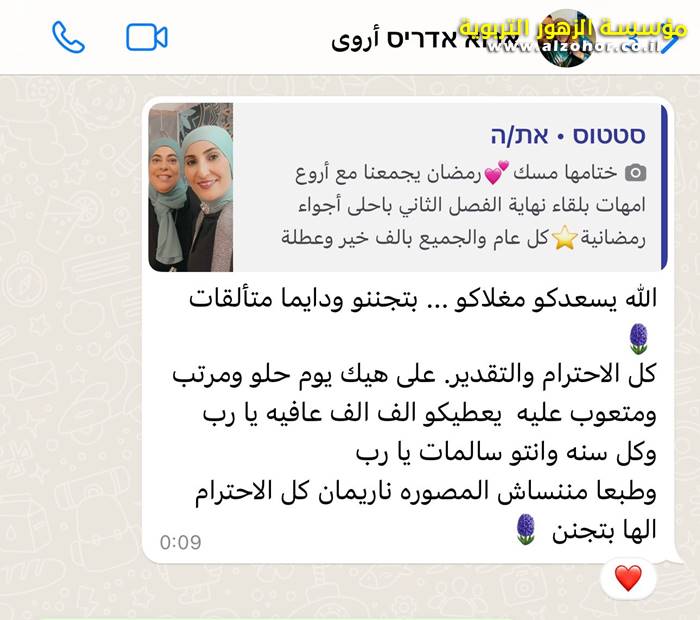 وحلول عيد الفطر وانتهاء الفصل الثاني في روضة زهور السوسن