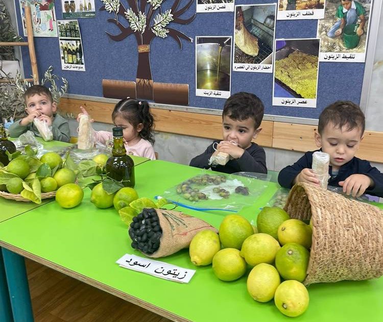 اطفال حضانة الزهور وفعاليات رص وكبس الزيتون