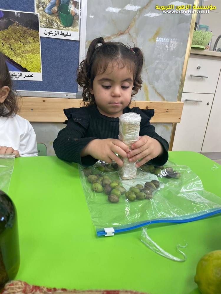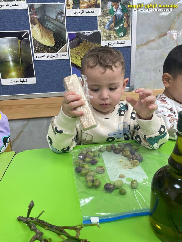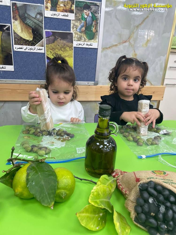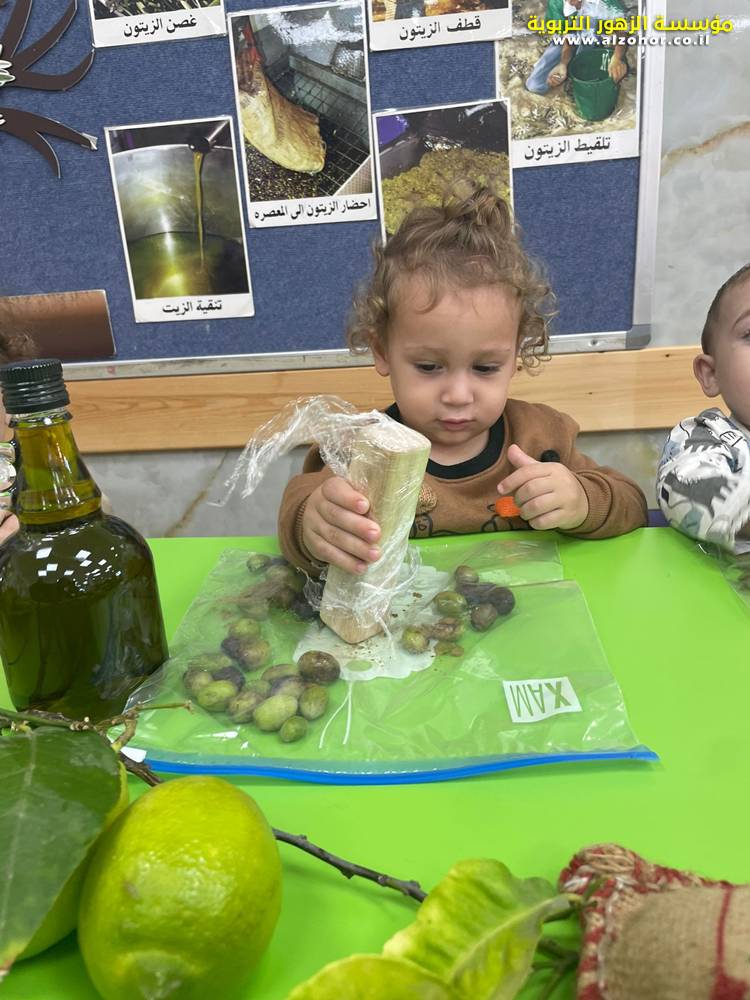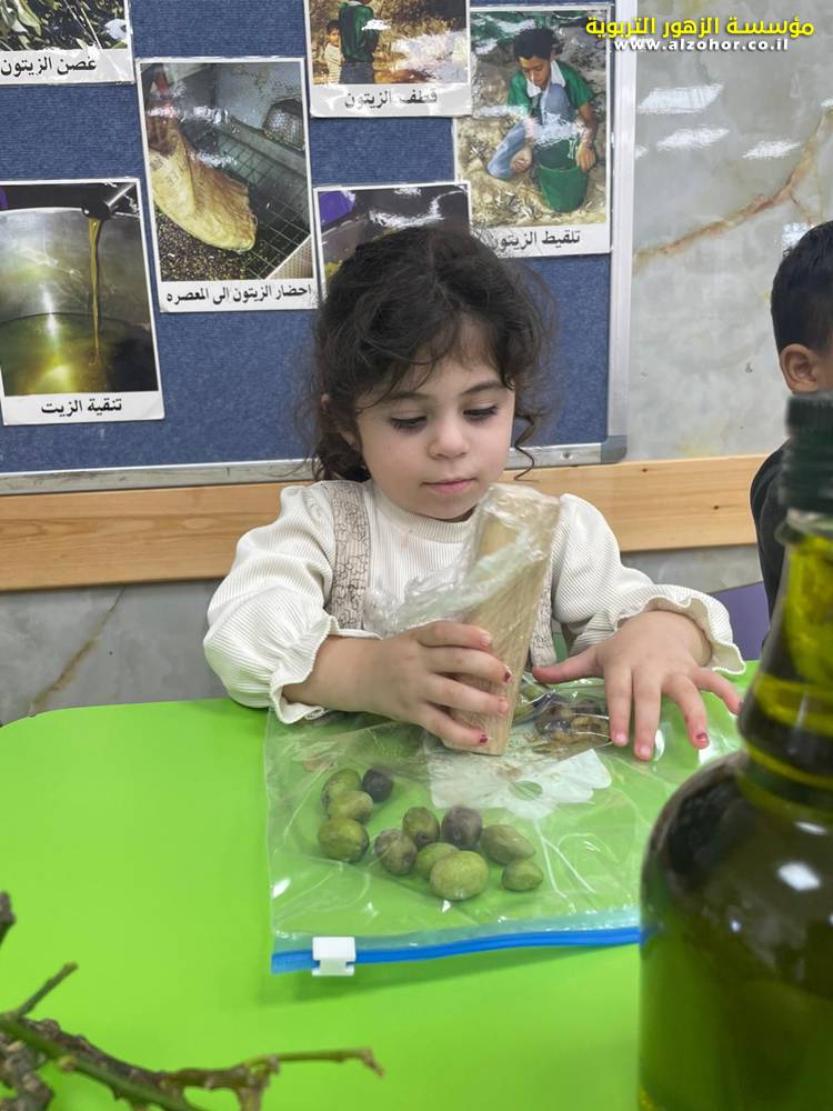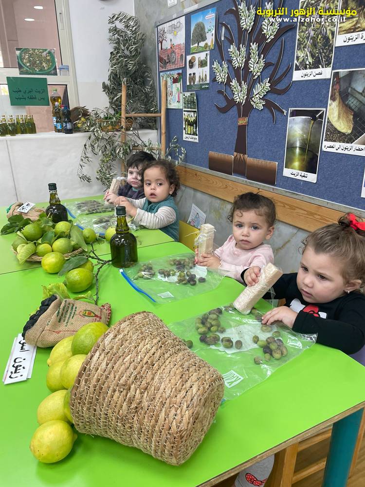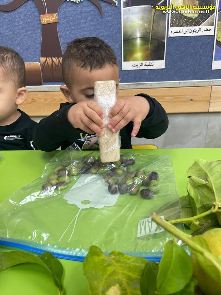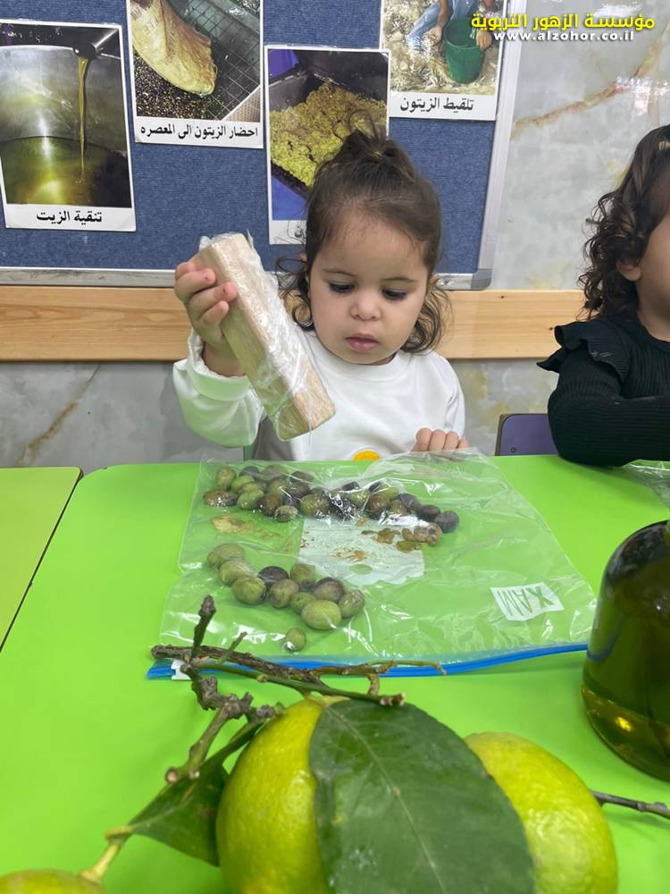 اطفال حضانة الزهور وفعاليات رص وكبس الزيتون