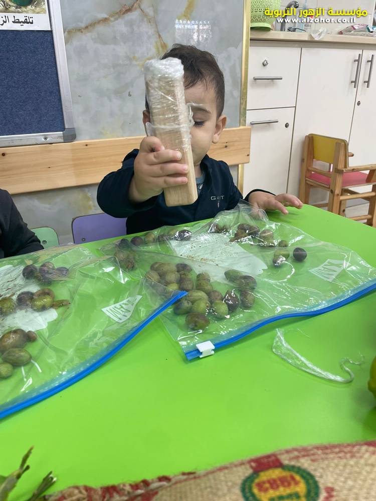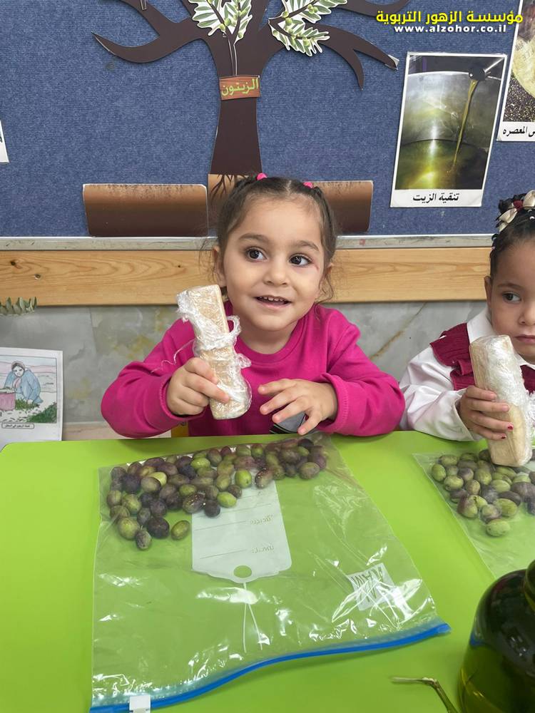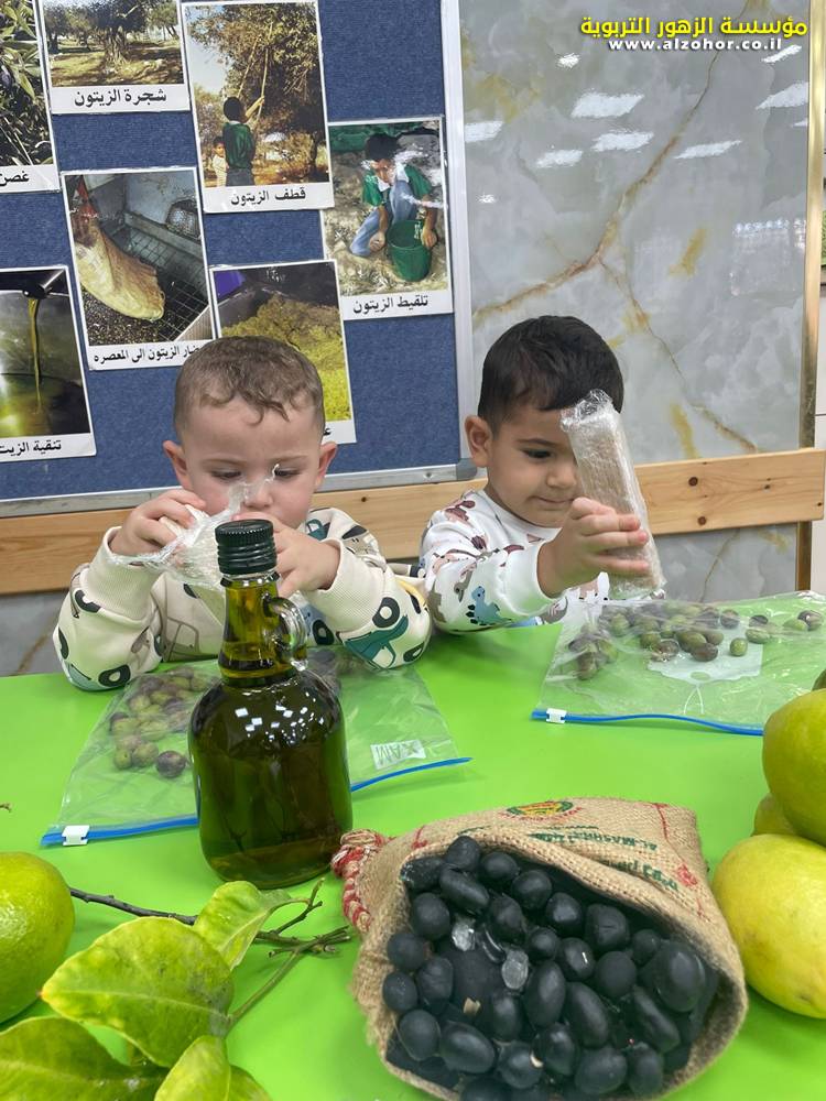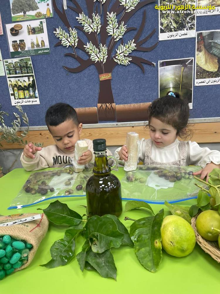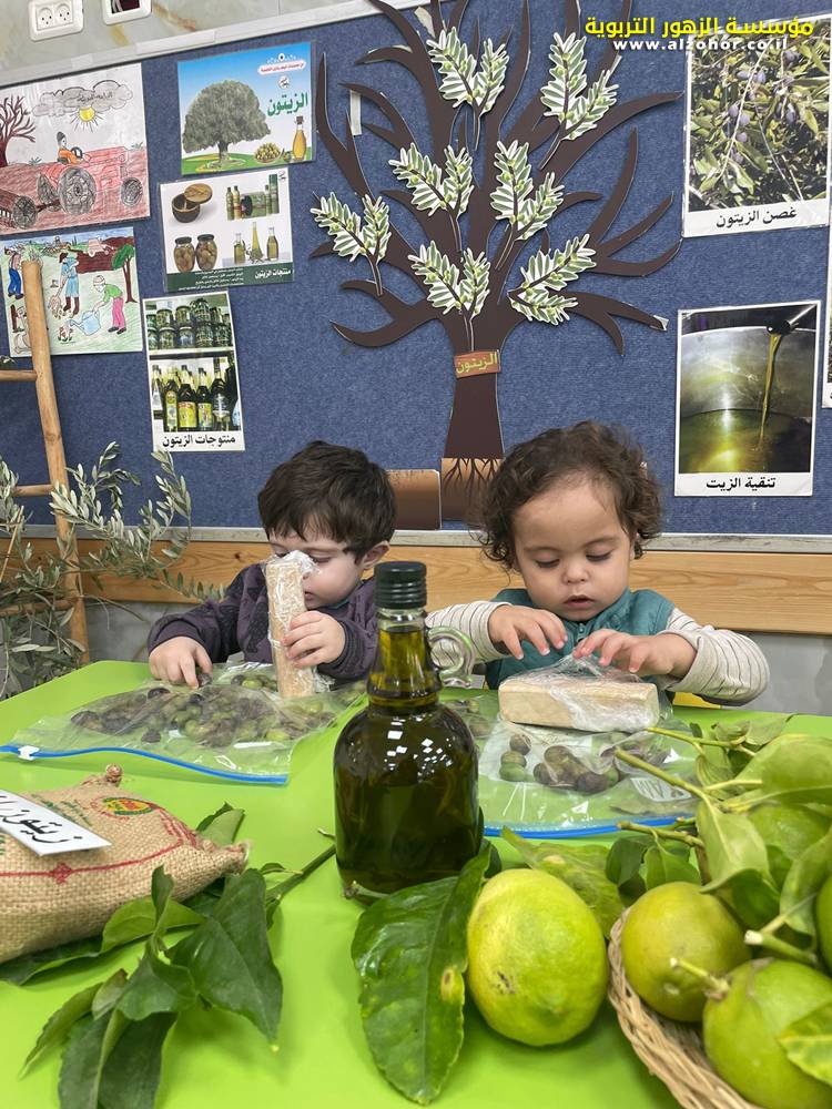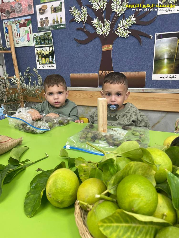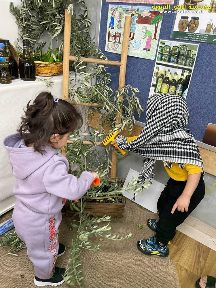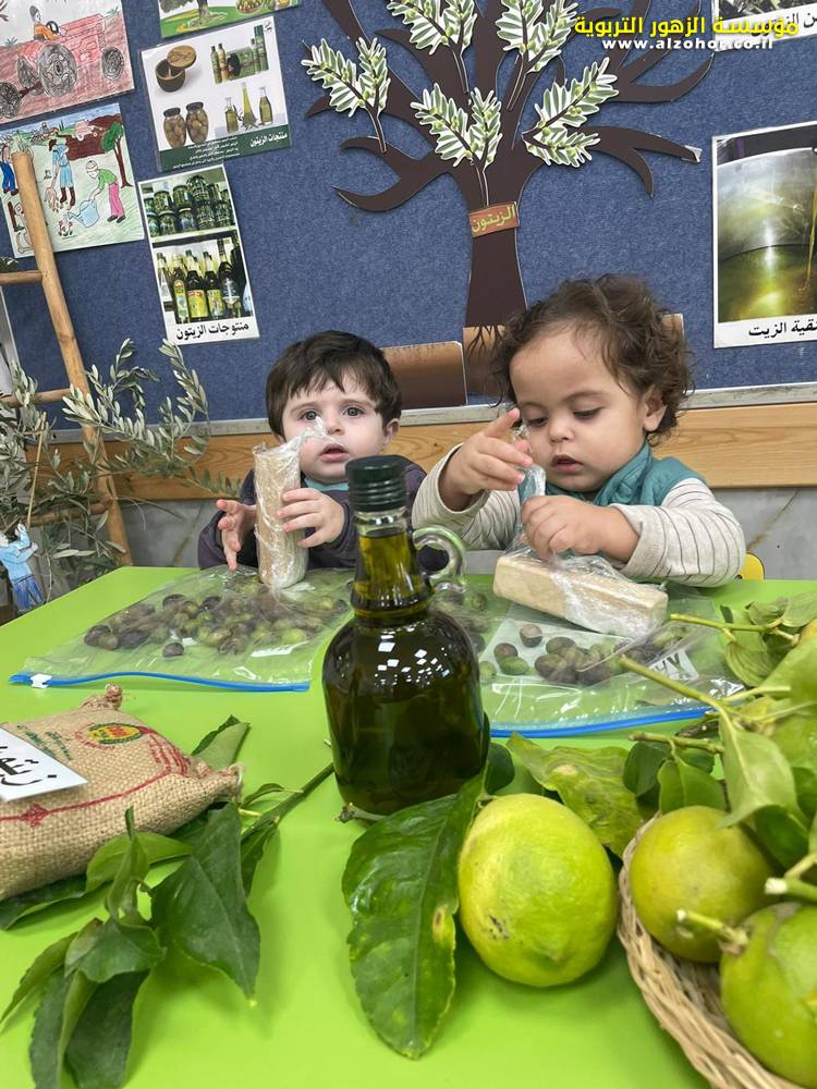 اطفال حضانة الزهور وفعاليات رص وكبس الزيتون