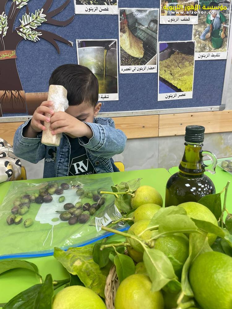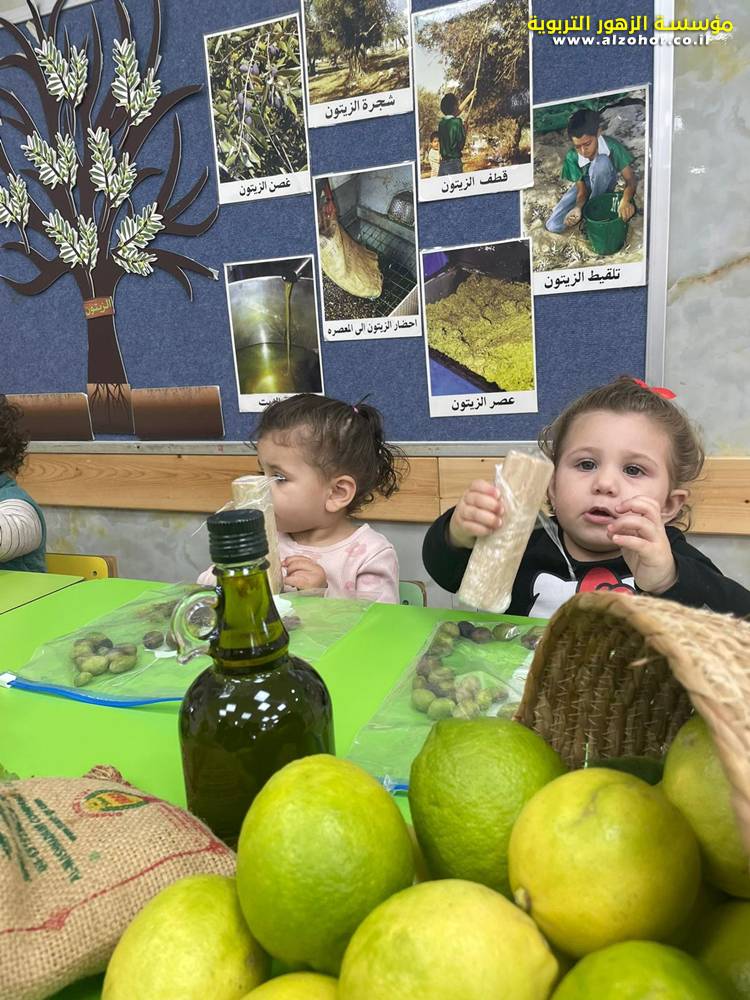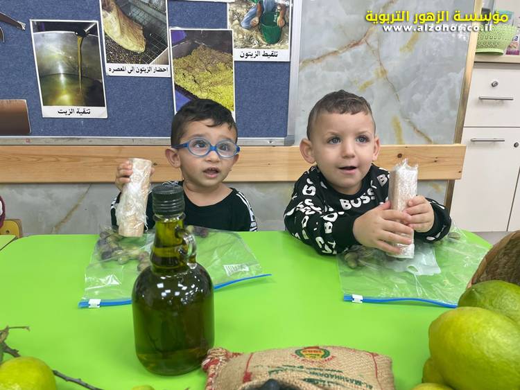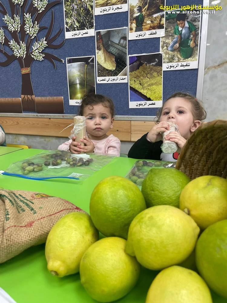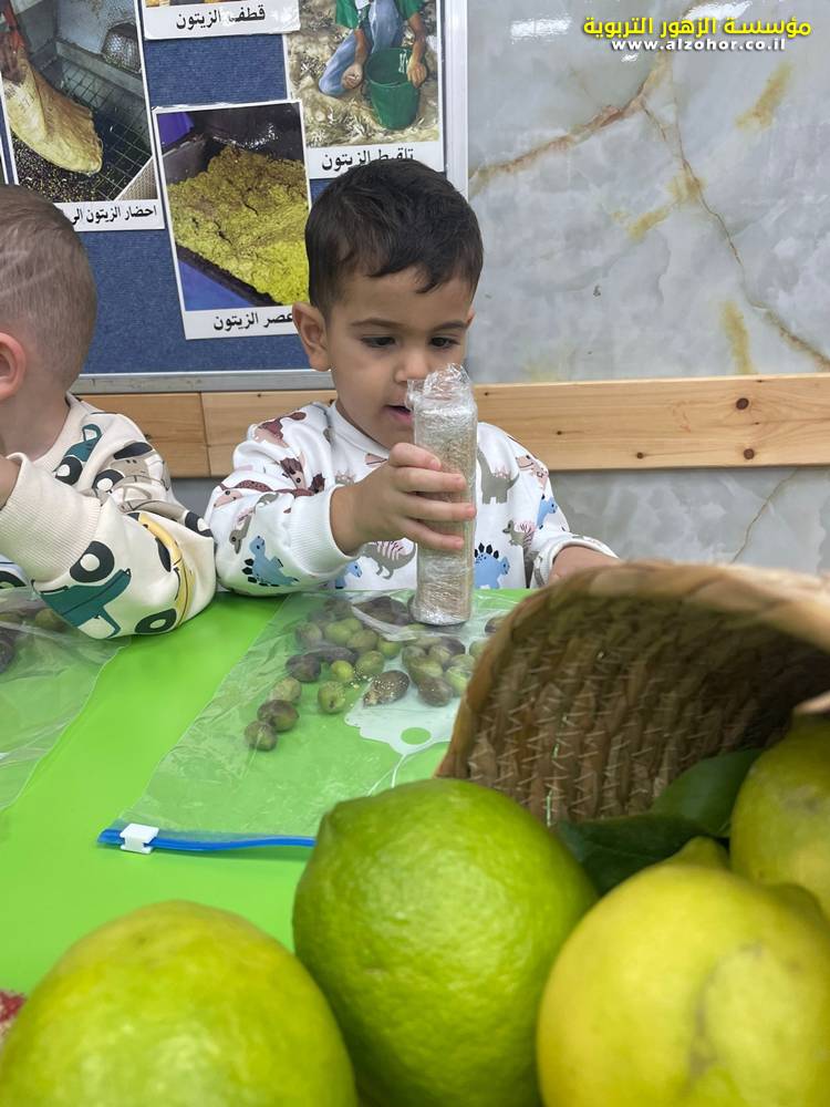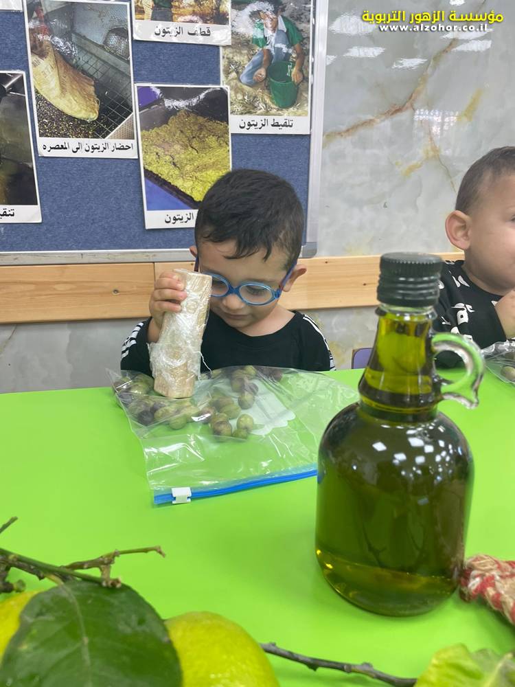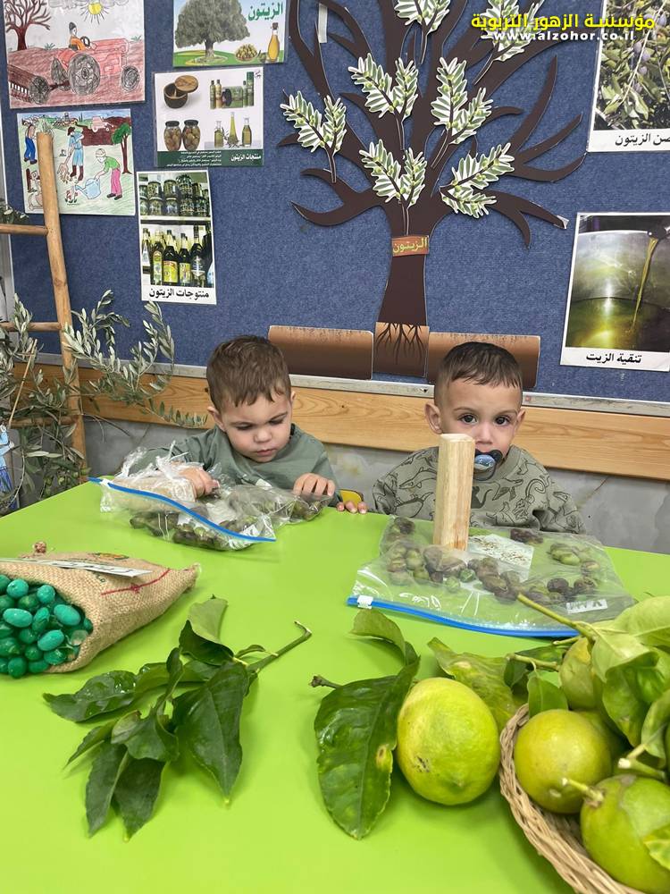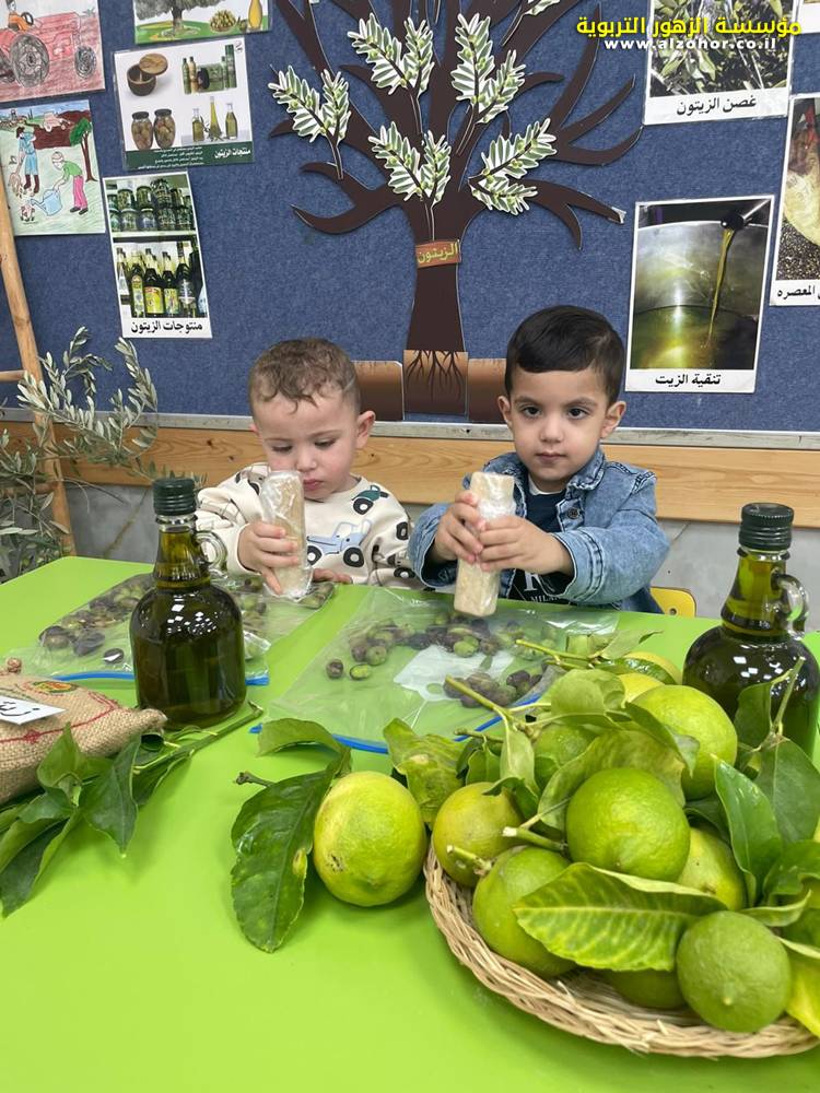 اطفال حضانة الزهور وفعاليات رص وكبس الزيتون