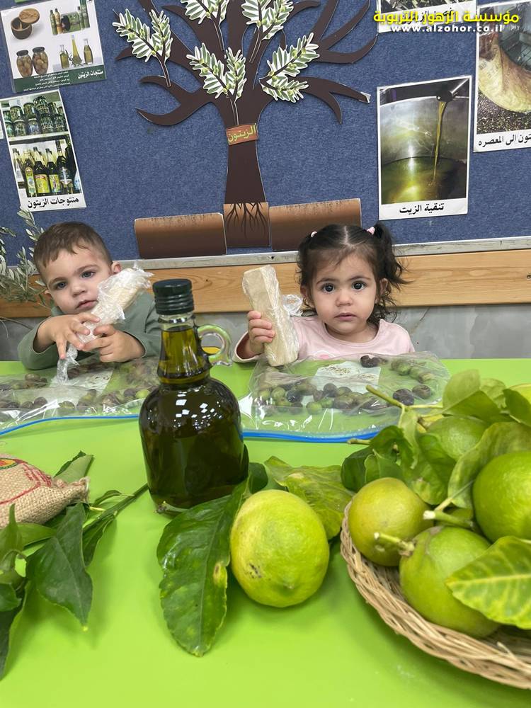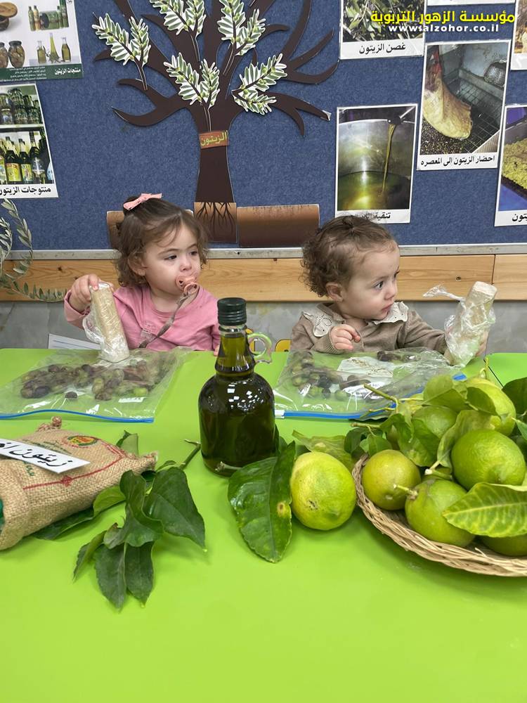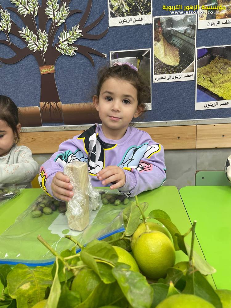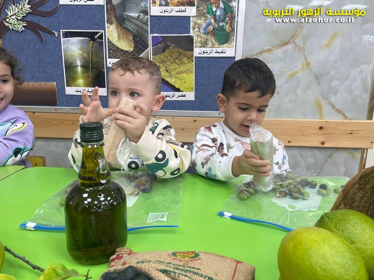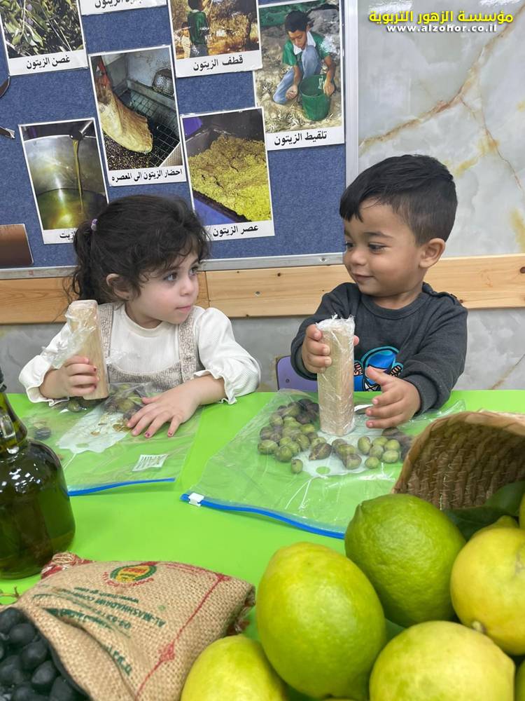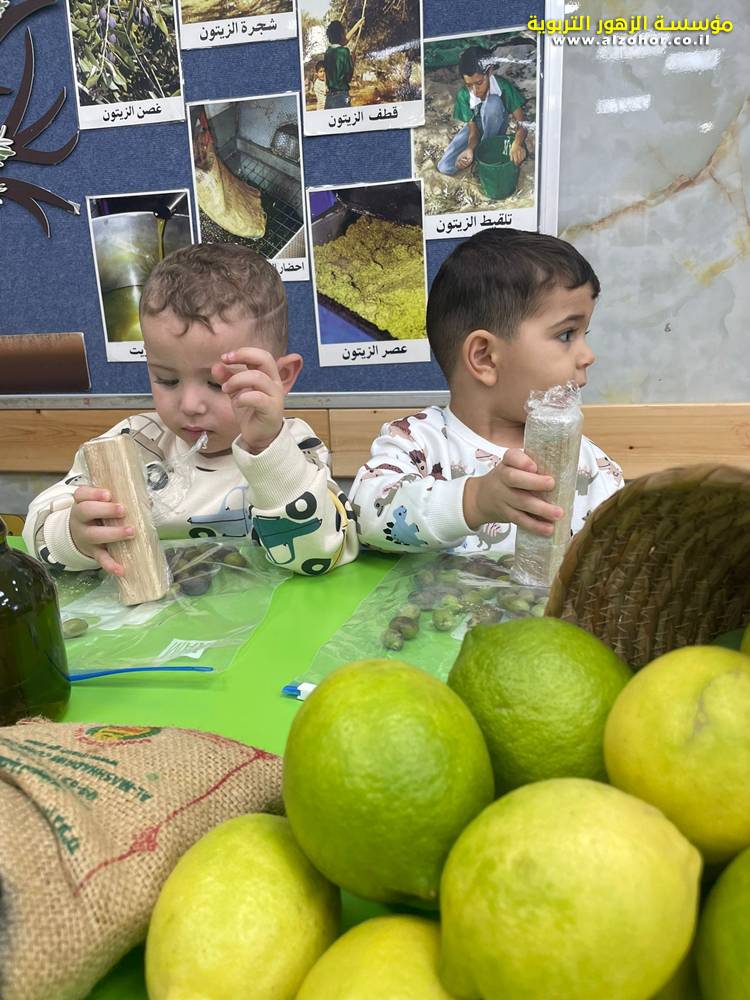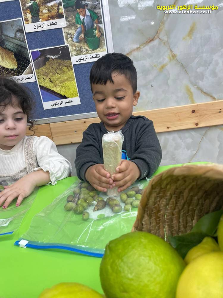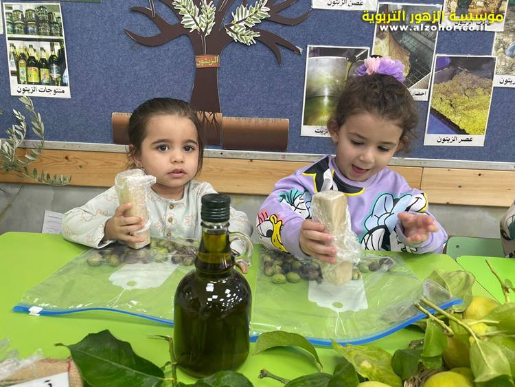 اطفال حضانة الزهور وفعاليات رص وكبس الزيتون