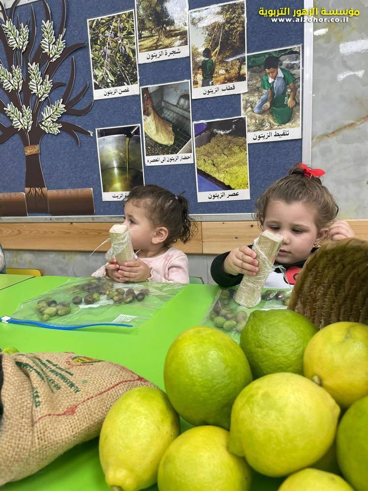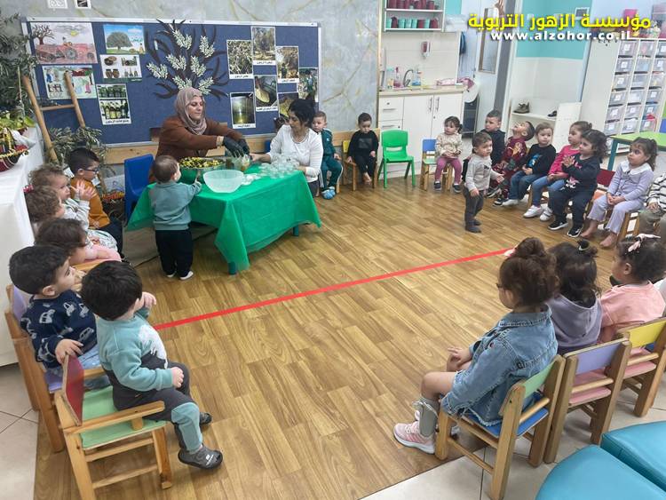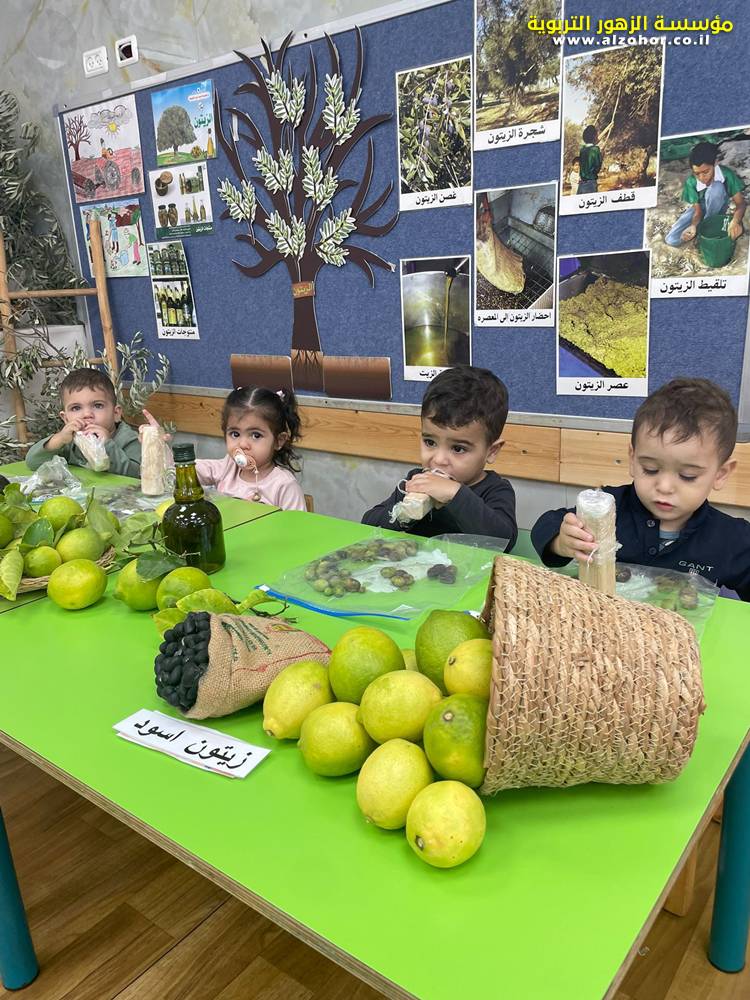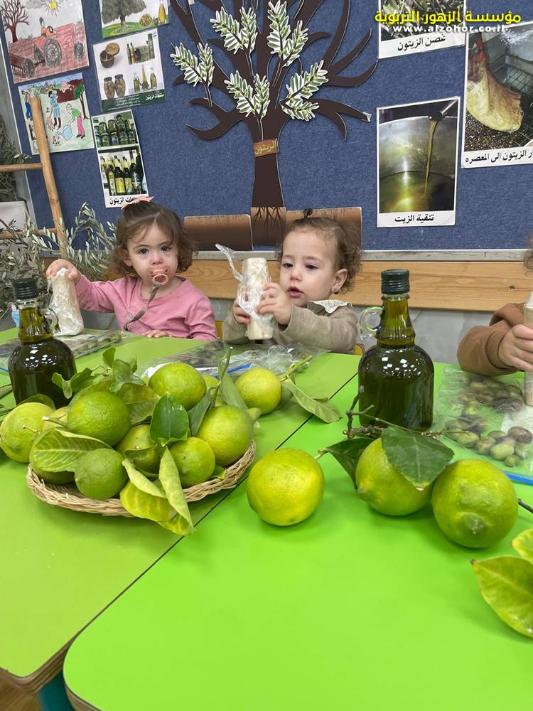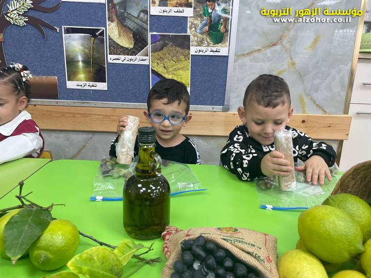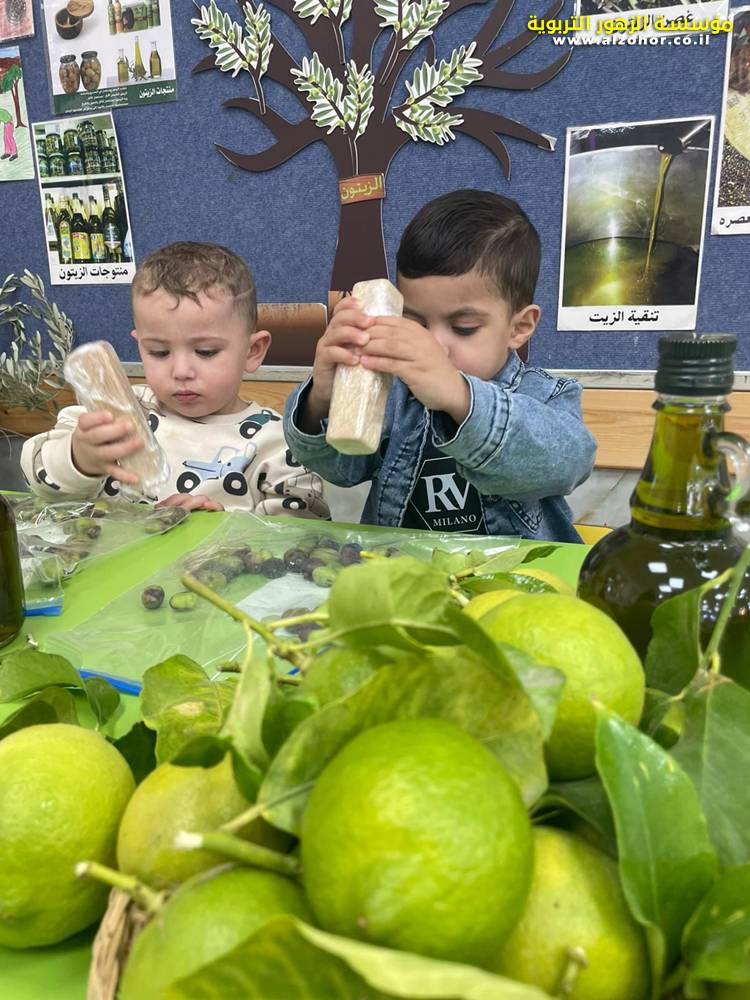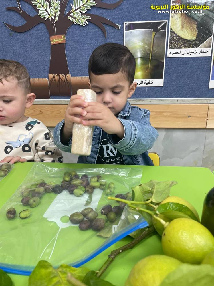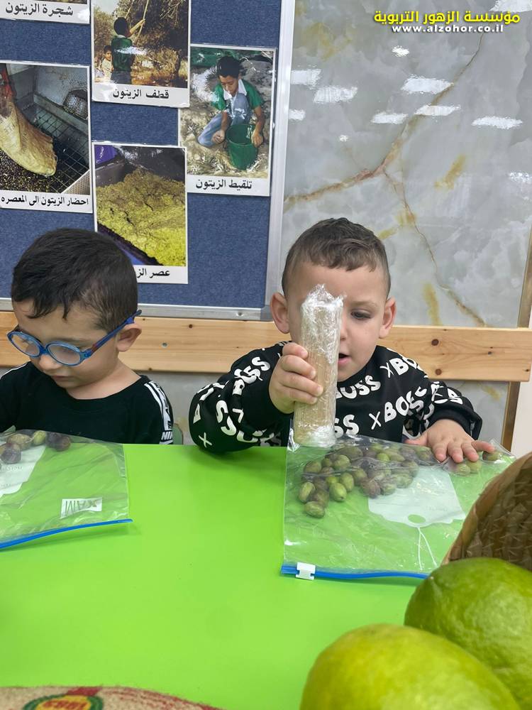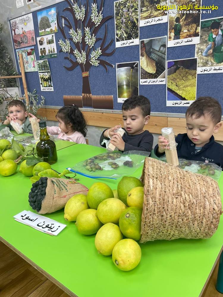 اطفال حضانة الزهور وفعاليات رص وكبس الزيتون