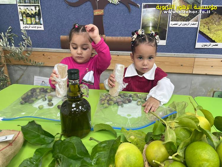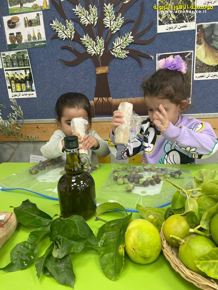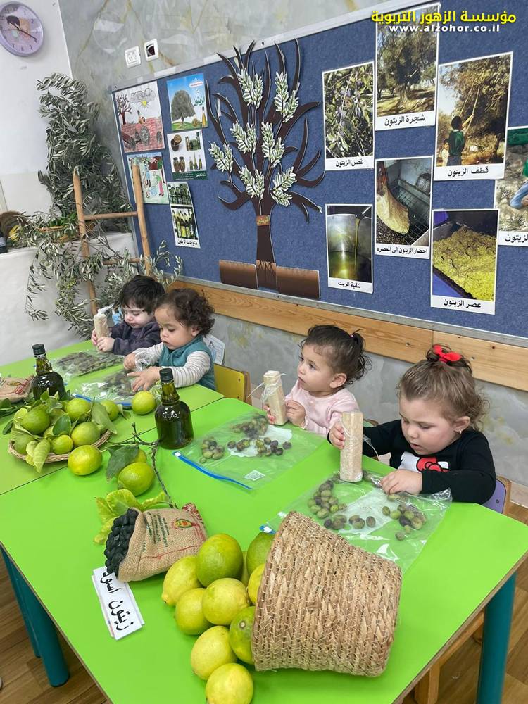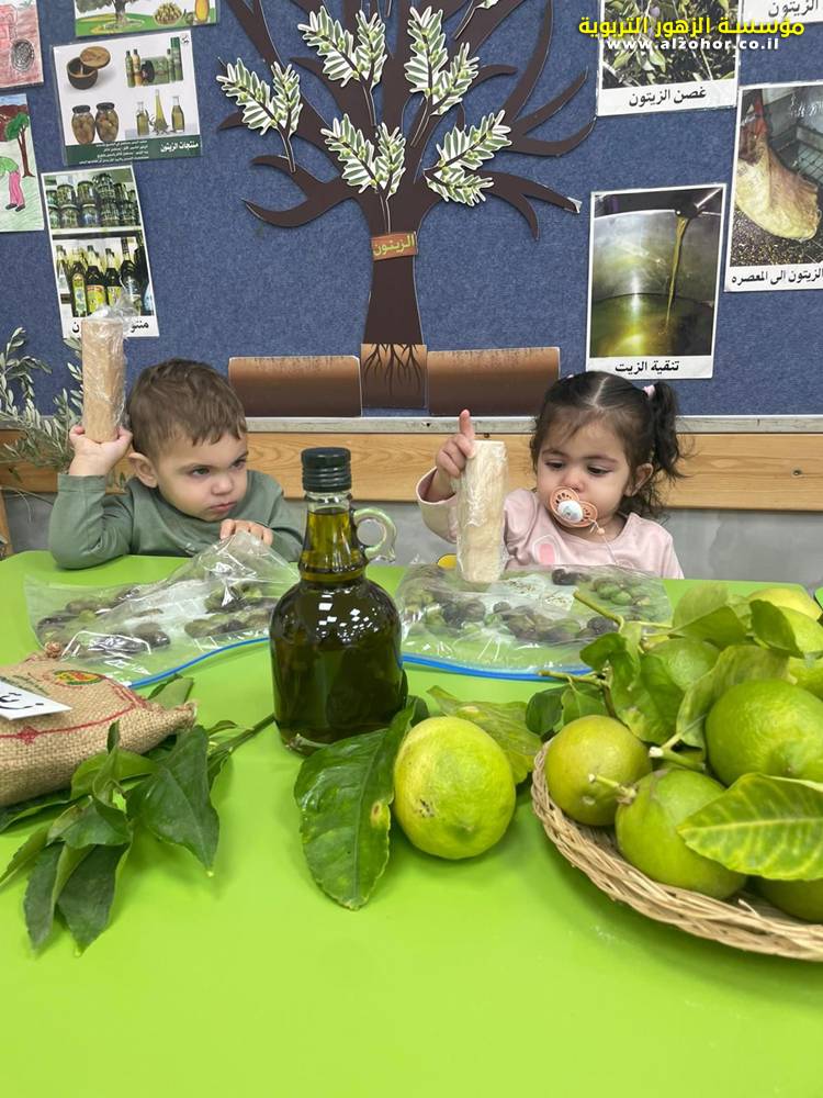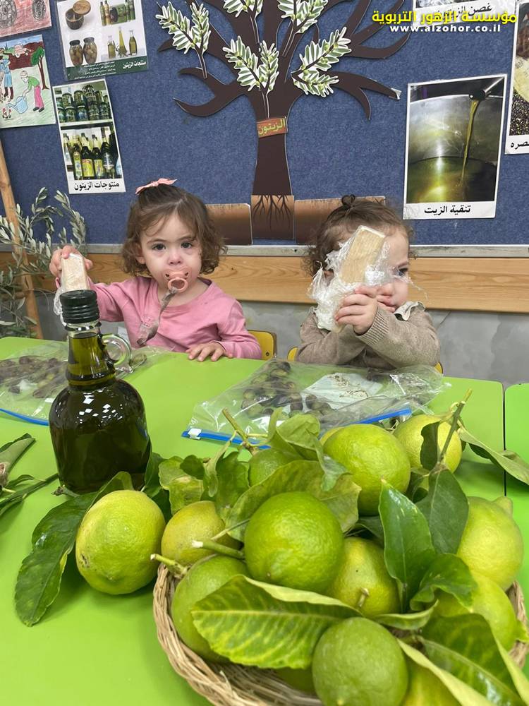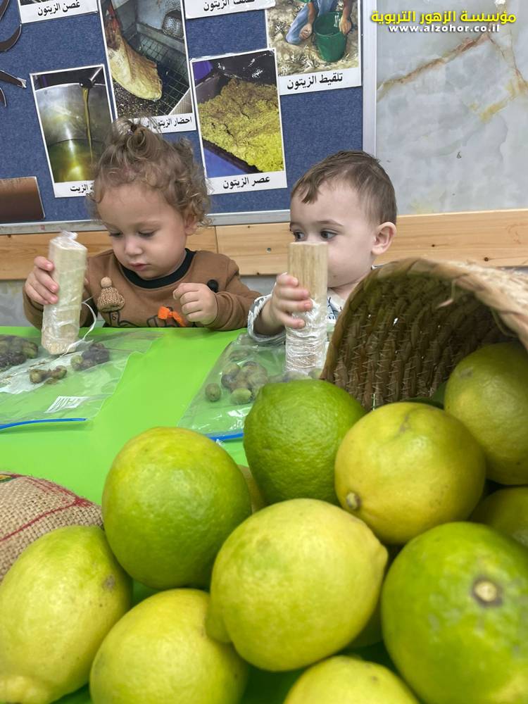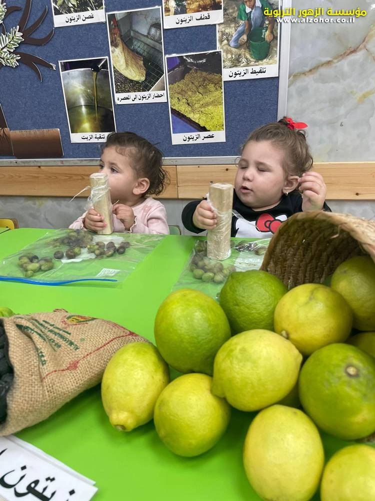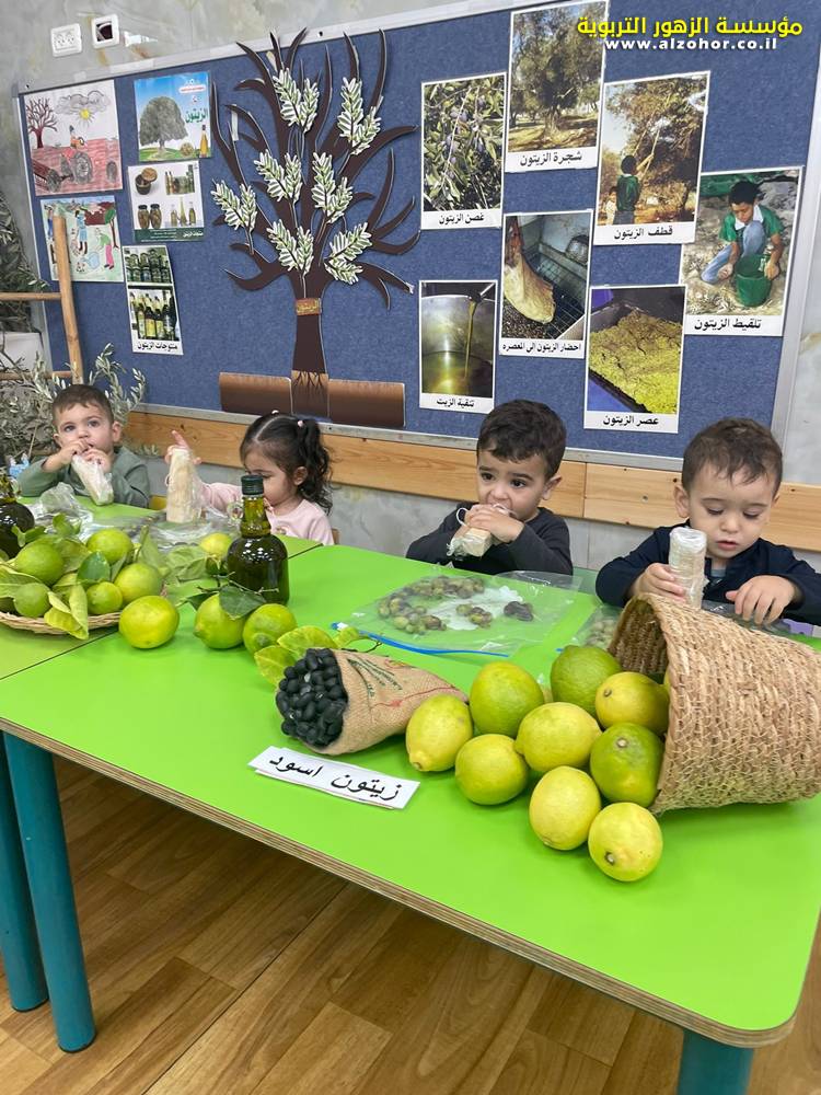 اطفال حضانة الزهور وفعاليات رص وكبس الزيتون