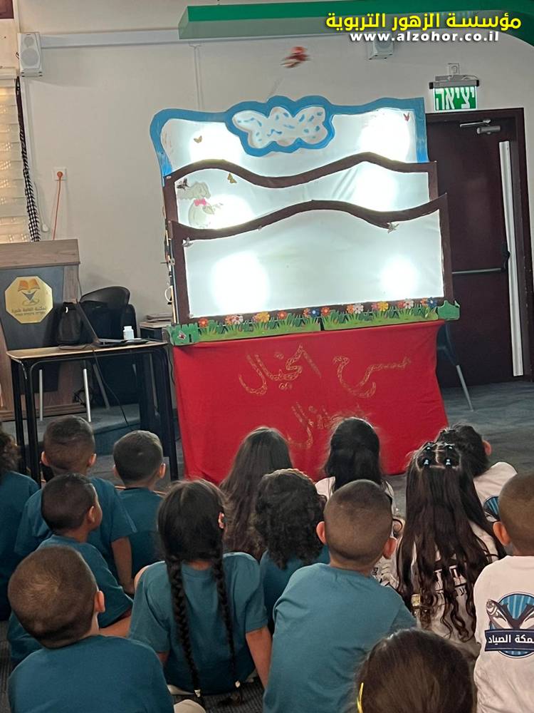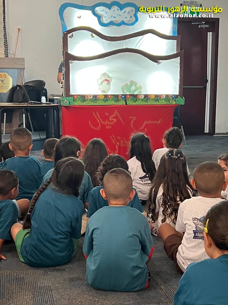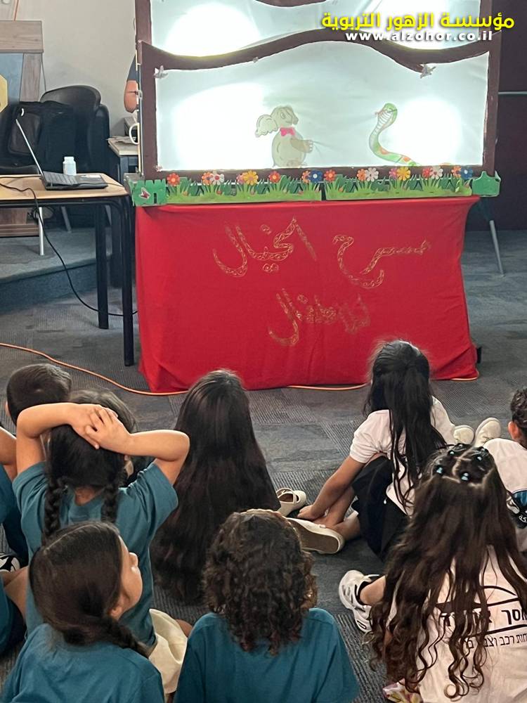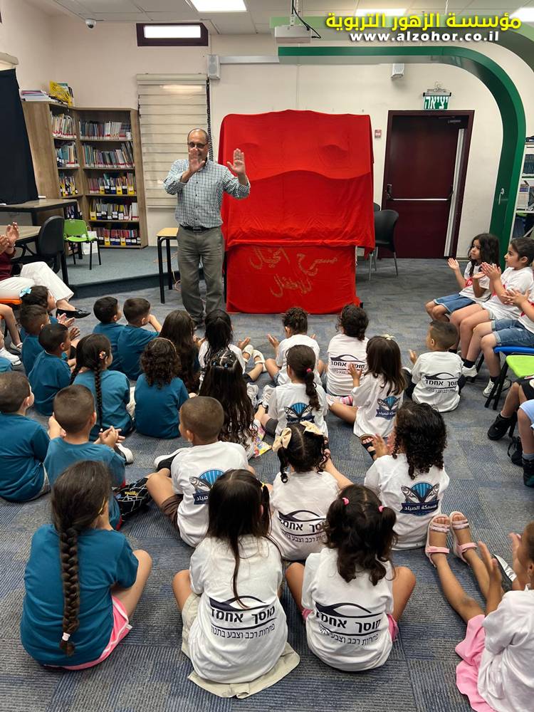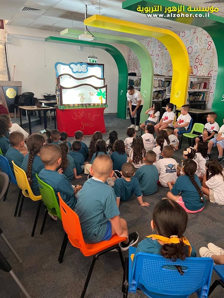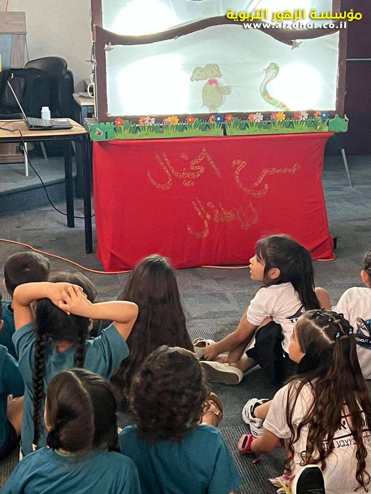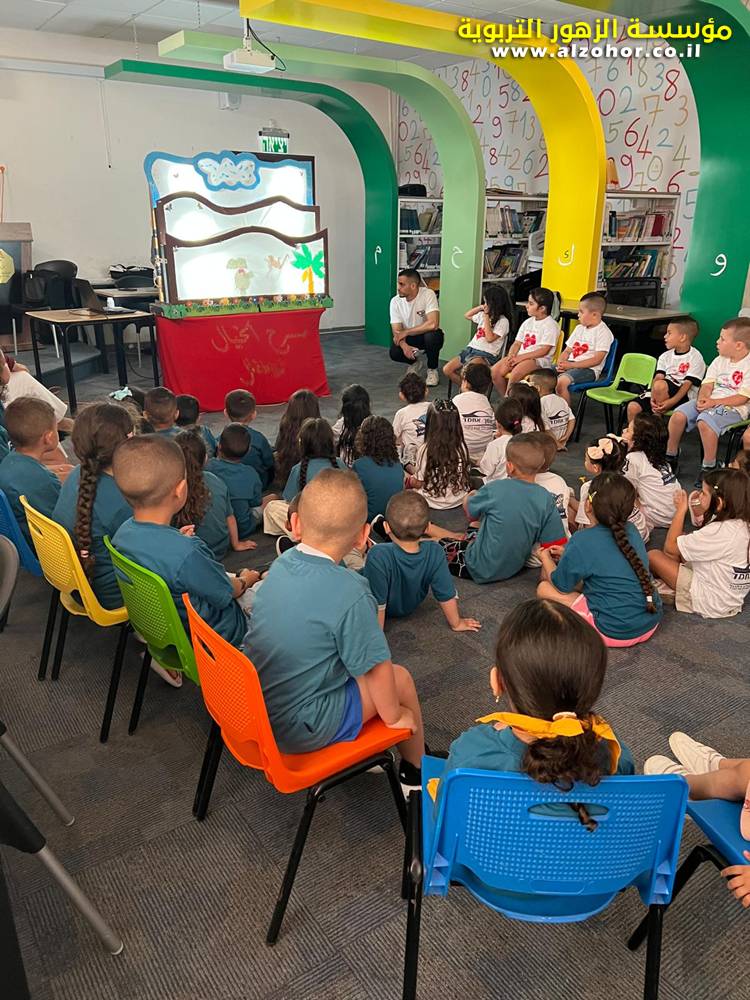 أطفال روضة النرجس يشاهدون مسرحية الدغفل المقدمة من المكتبة العامة