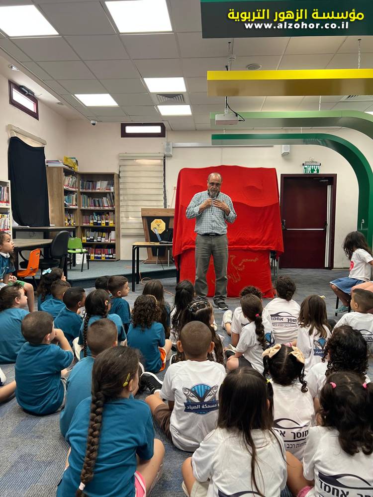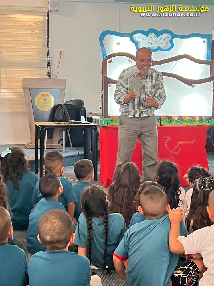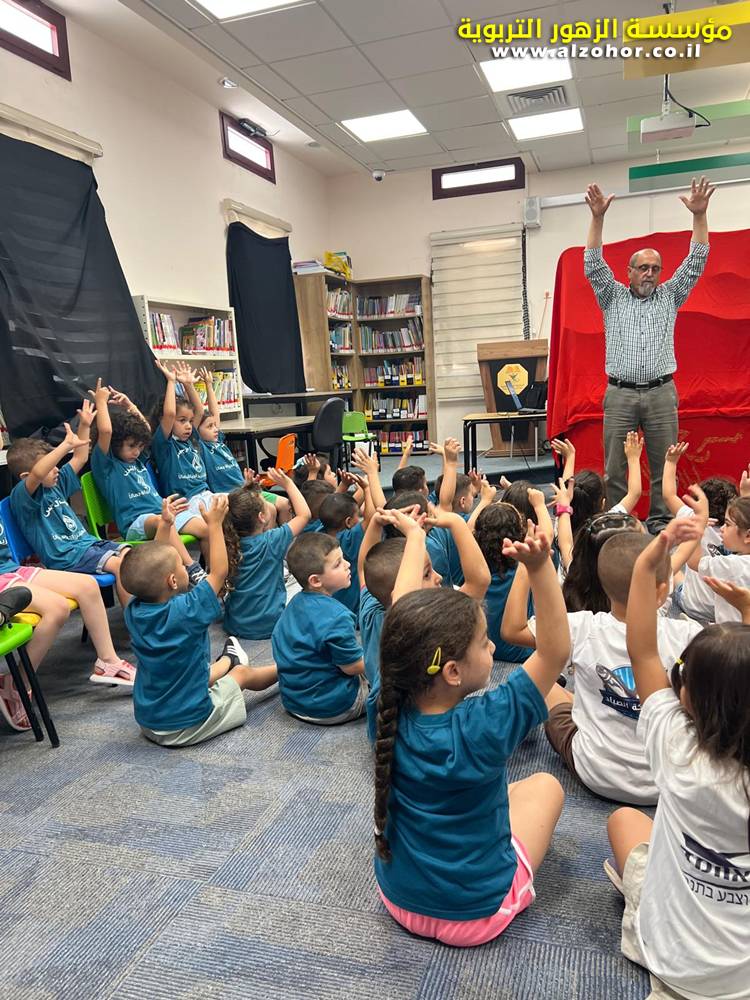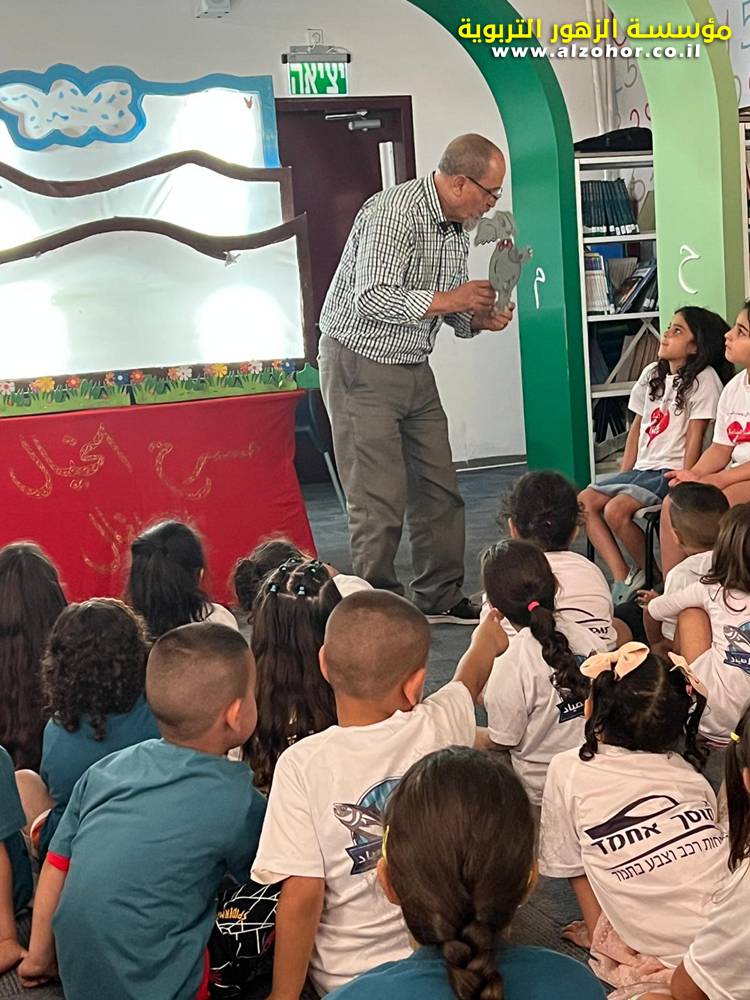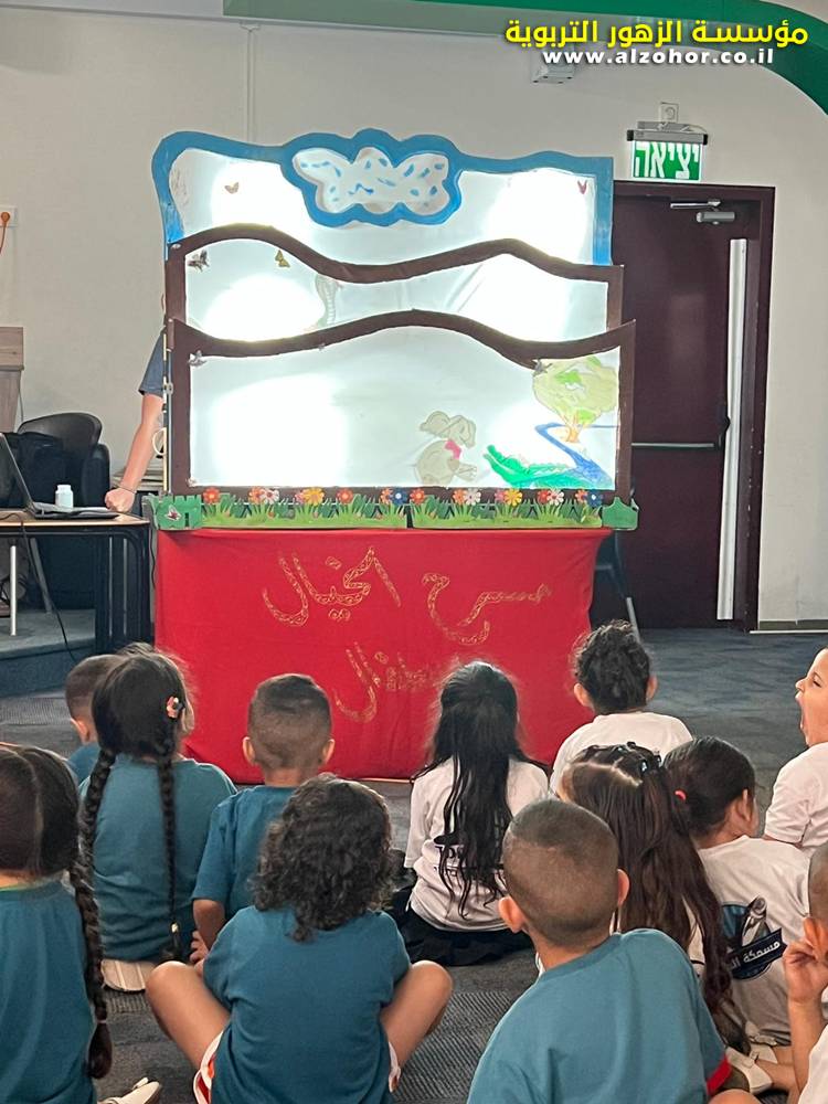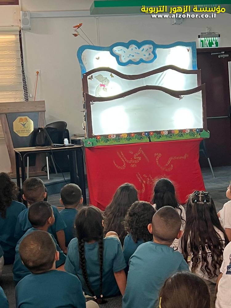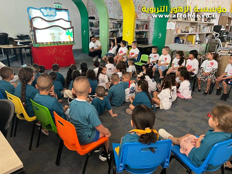 أطفال روضة النرجس يشاهدون مسرحية الدغفل المقدمة من المكتبة العامة