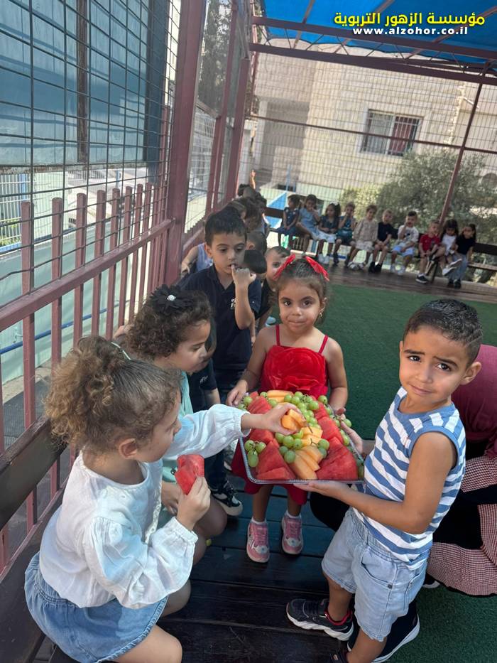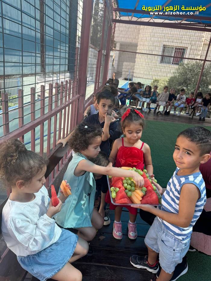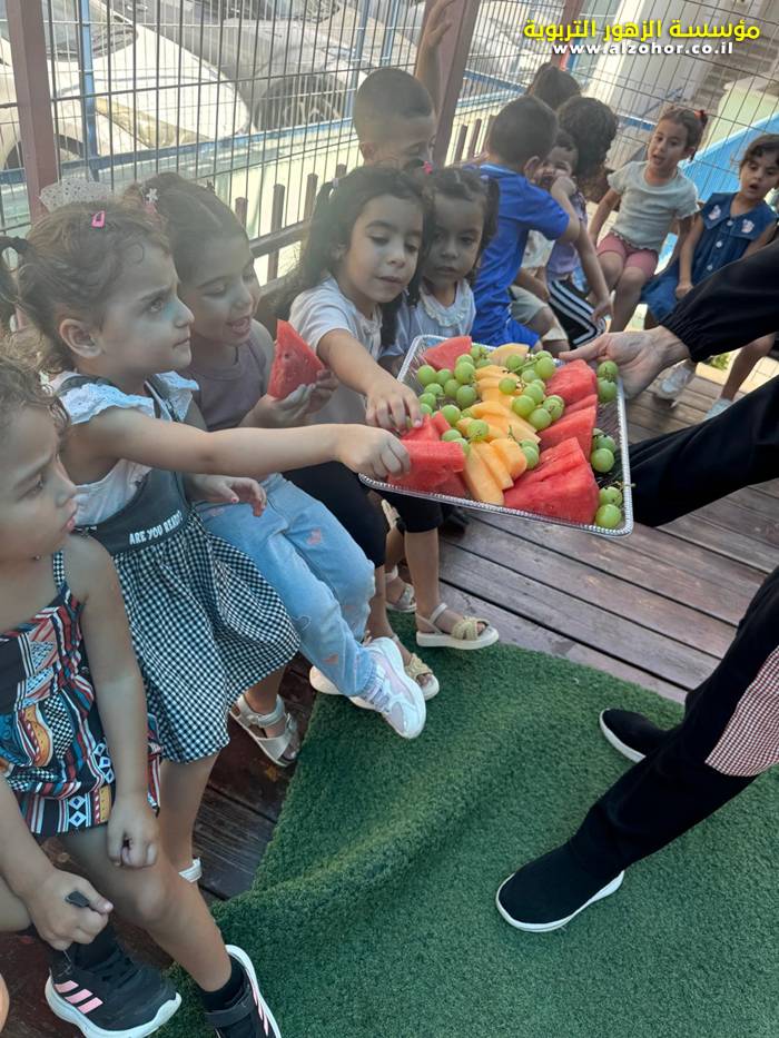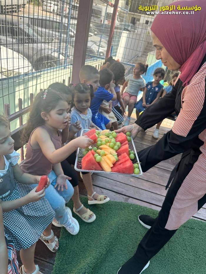 الرئيسية ⁄ روضة الزهور ⁄ ٱلْوَجْبَةُ ٱلْمُشْتَرَكَةُ مِنْ تَقْدِيمِ عَائِلَةِ ٱلْحُلْوَيْنِ مُصْطَفَى وَسِيلَا أَبُو رُومِي فِي رَوْضَةِ ٱلزُّهُور