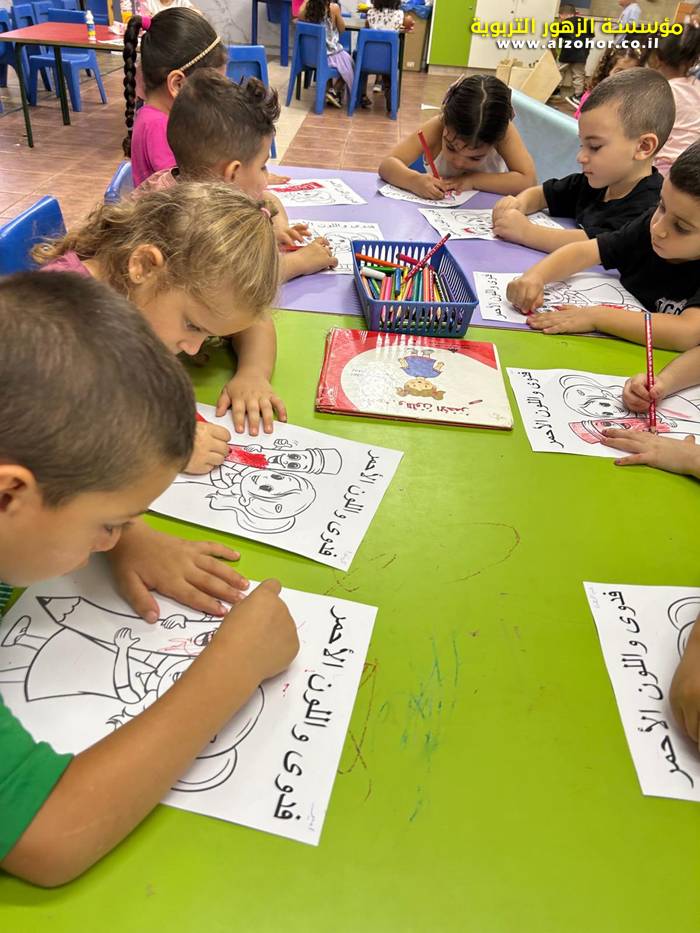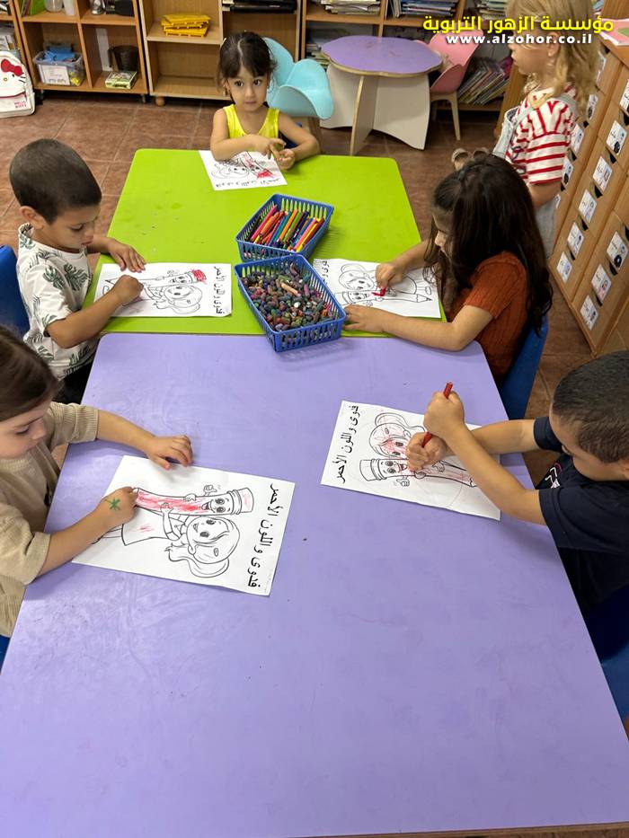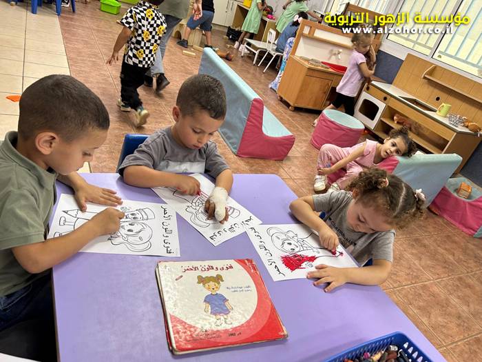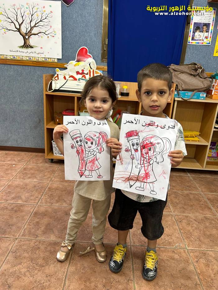 قصة فدوى واللون الاحمر وفعاليات متنوعة في روضة الابتسامة