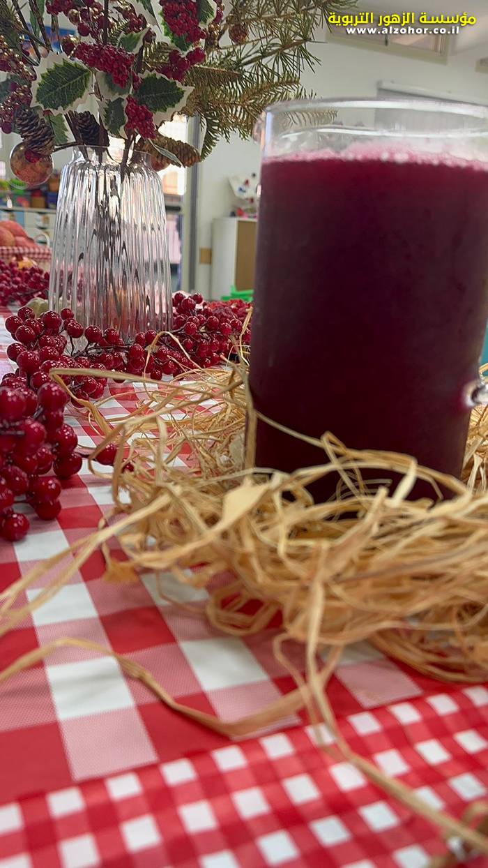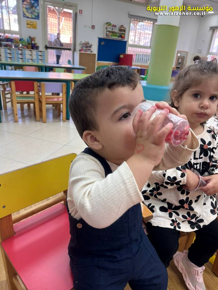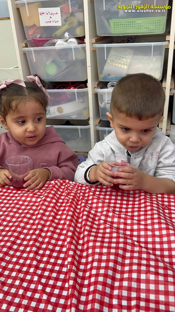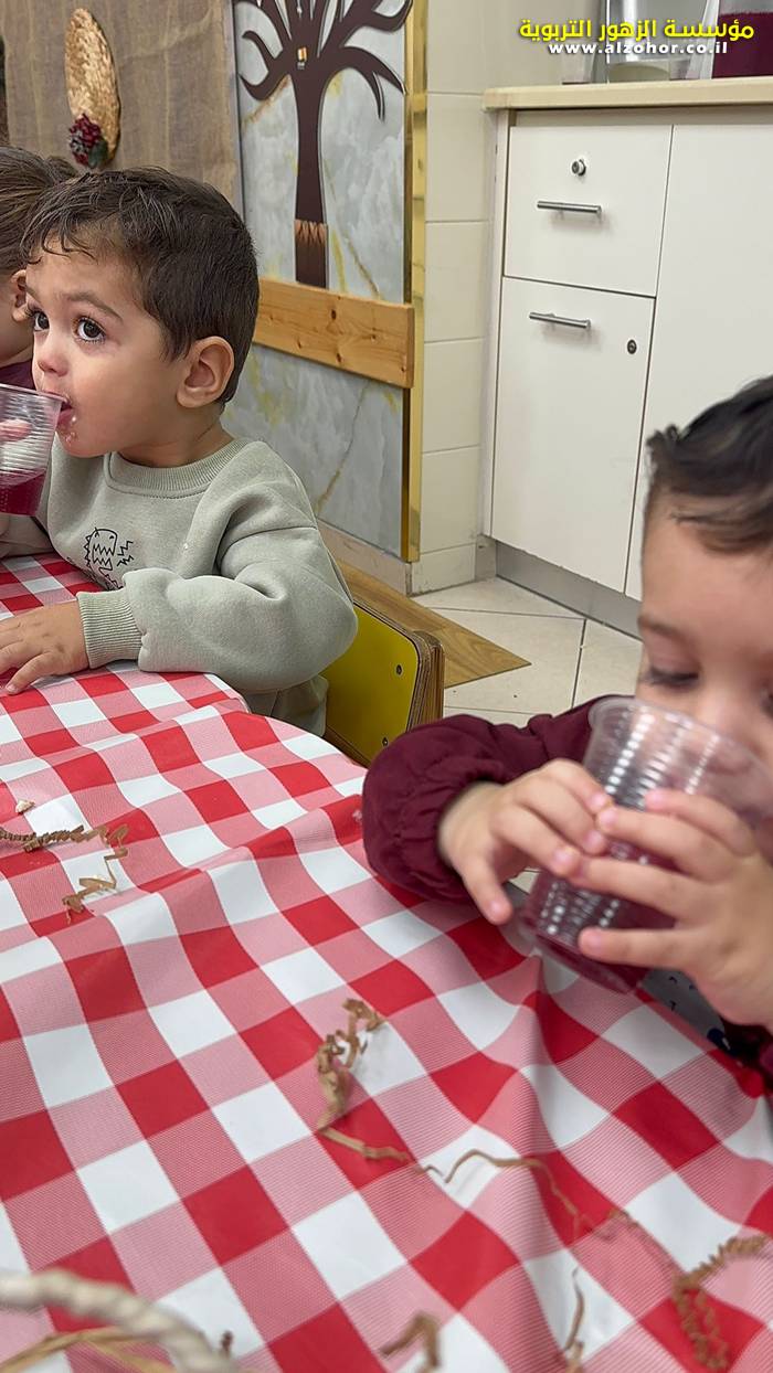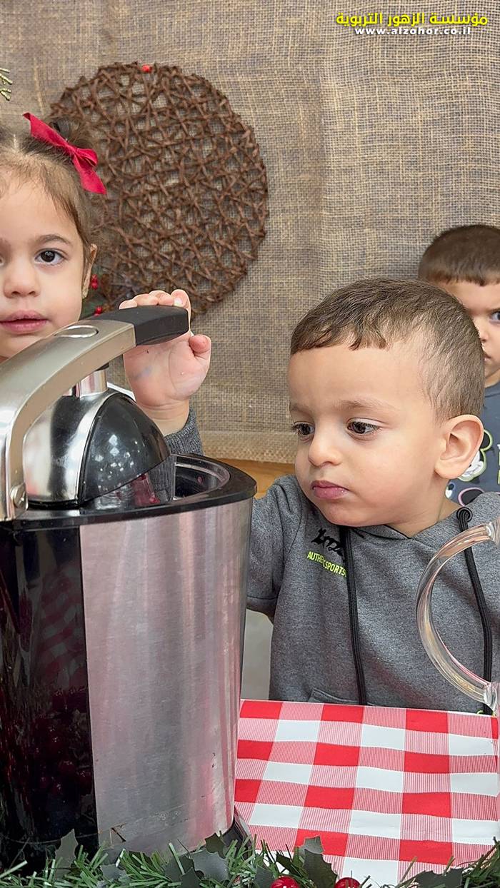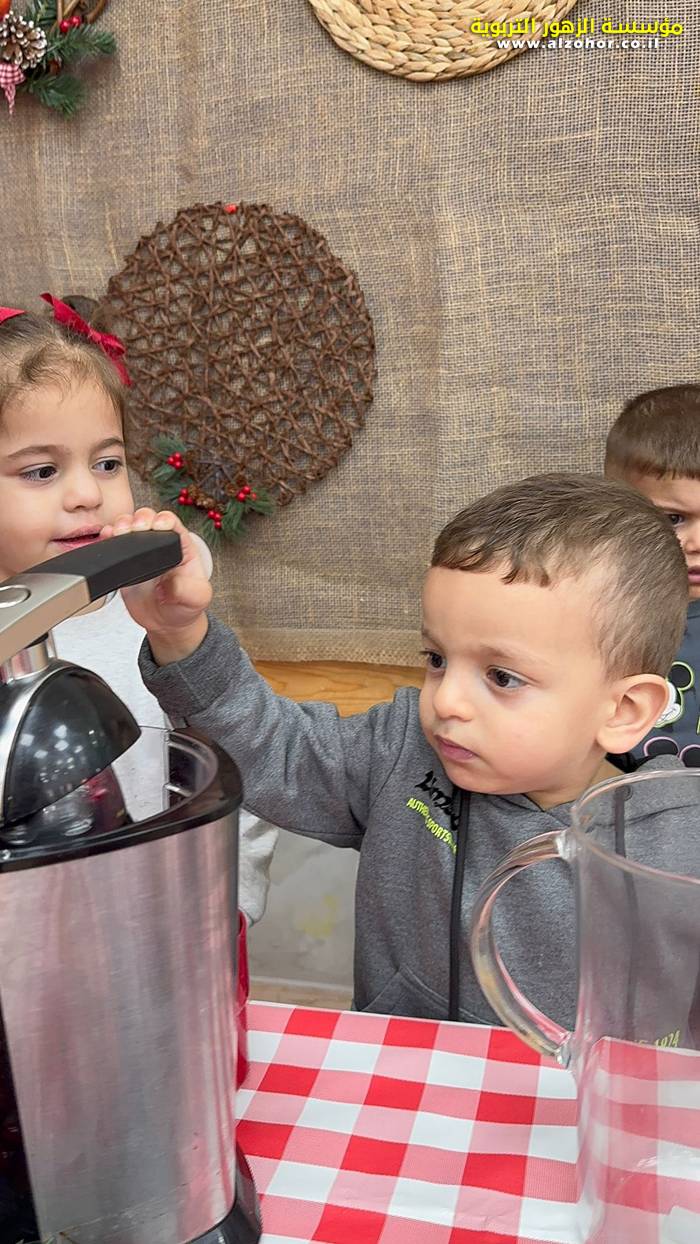 بعدها قام الأطفال بعصر حبات الرمان بأيديهم الصغيرة بكل فرح وحماس، وتذوقوا عصيرًا طبيعيًا طازجًا من صنع أيديهم 🍹