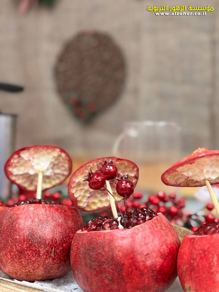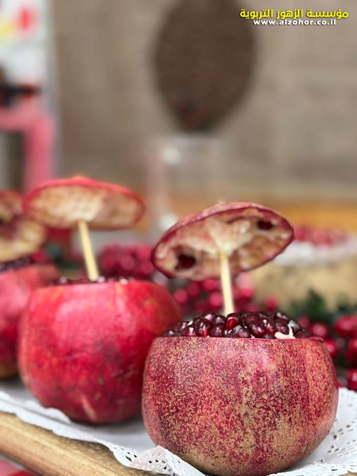 ثم استمتعوا بتناول حبات الرمان الطازجة وكعكة الجلي المزينة بالرمان اللذيذ