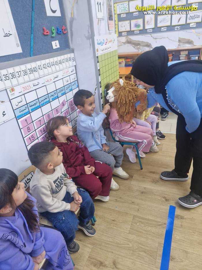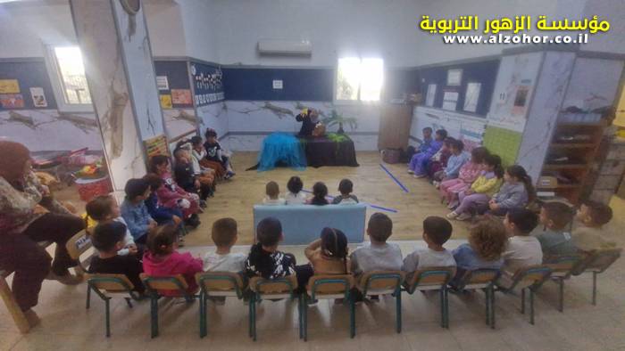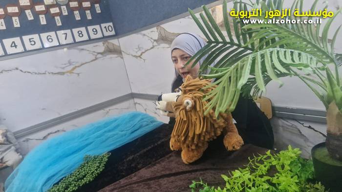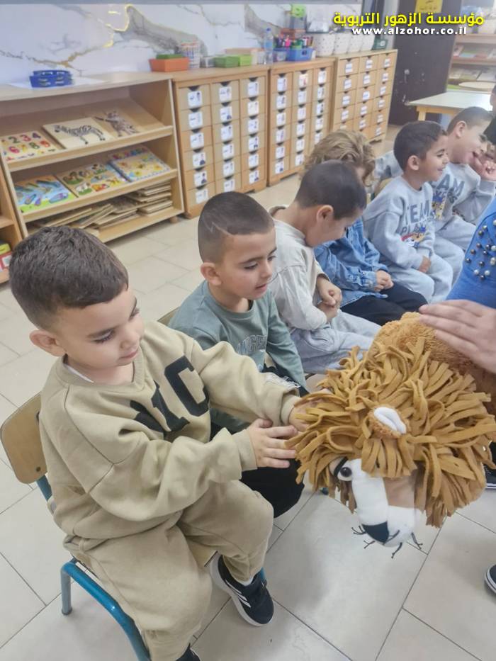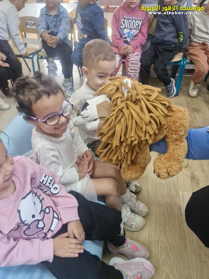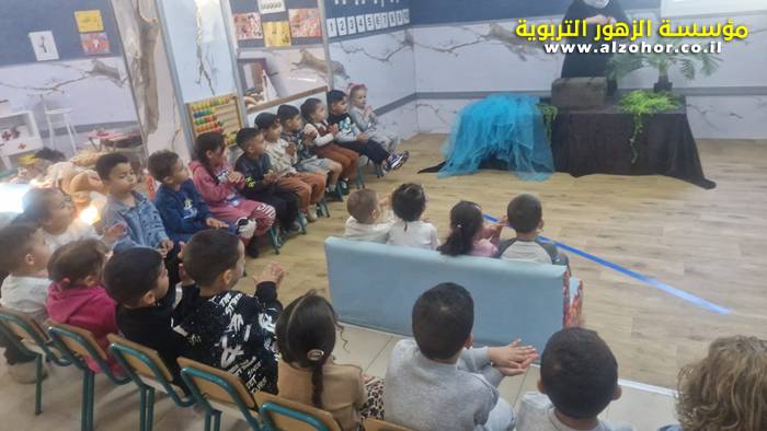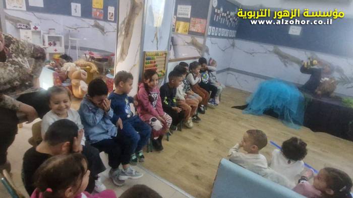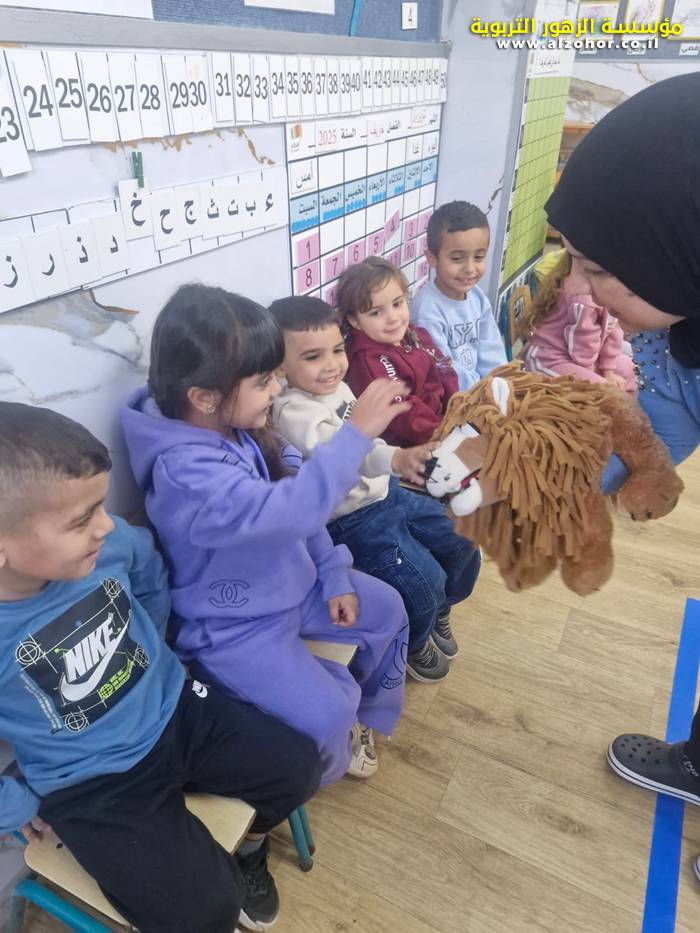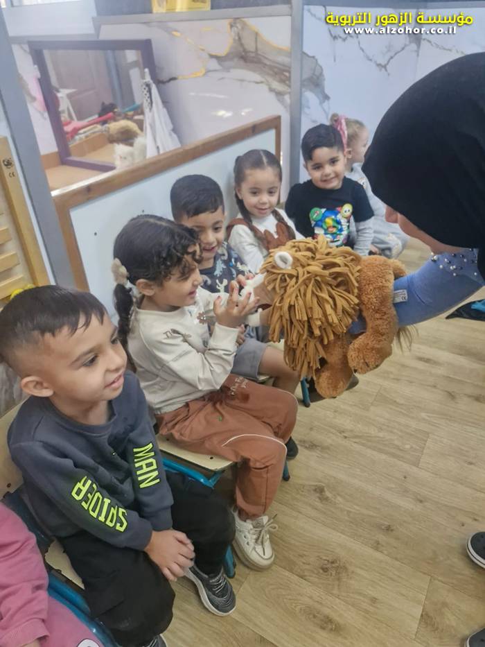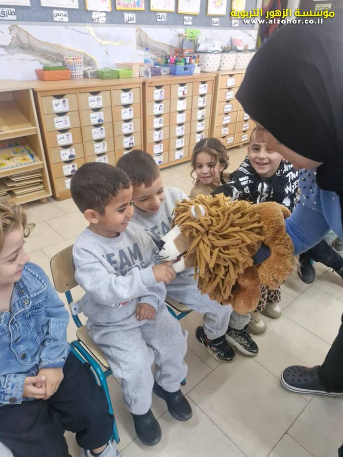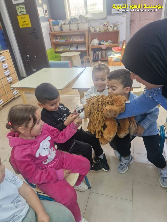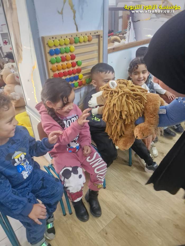 أطفال روضة الورود يستمتعون بمشاهدة عرض قصة (الاسد والنحلة) مسرح دمى