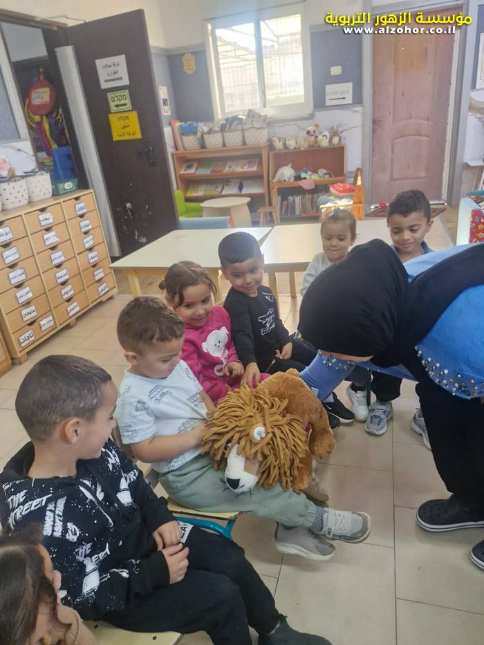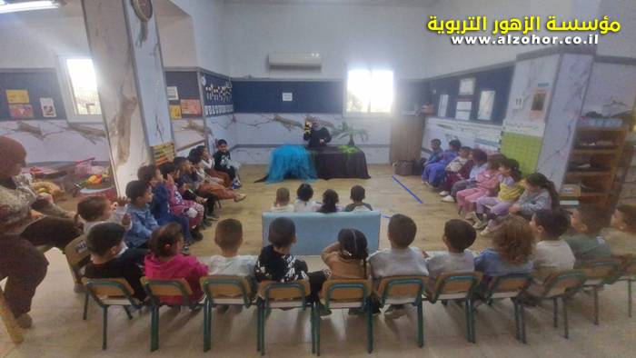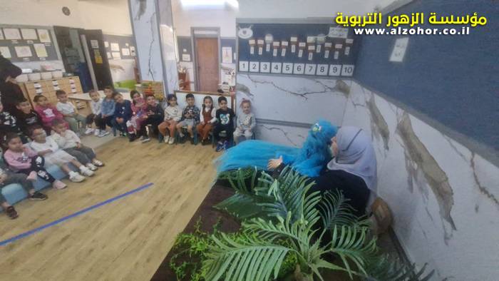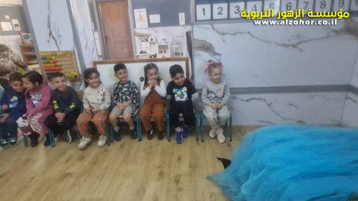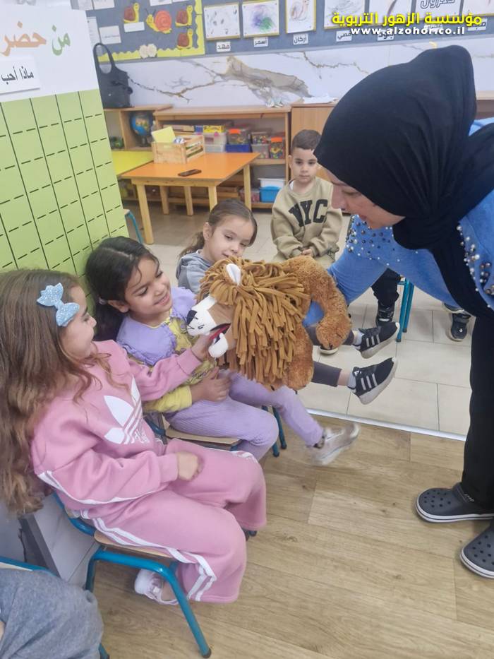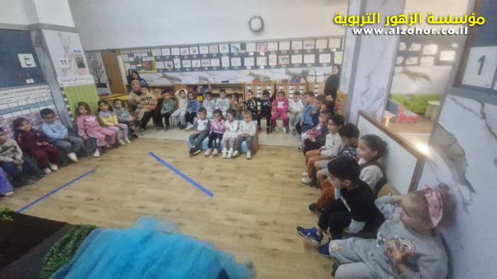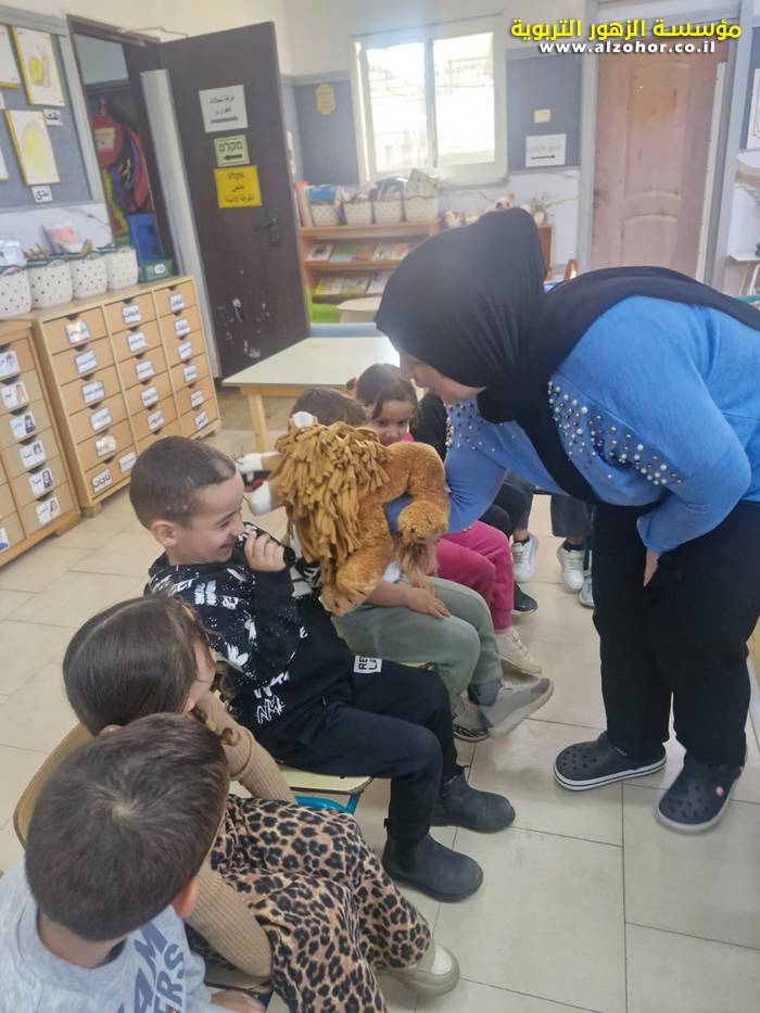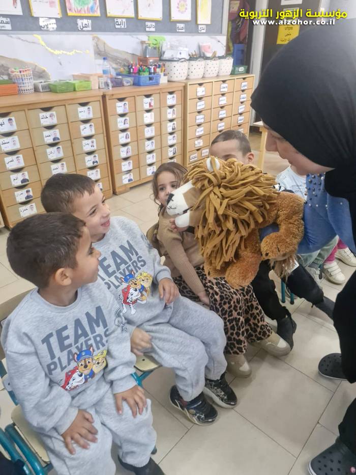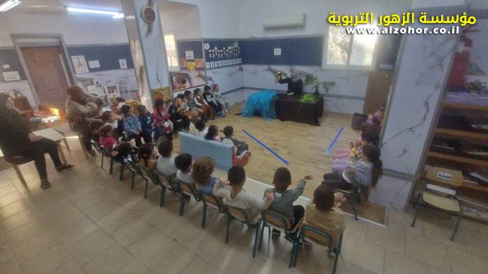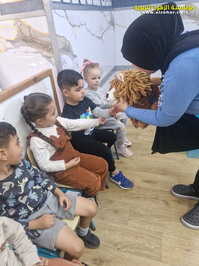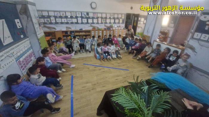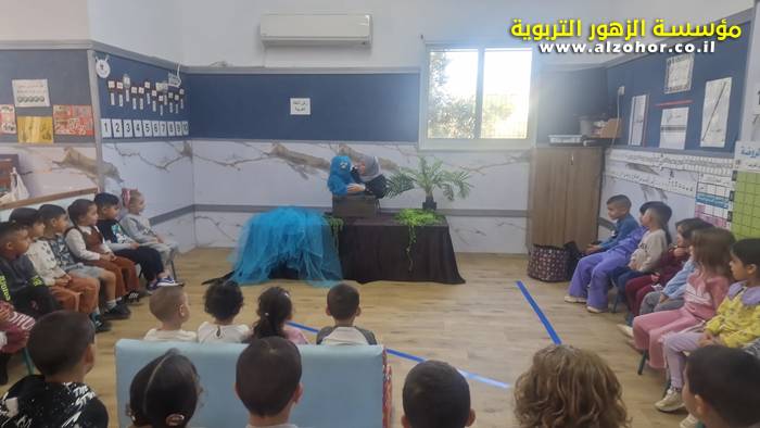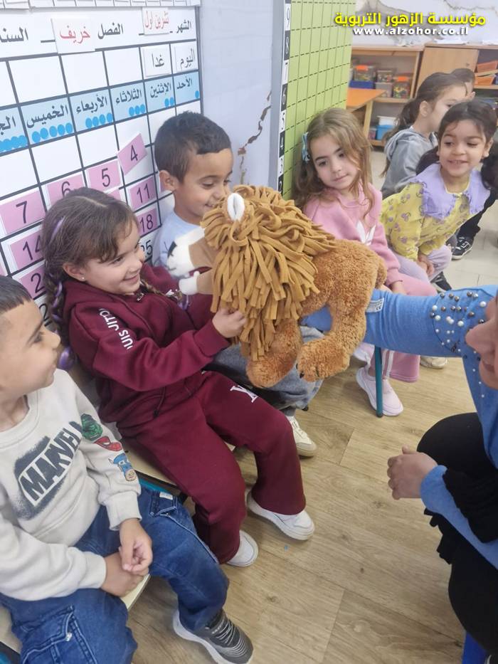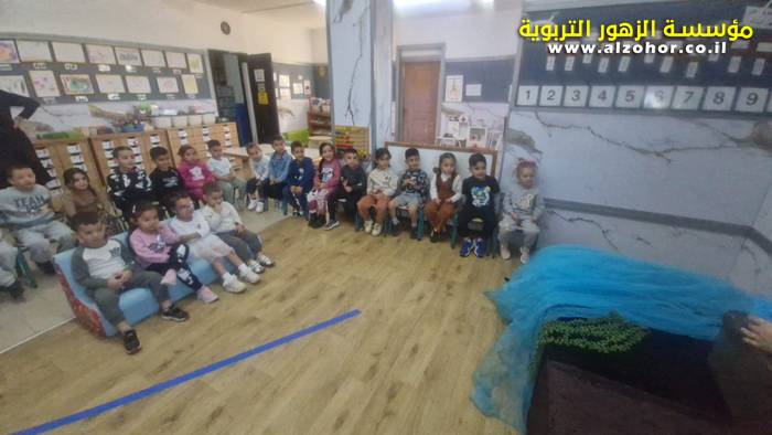 أطفال روضة الورود يستمتعون بمشاهدة عرض قصة (الاسد والنحلة) مسرح دمى