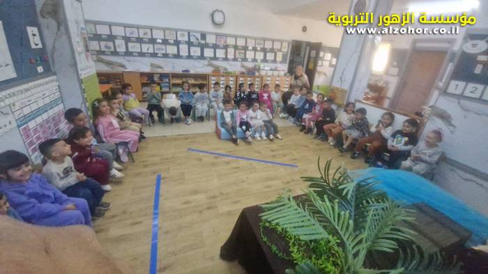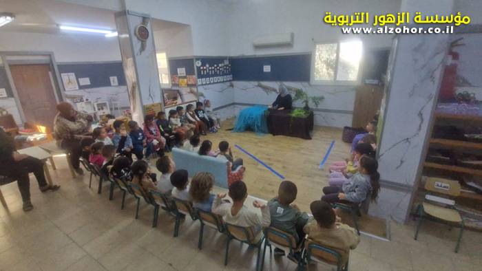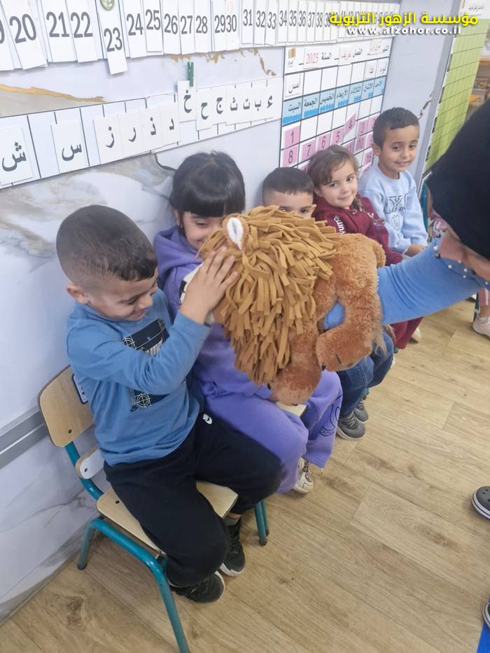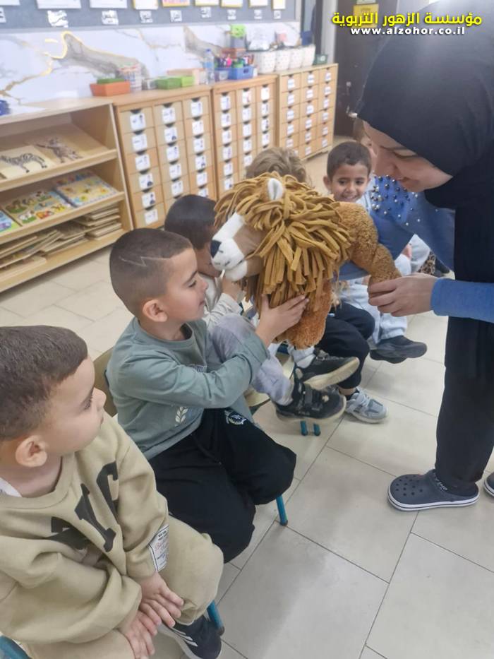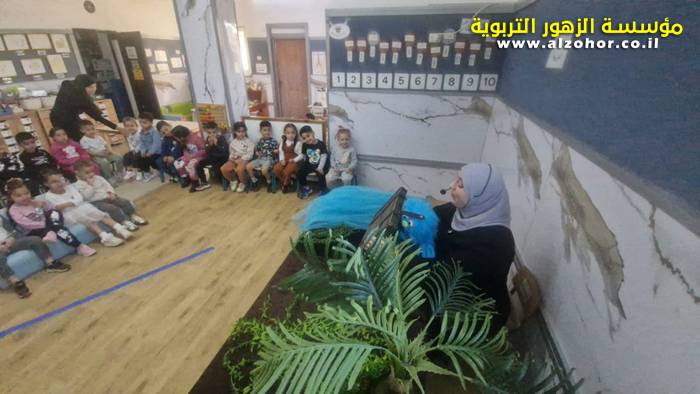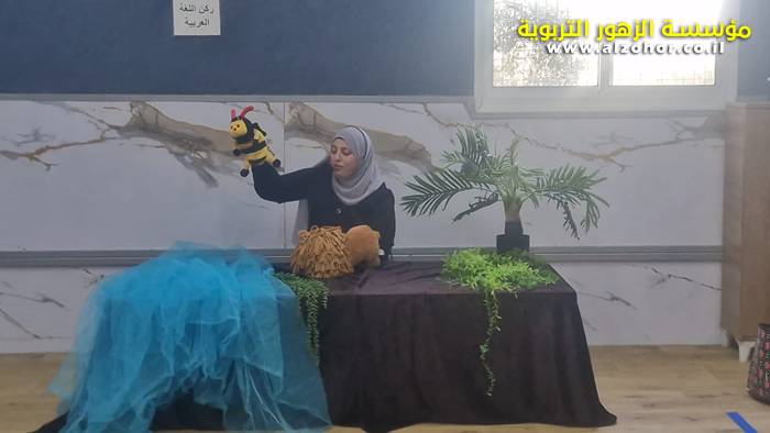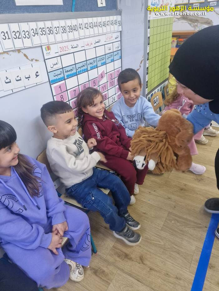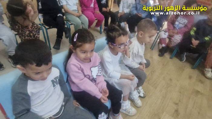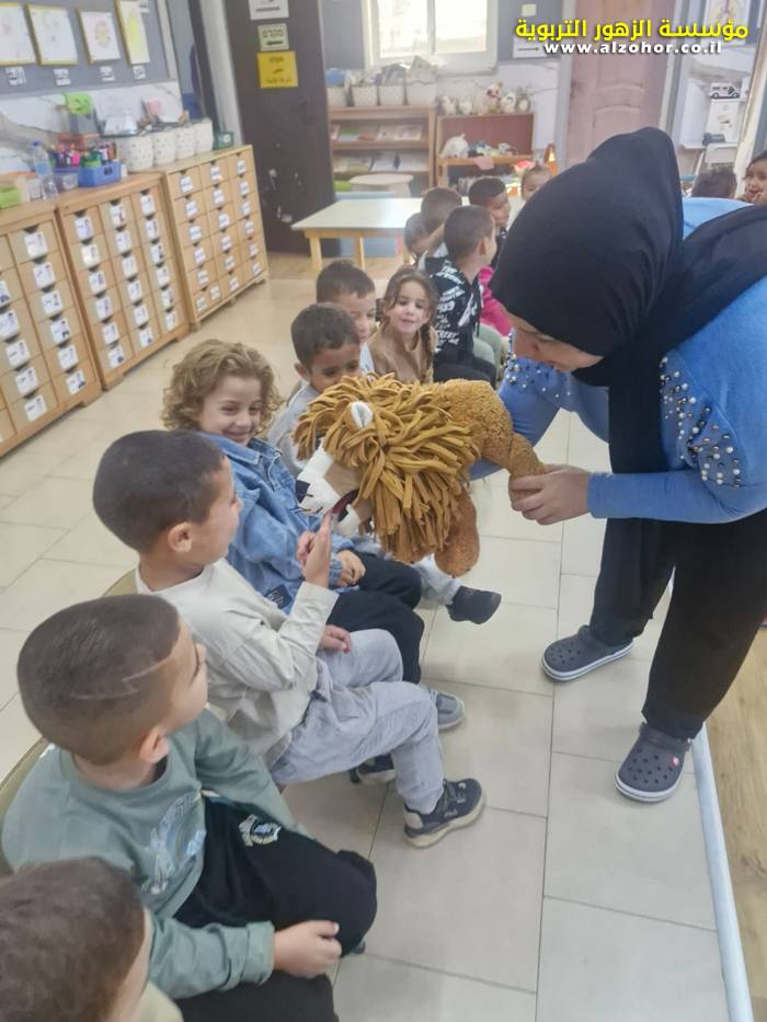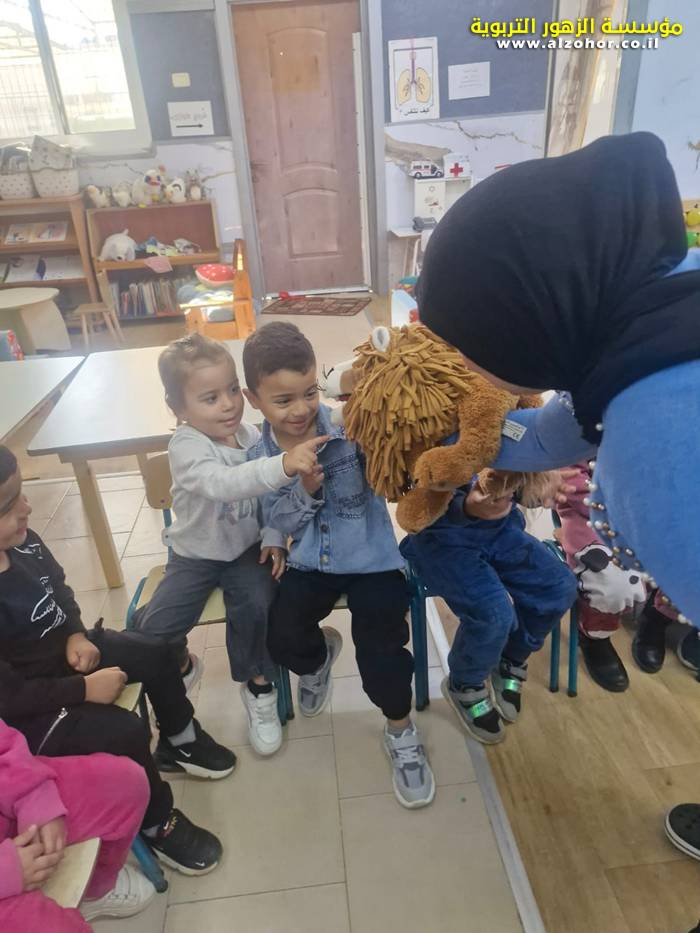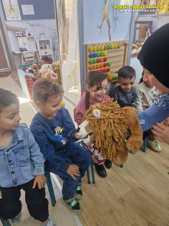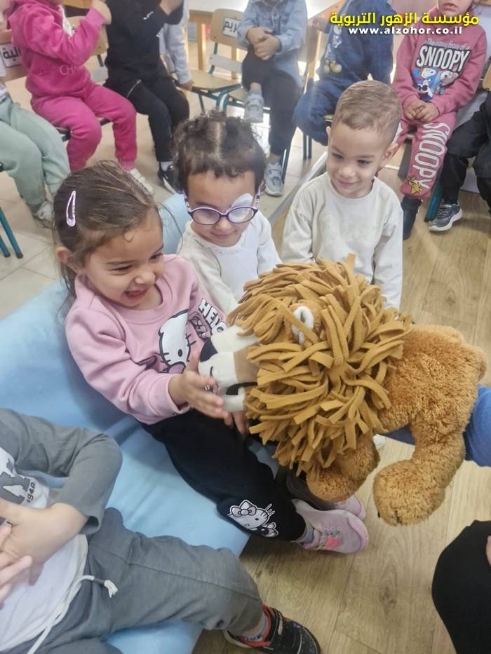 أطفال روضة الورود يستمتعون بمشاهدة عرض قصة (الاسد والنحلة) مسرح دمى