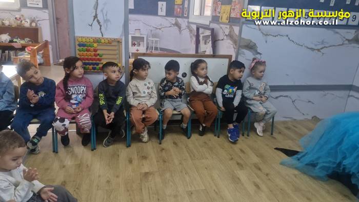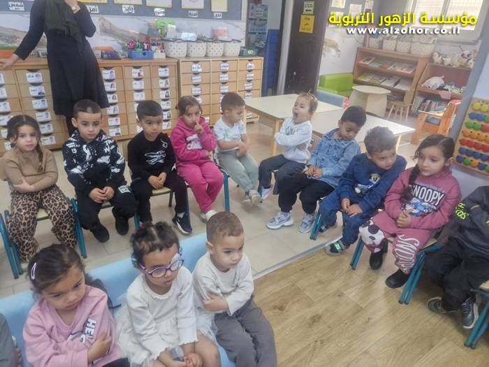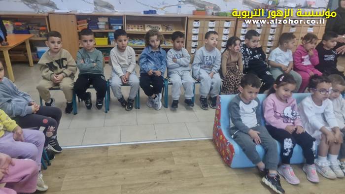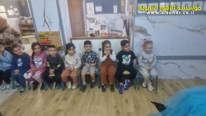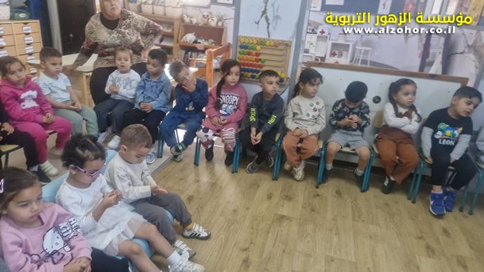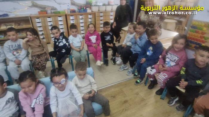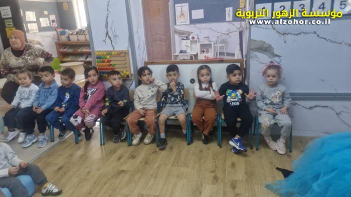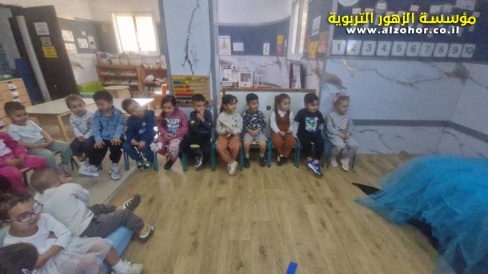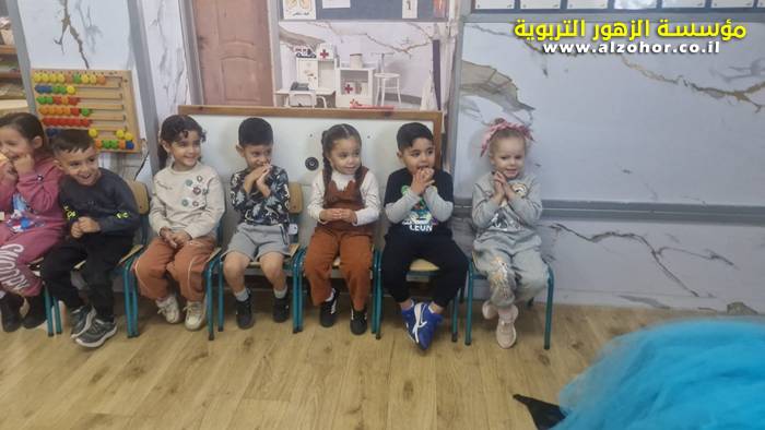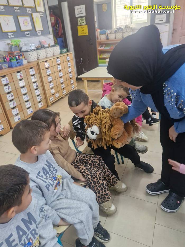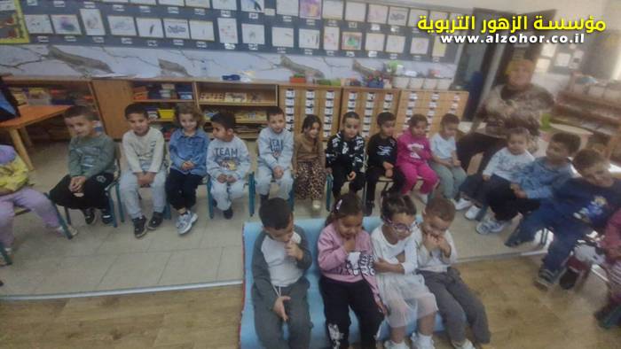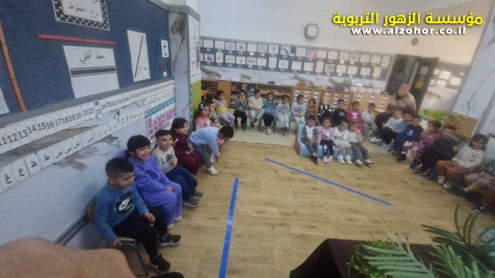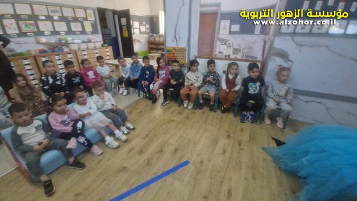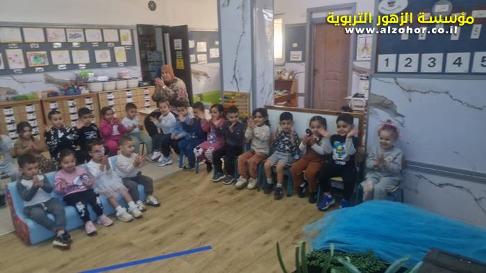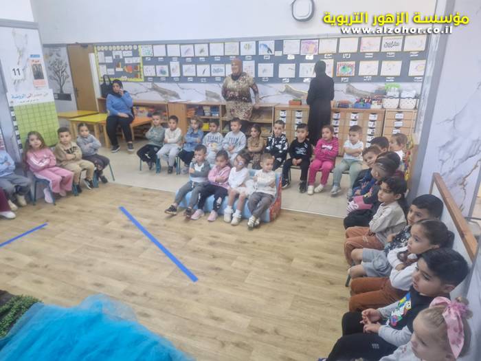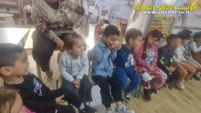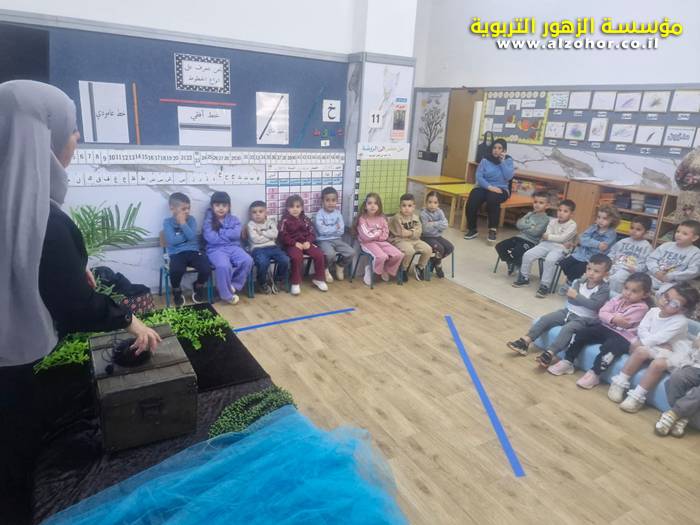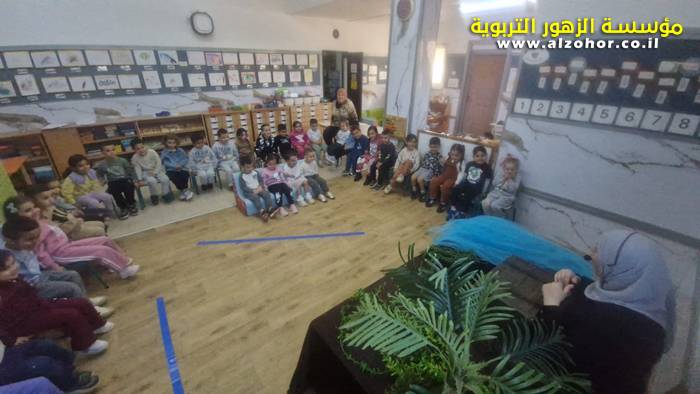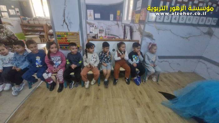 أطفال روضة الورود يستمتعون بمشاهدة عرض قصة (الاسد والنحلة) مسرح دمى