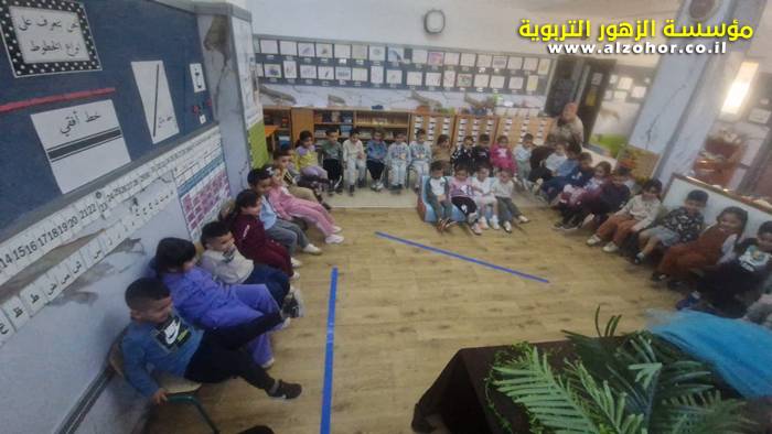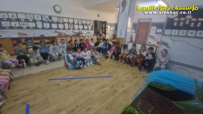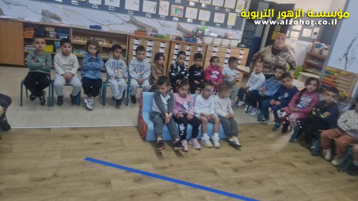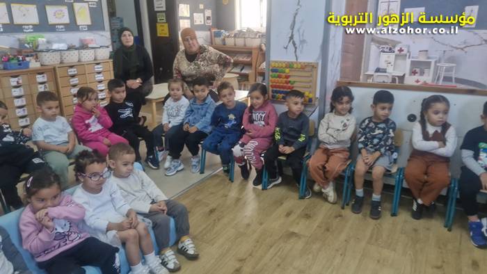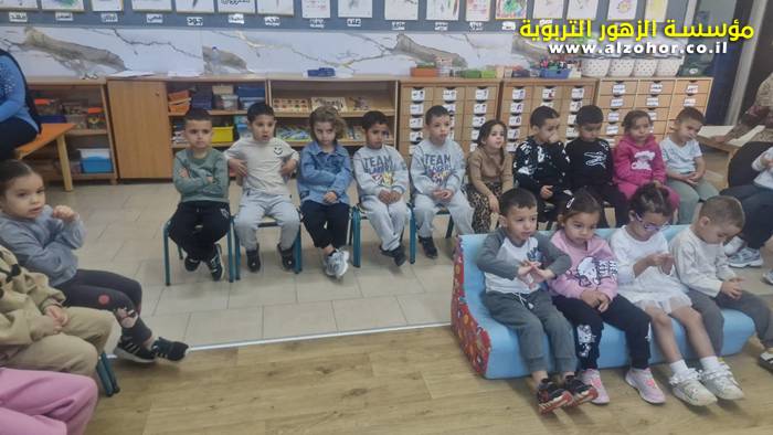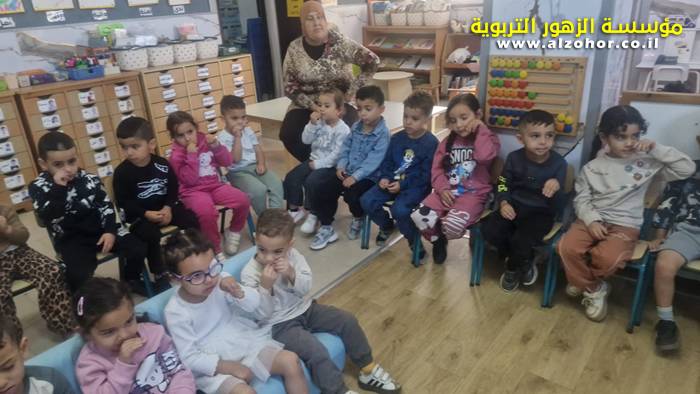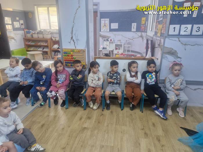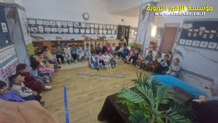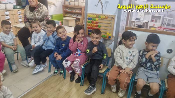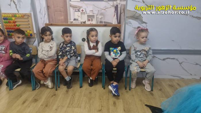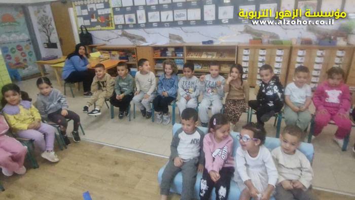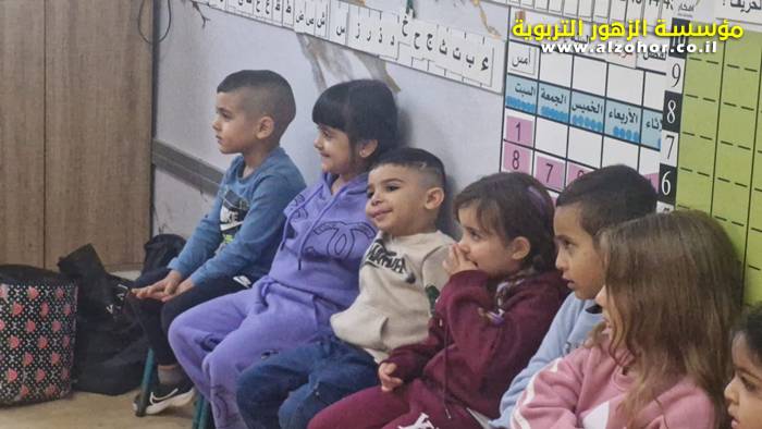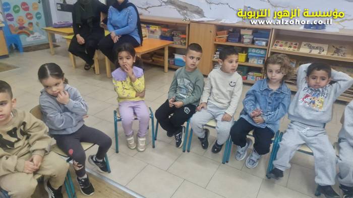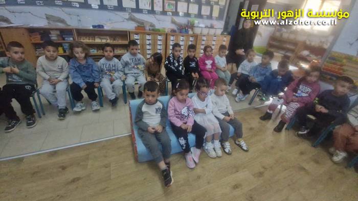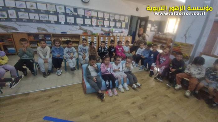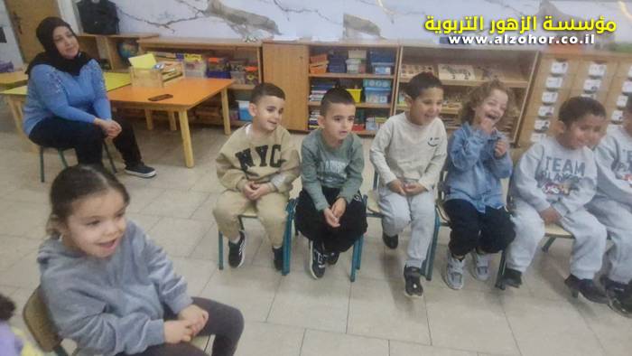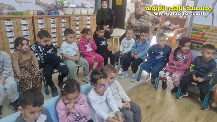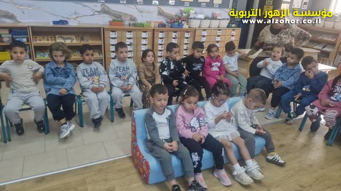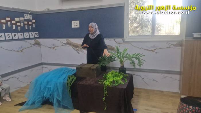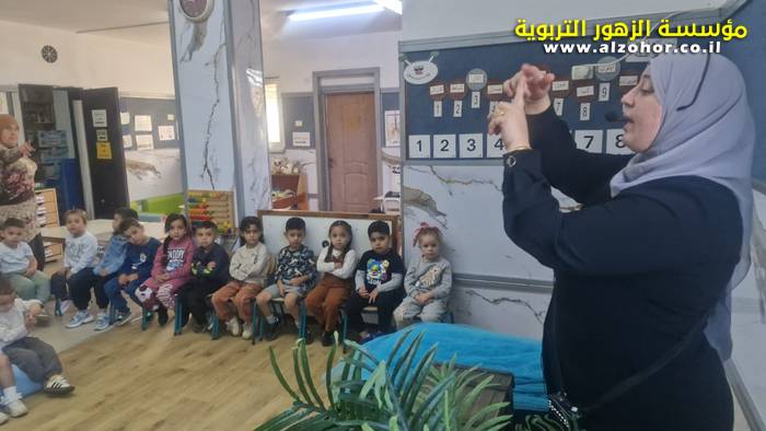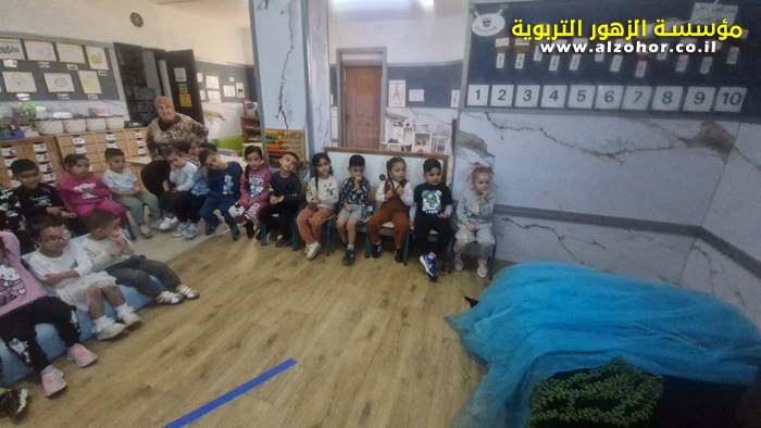 أطفال روضة الورود يستمتعون بمشاهدة عرض قصة (الاسد والنحلة) مسرح دمى