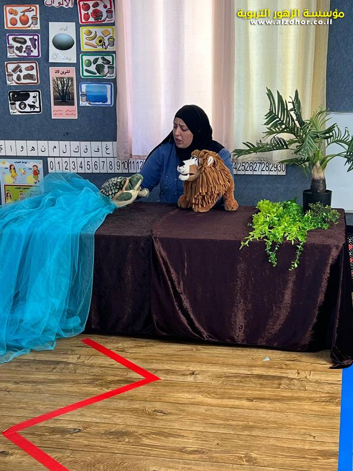 سرد قصة ومسرح دمى الأسد والنحلة ضمن مشروع سد الفجوات في روضة النرجس