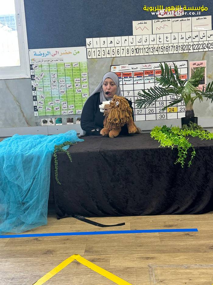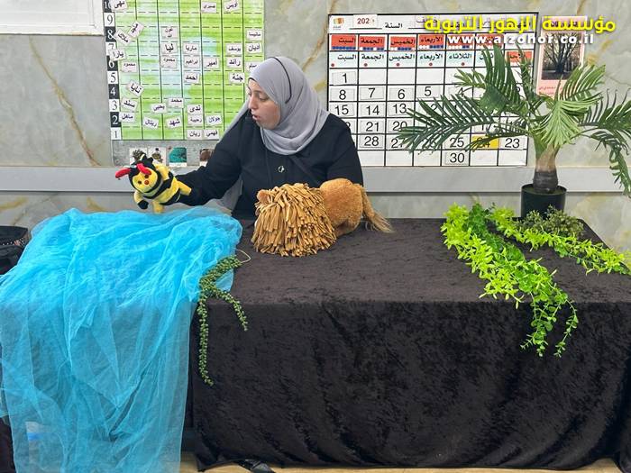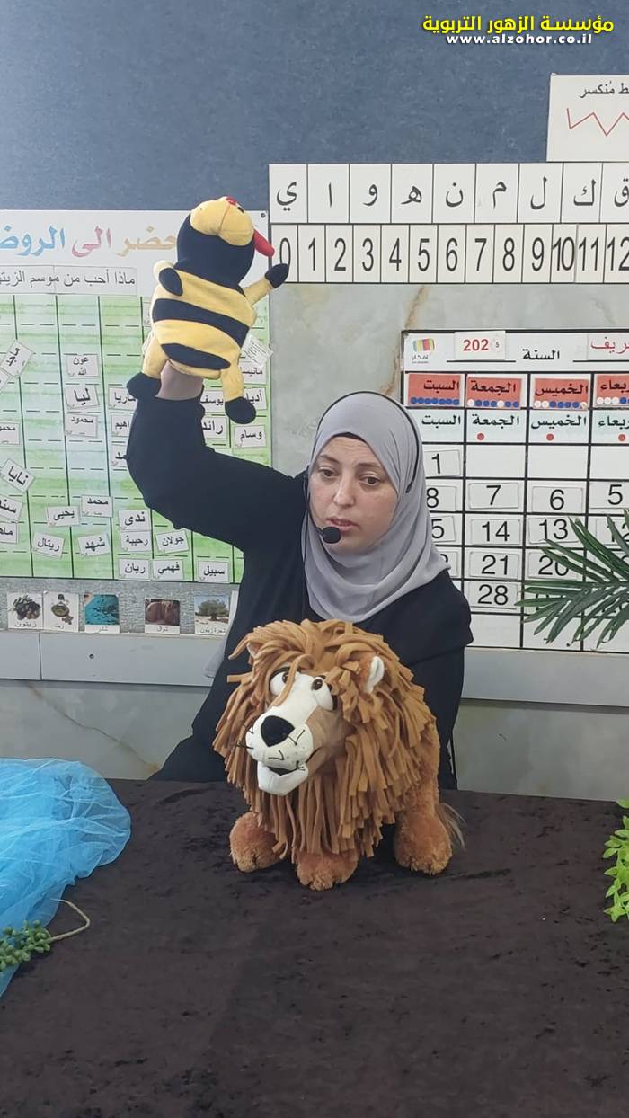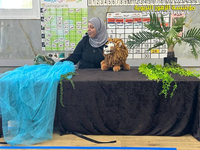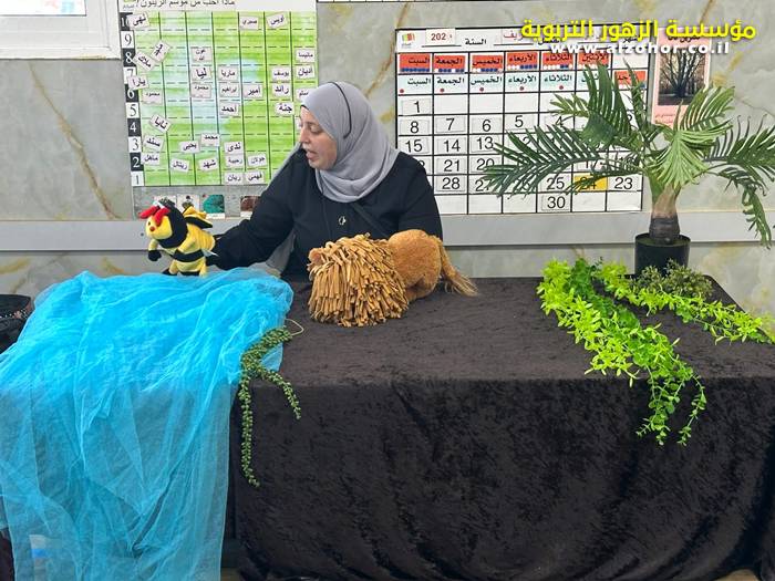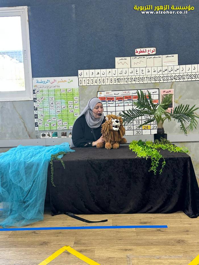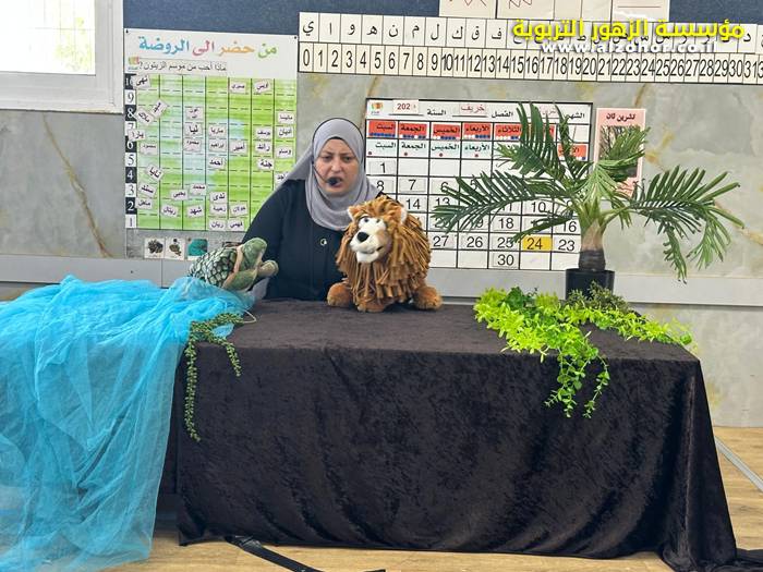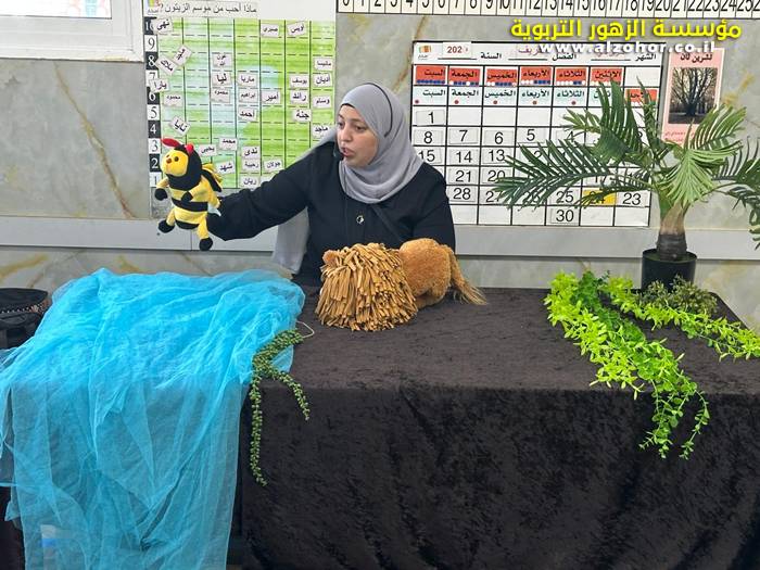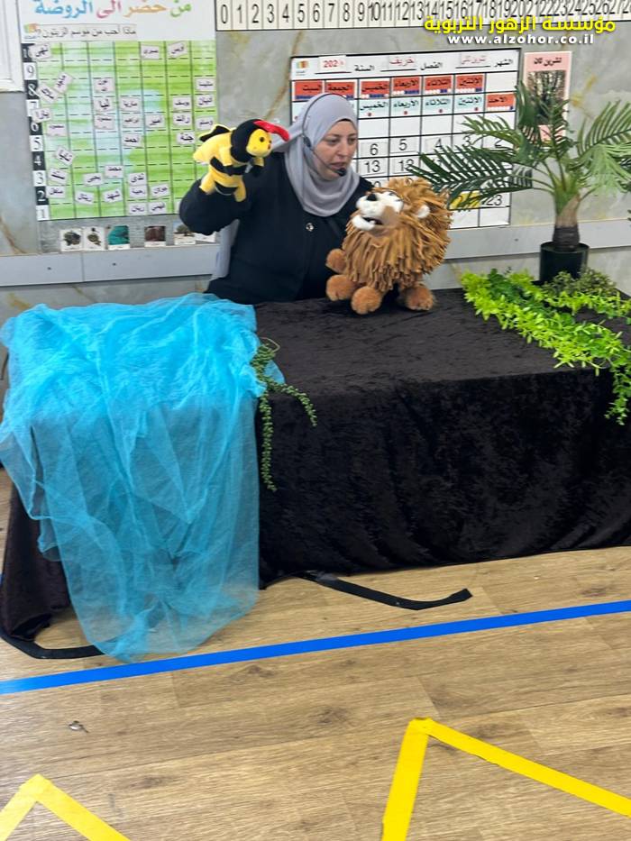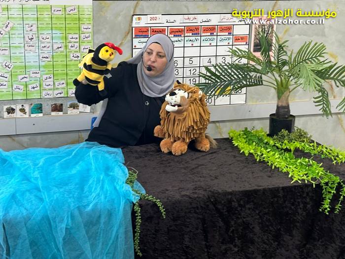مسرح دومى سرد قصة الاسد والنحلة في روضة الفراشات