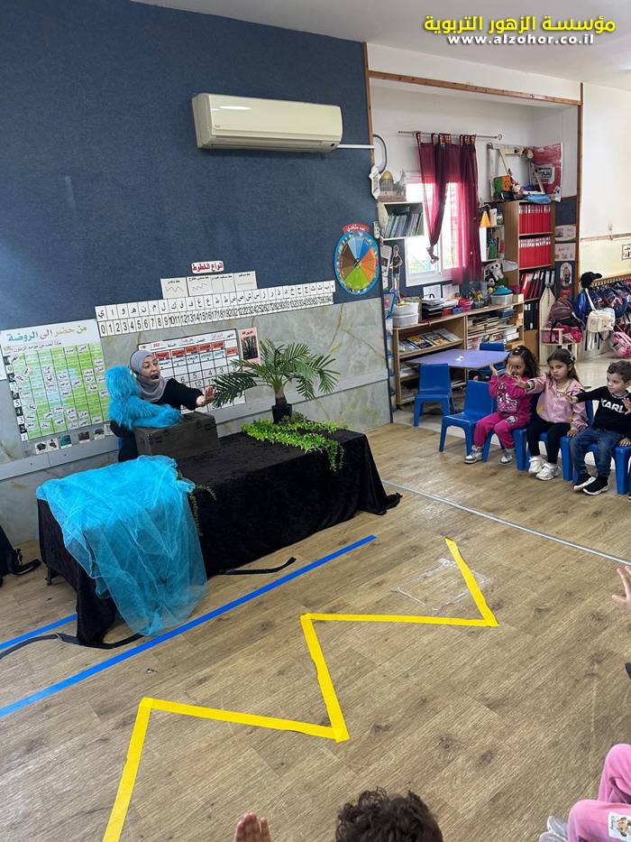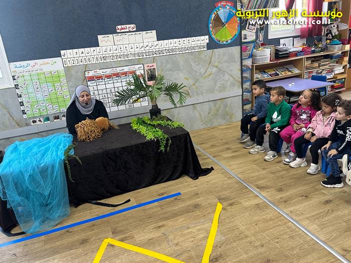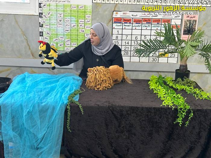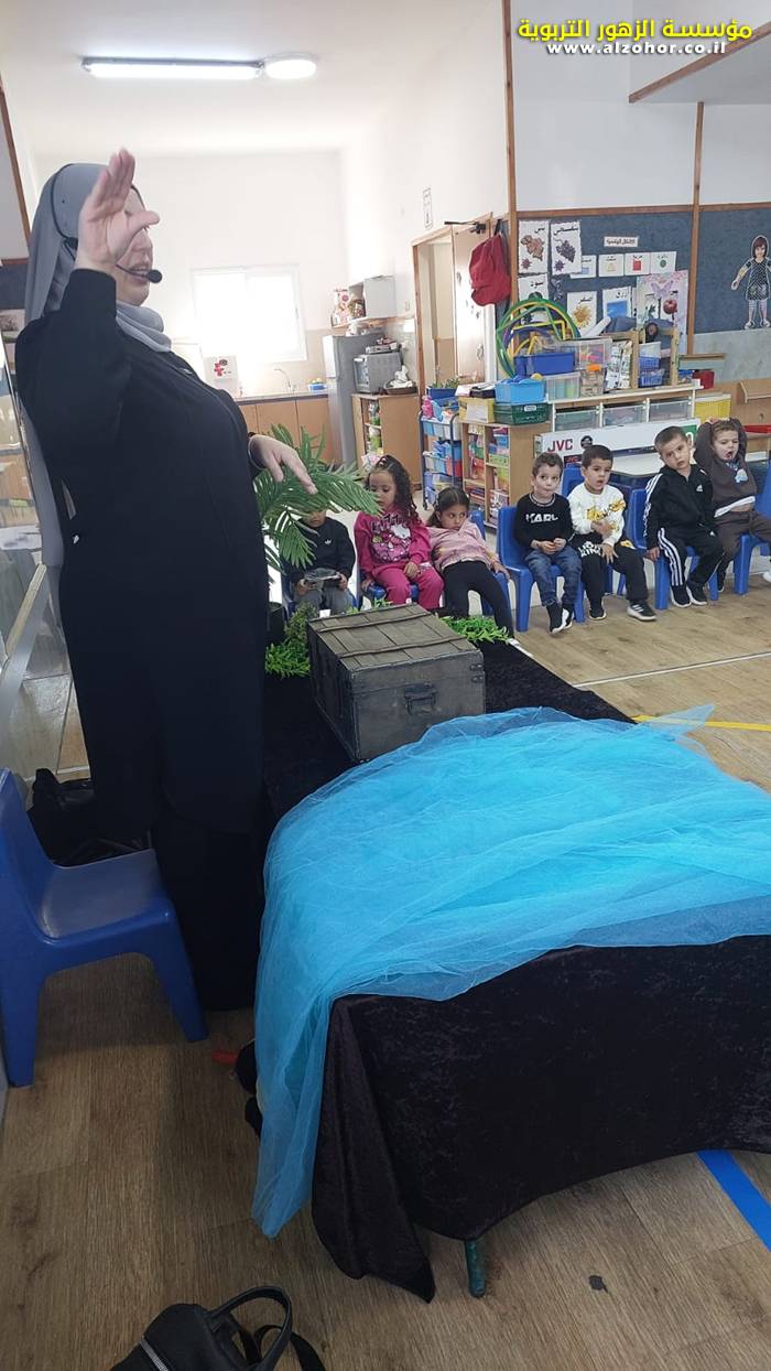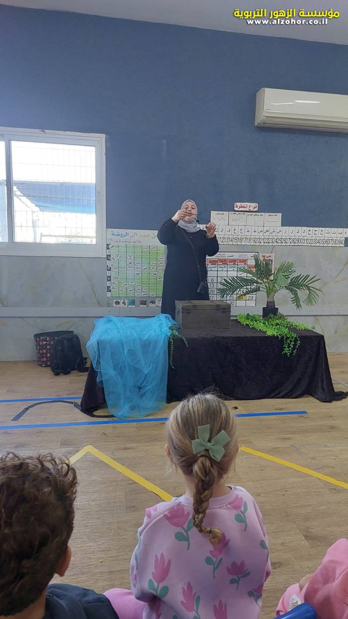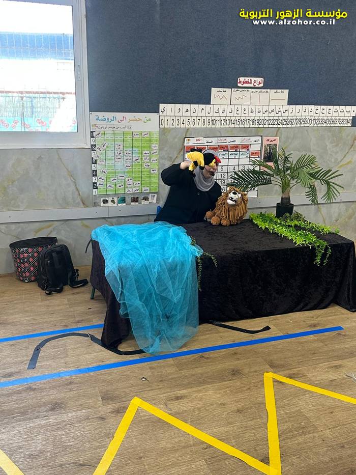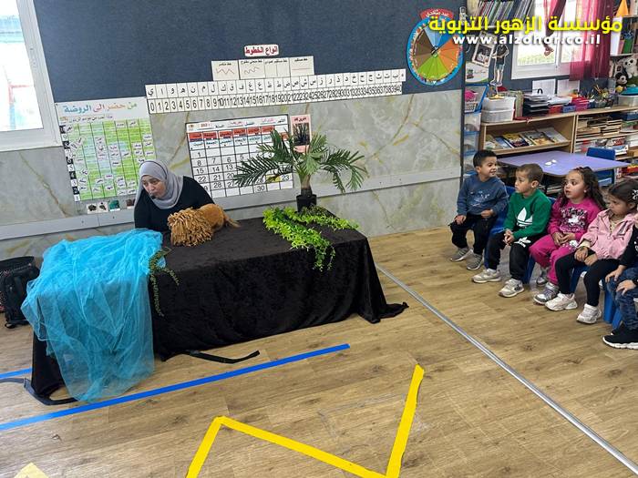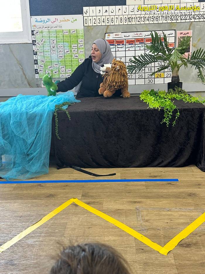 مسرح دومى سرد قصة الاسد والنحلة في روضة الفراشات