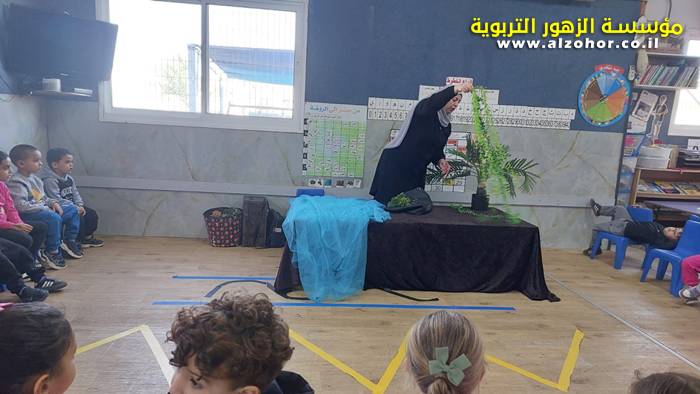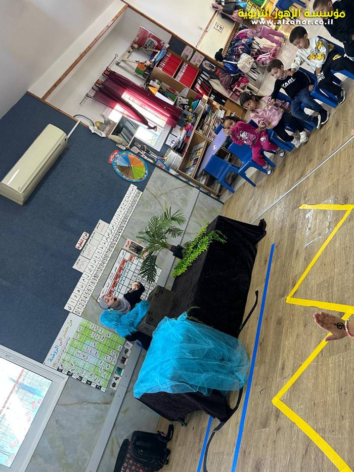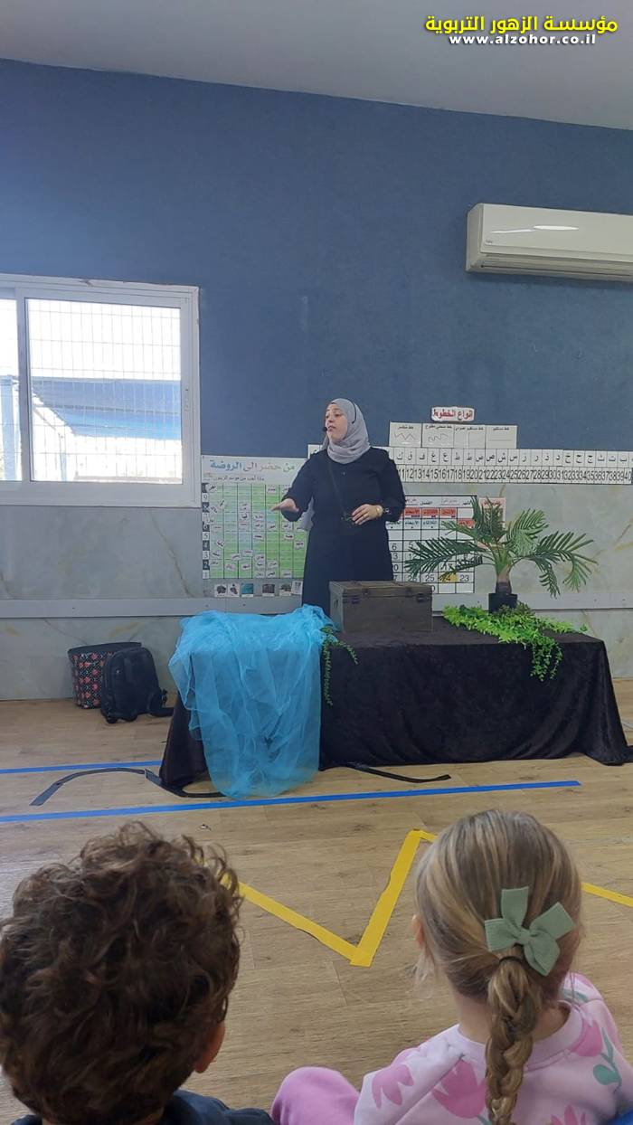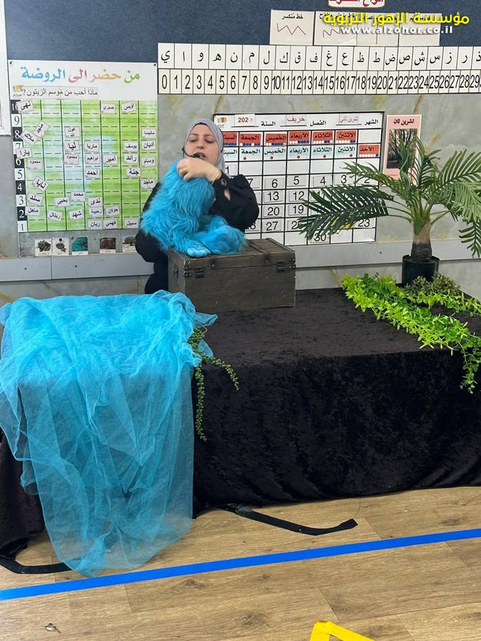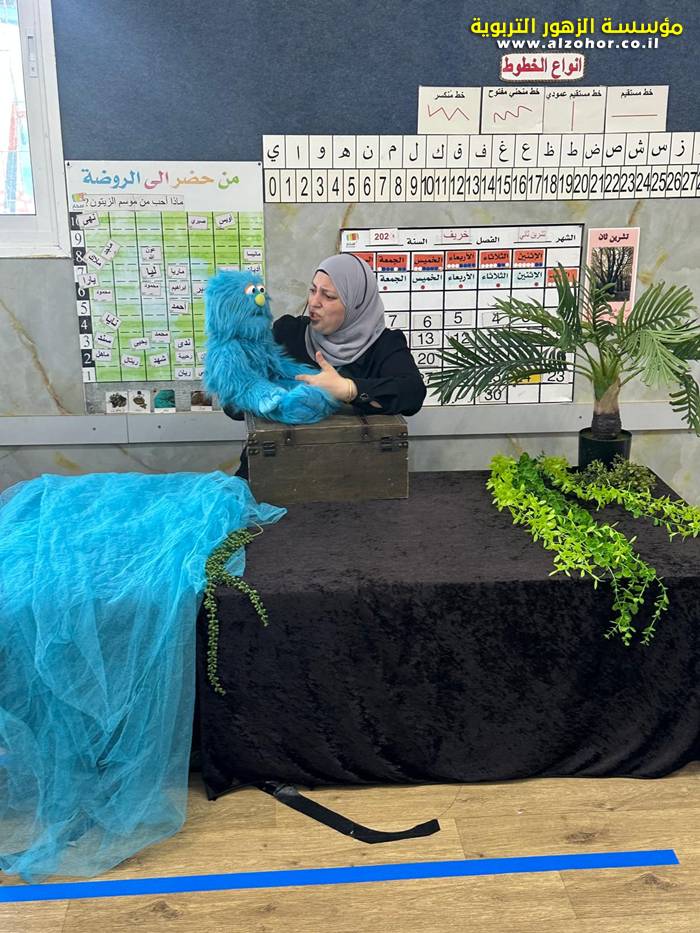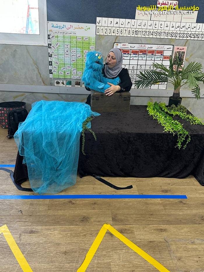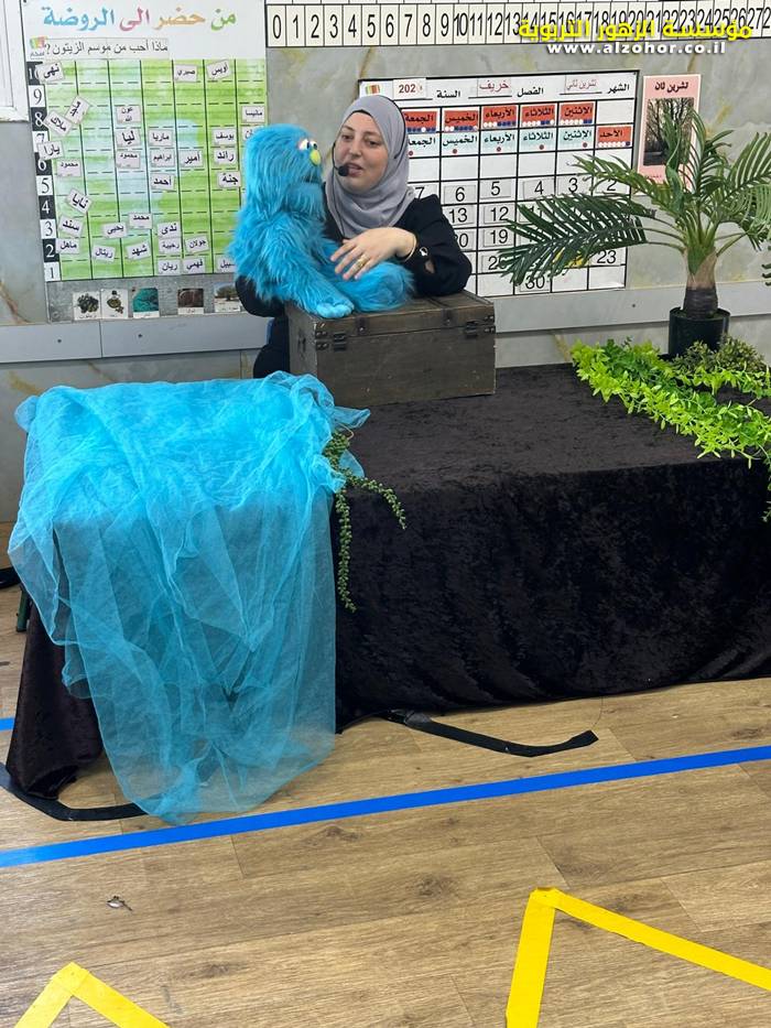 مسرح دومى سرد قصة الاسد والنحلة في روضة الفراشات
