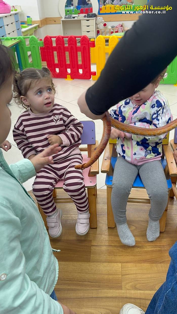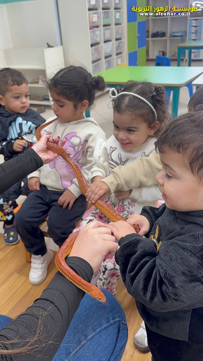 كُلُّ الشُّكْرِ وَالِامْتِنَانِ لِعَائِلَةِ الطِّفْلِ أُوبِي سِمَار، عَلَى تَقْدِيمِهِمْ وَرْشَةَ مُلَاطَفَةِ الْحَيَوَانَاتِ لِأَطْفَالِ حَضَانَةِ الزُّهُورِ، وَالَّتِي تَعَرَّفَ فِيهَا الصِّغَارُ عَلَى الدَّجَاجَةِ، وَالأَرْنَبِ، وَالْحَيَّةِ، وَالْكَلْبِ، وَالْعُصْفُورِ. لَقَدْ أَدْخَلَتِ الْوَرْشَةُ عَلَيْهِمُ الْفَرَحَ وَالْحَمَاسَ، وَأَثْرَتْ يَوْمَهُمْ بِتَجْرِبَةٍ مُفِيدَةٍ وَمُمْتِعَةٍ.