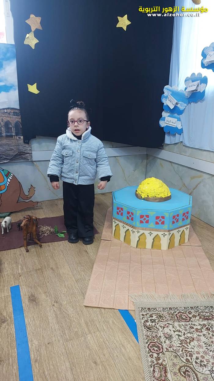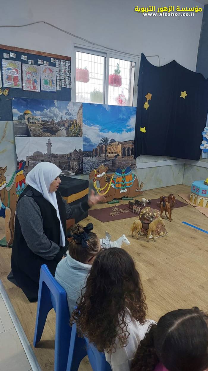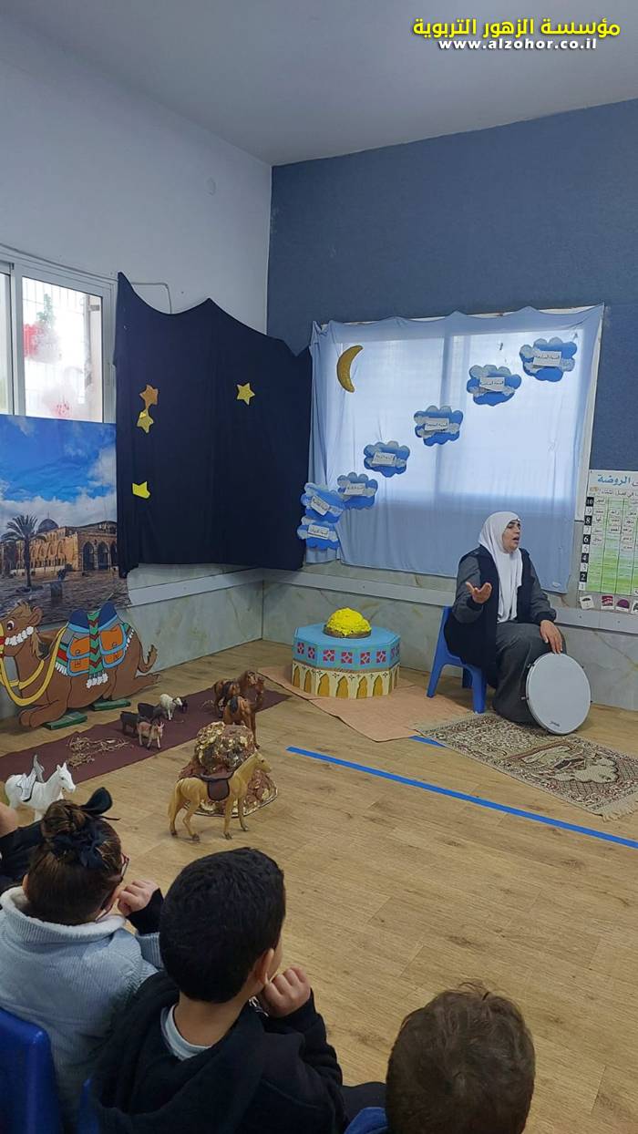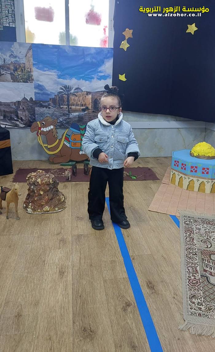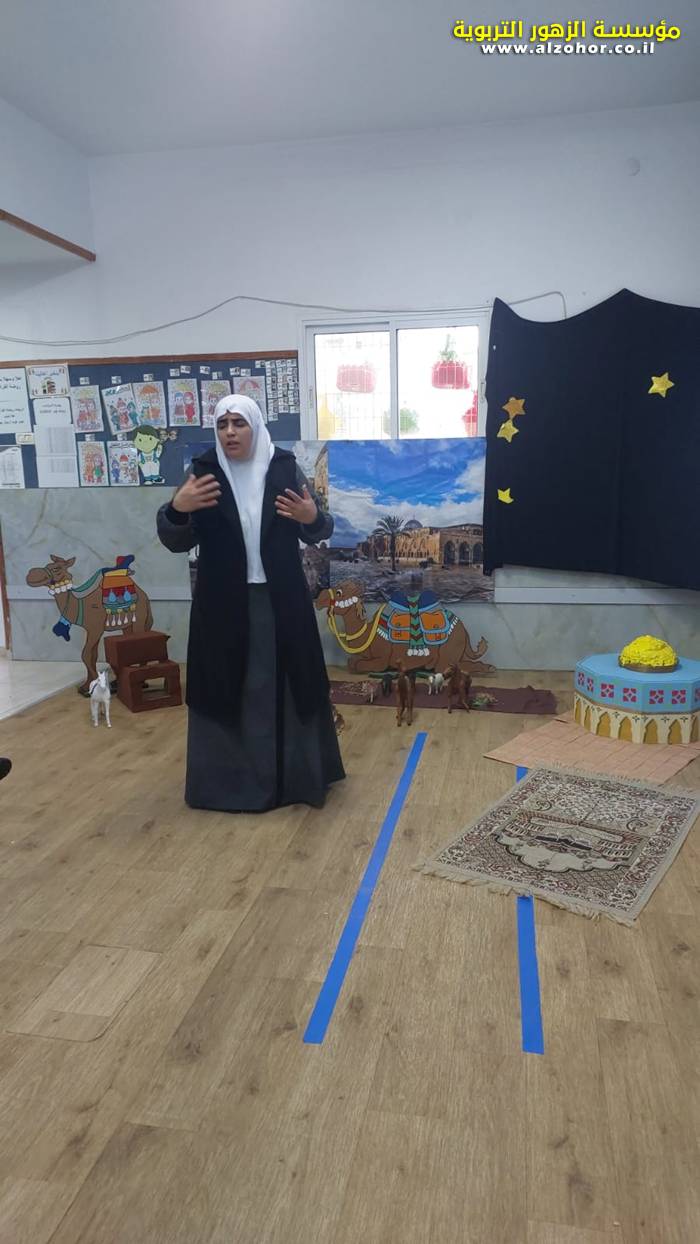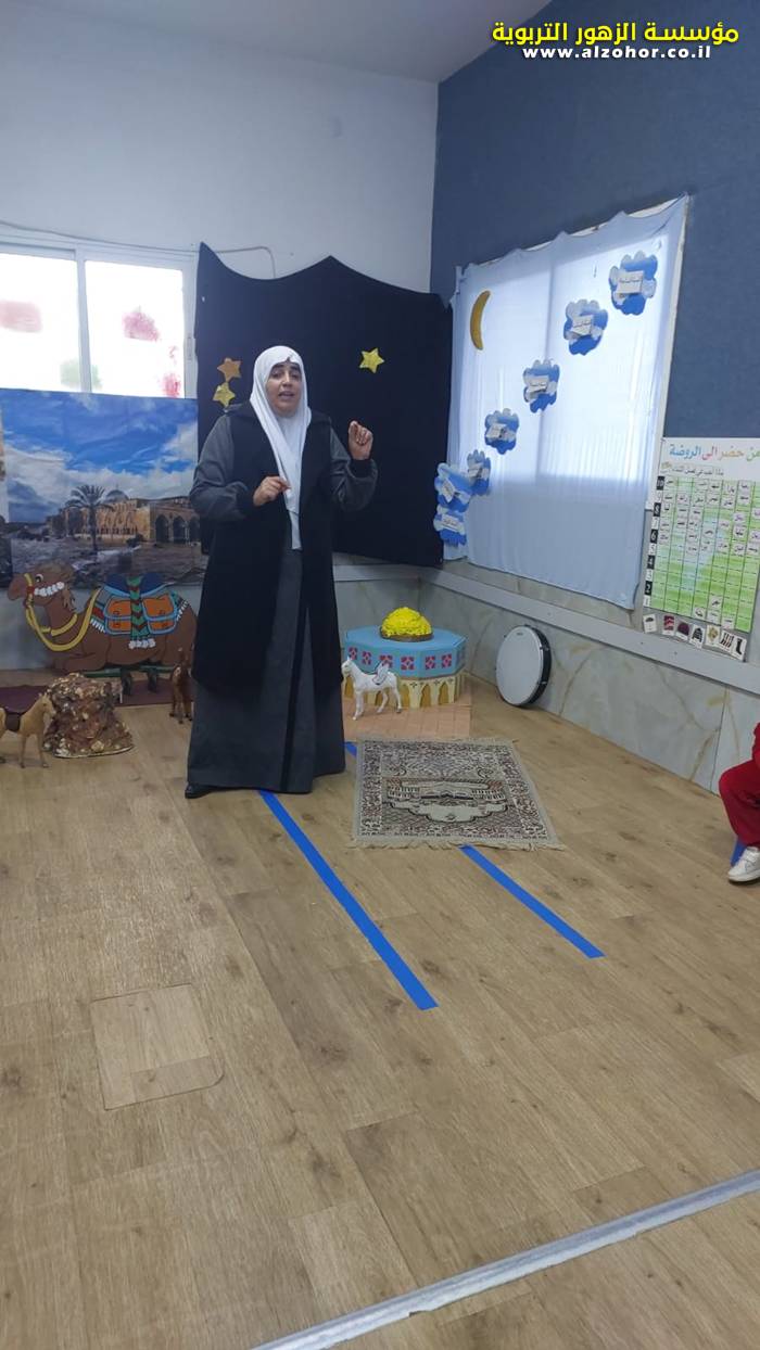 سرد قصة عن ذكرى الاسراء والمعراج مع الحكواتية ختام ياسين مقدمة من الطفلة الامورة جولان سمار في روضة الفراشات
