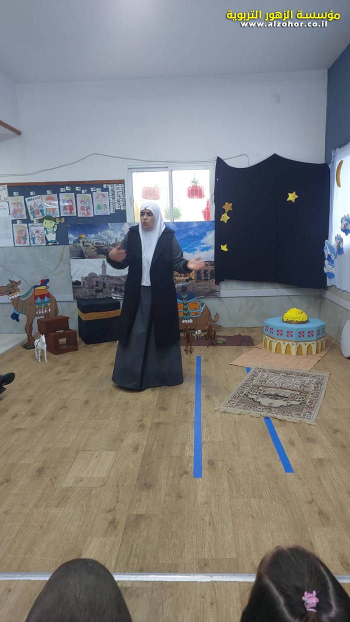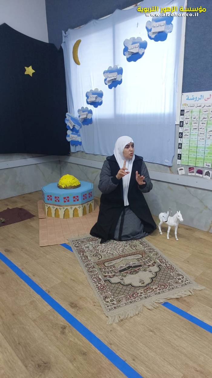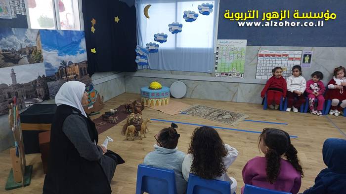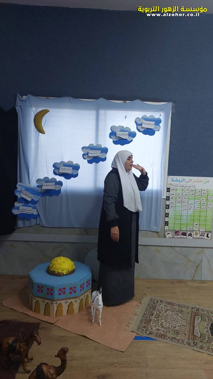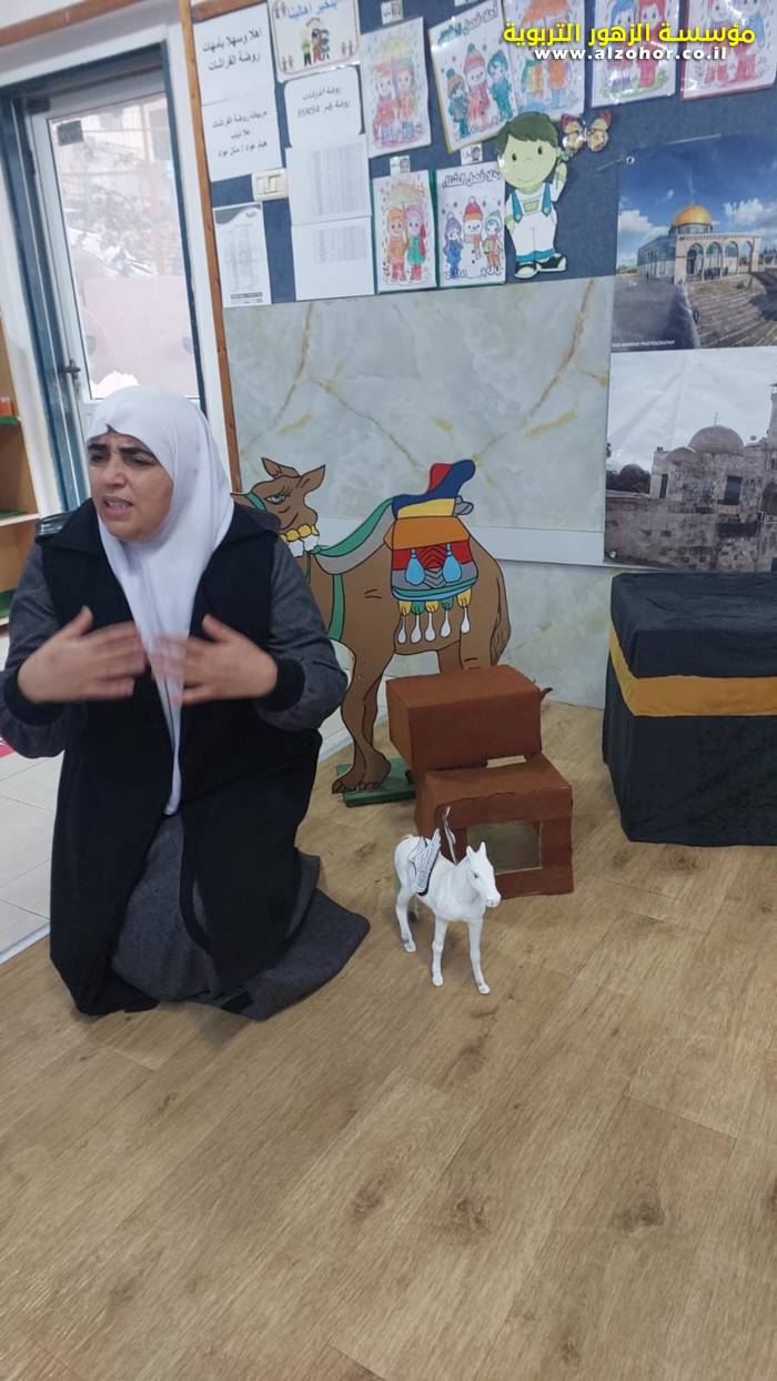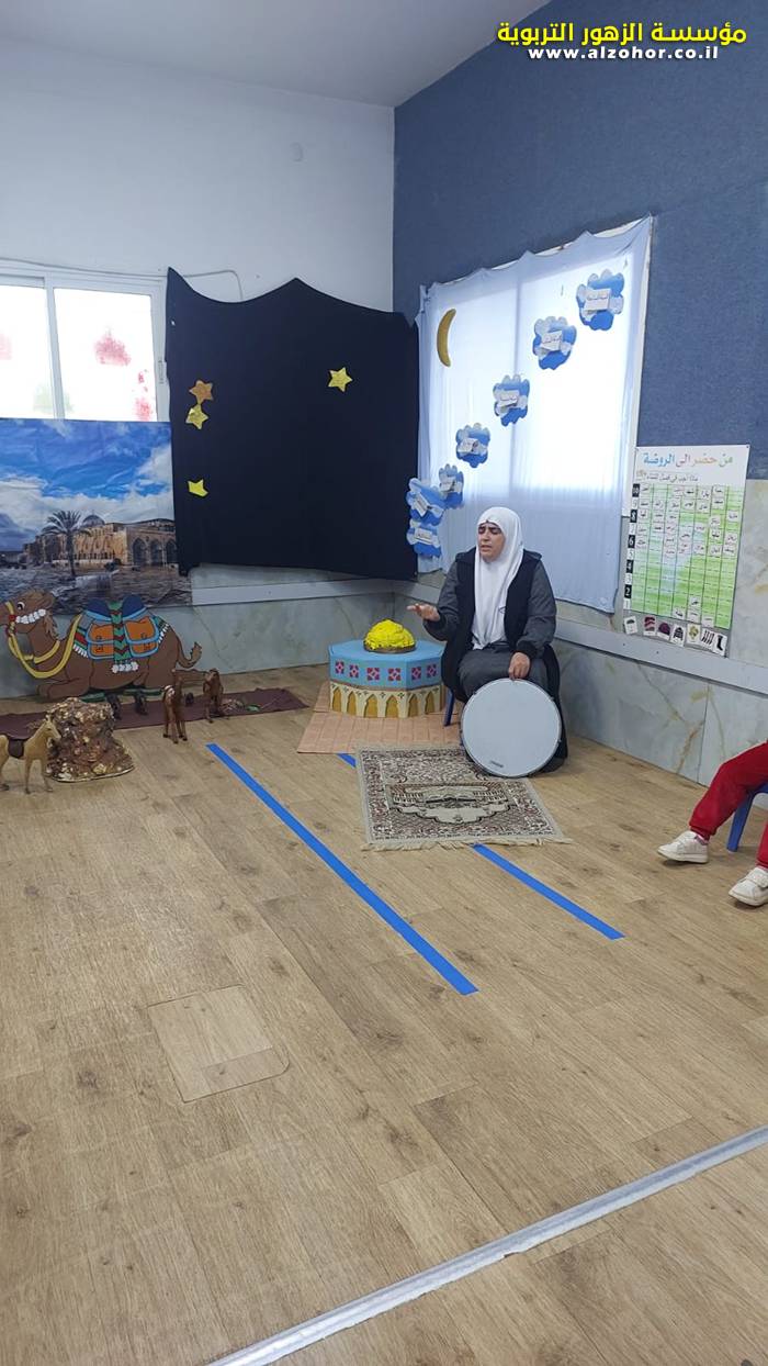 سرد قصة عن ذكرى الاسراء والمعراج مع الحكواتية ختام ياسين مقدمة من الطفلة الامورة جولان سمار في روضة الفراشات