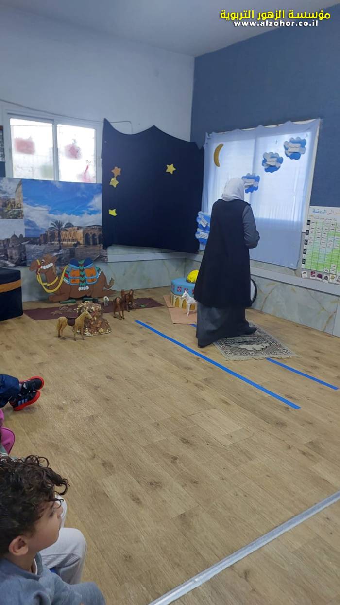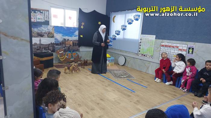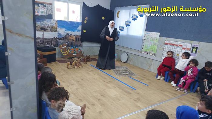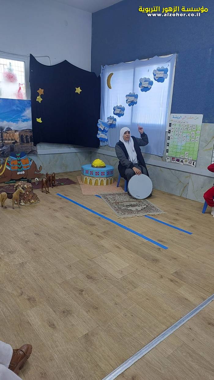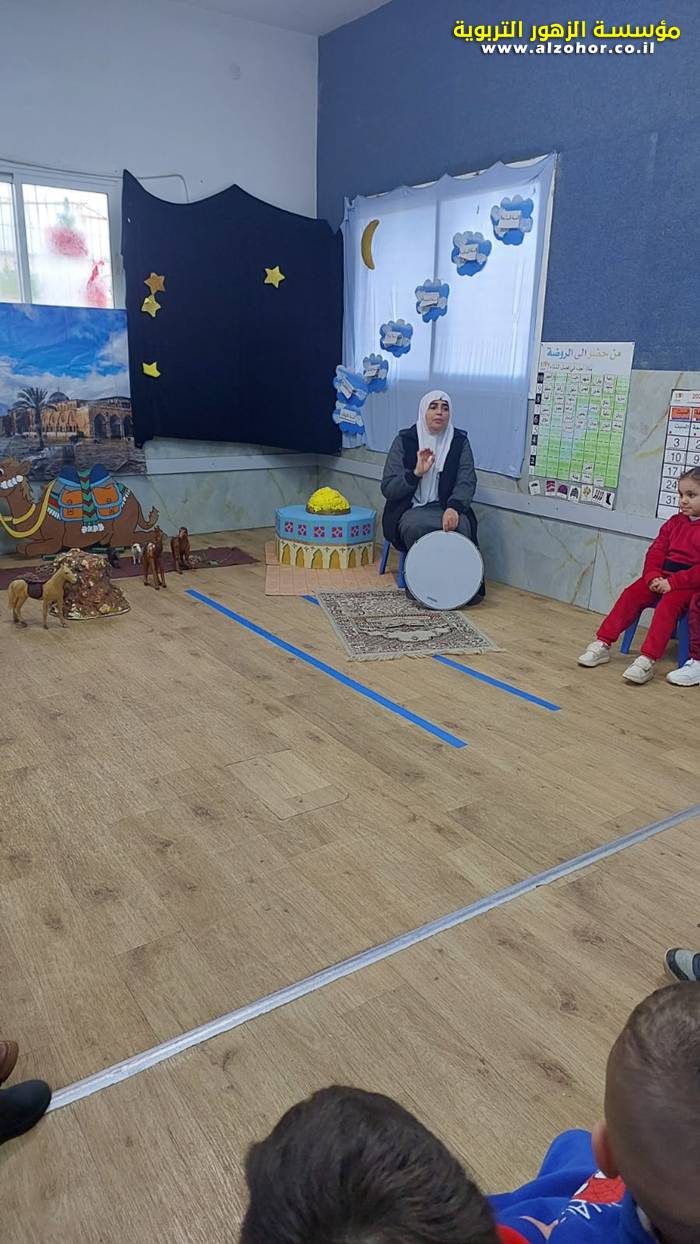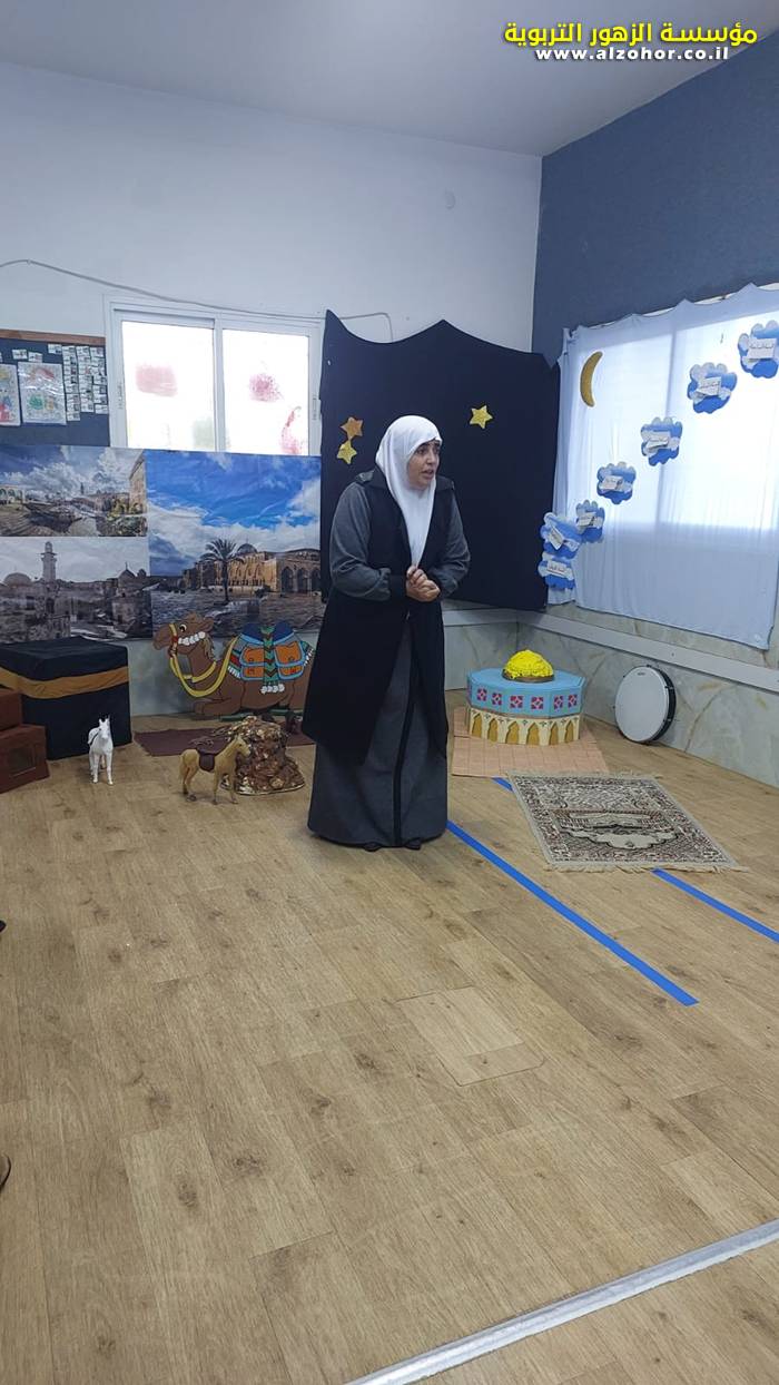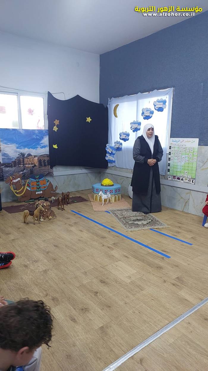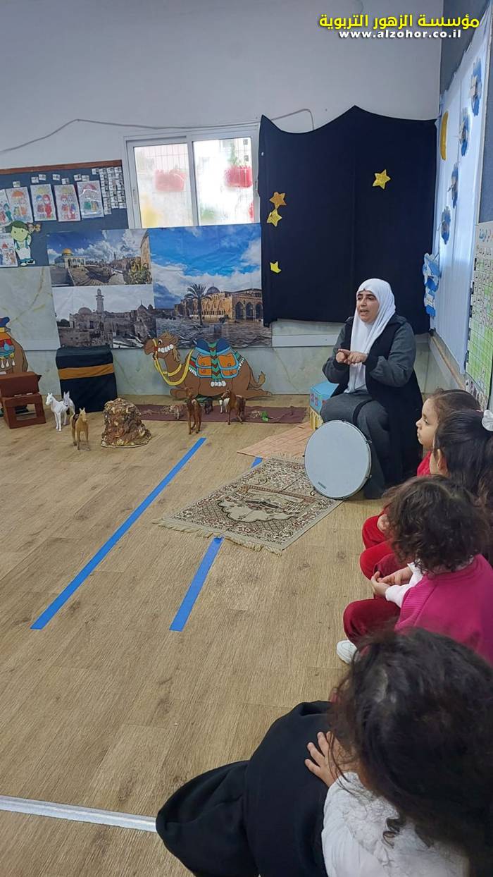 سرد قصة عن ذكرى الاسراء والمعراج مع الحكواتية ختام ياسين مقدمة من الطفلة الامورة جولان سمار في روضة الفراشات