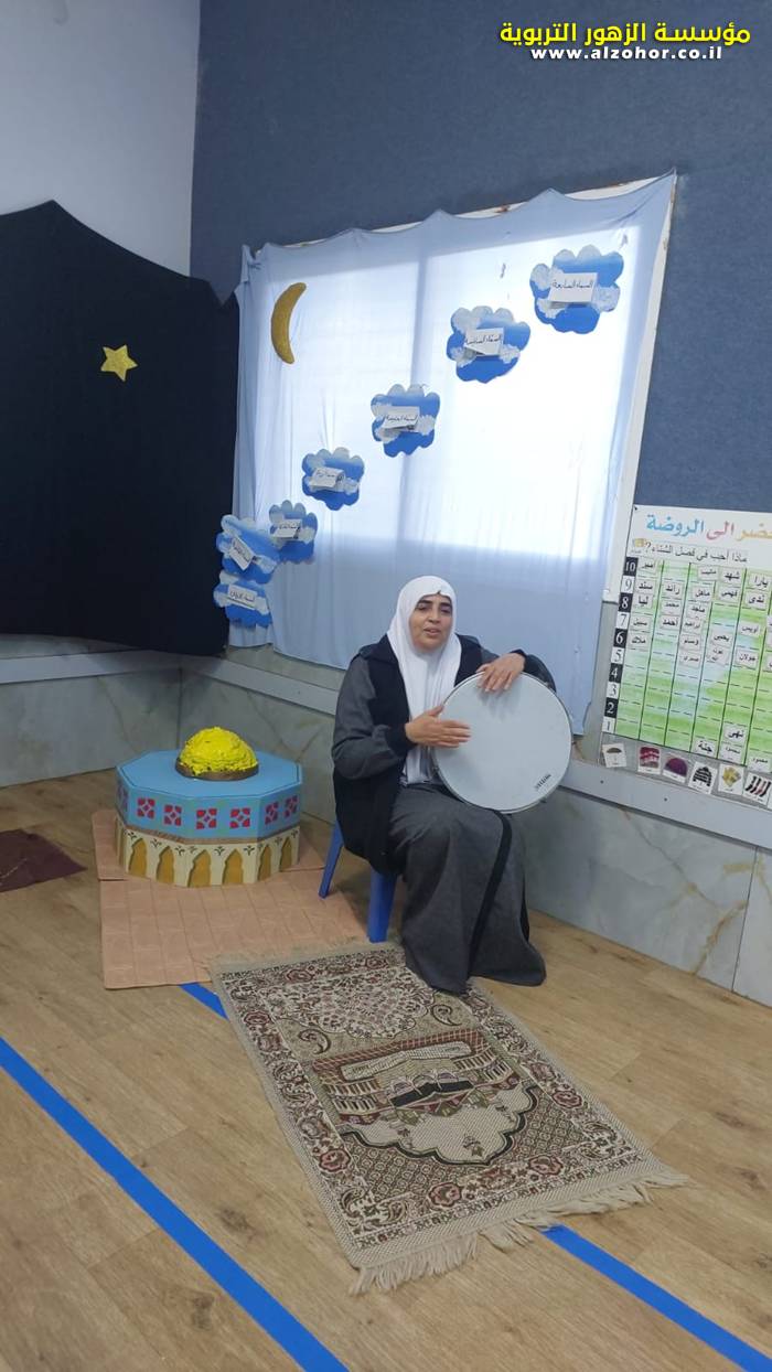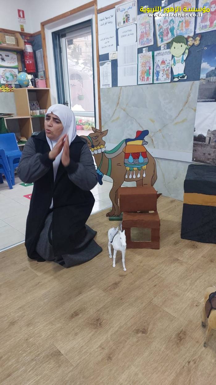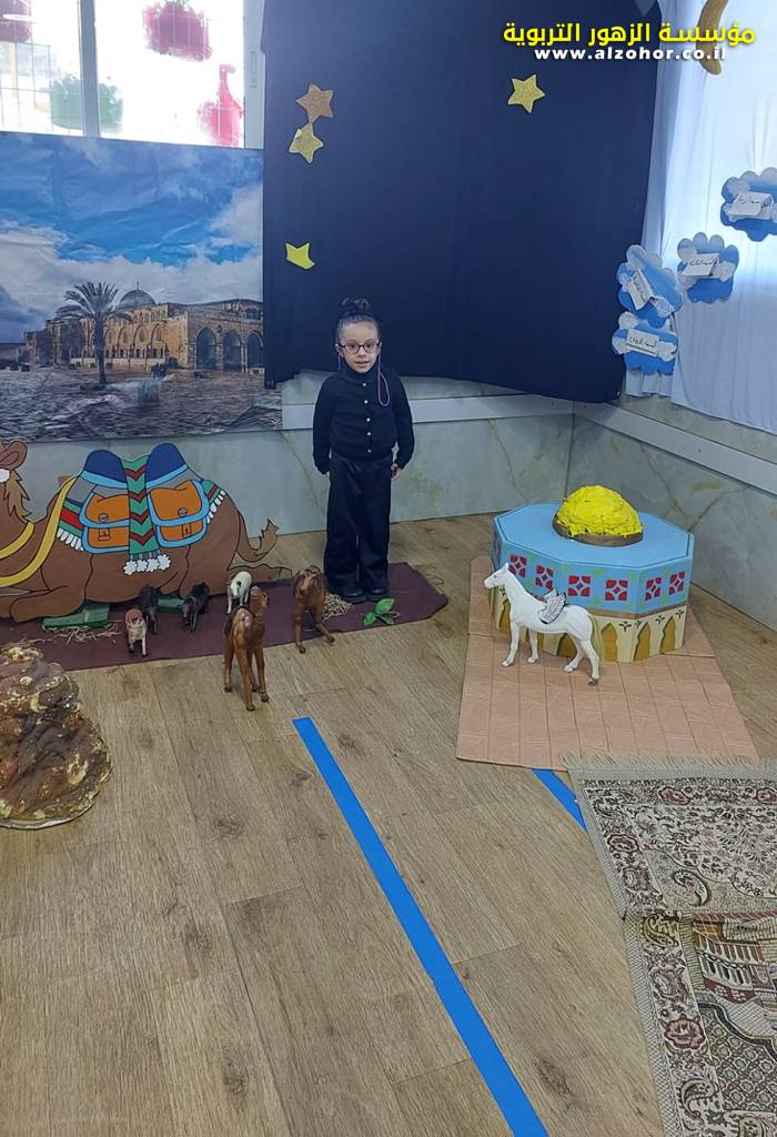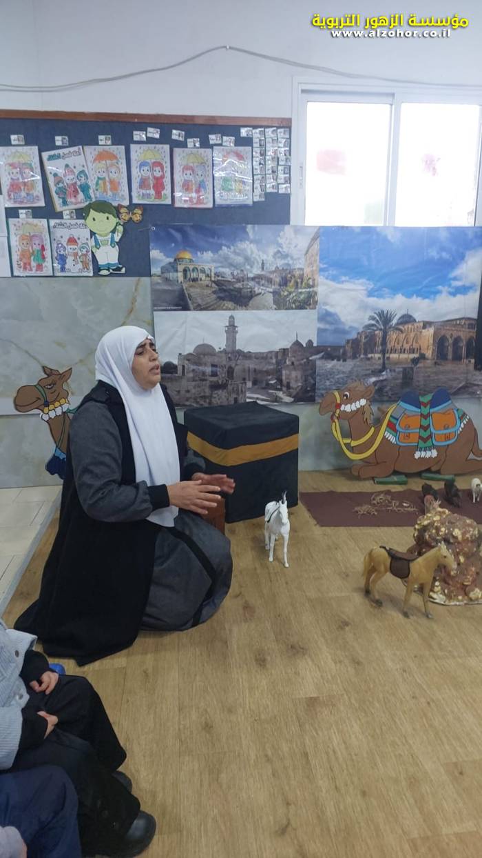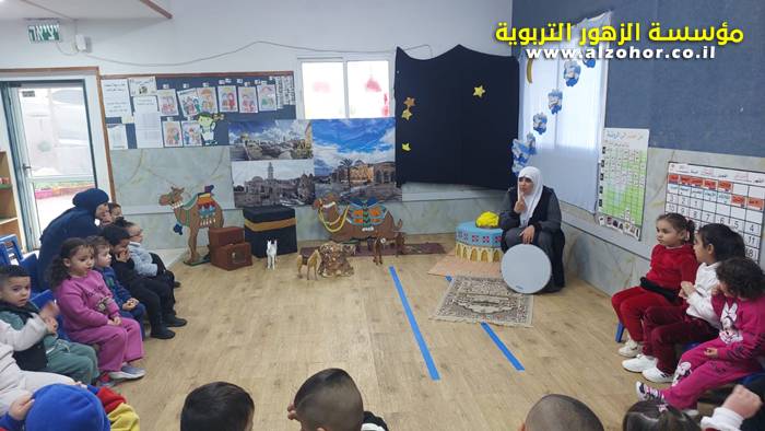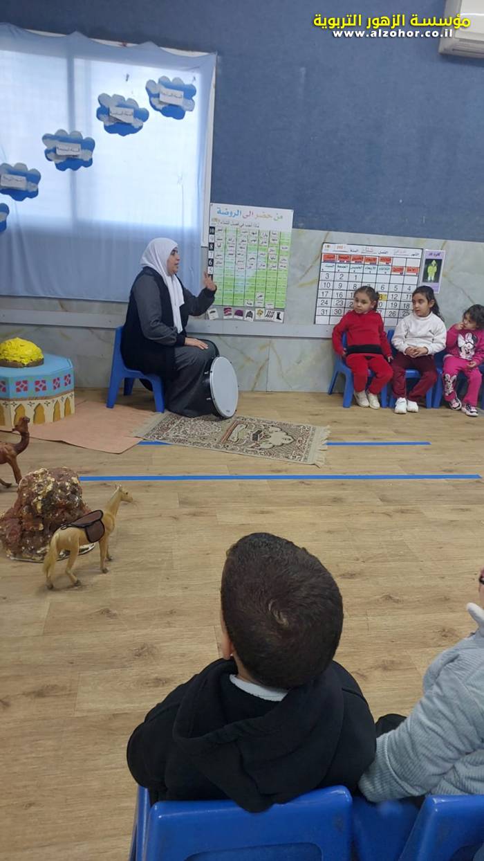 سرد قصة عن ذكرى الاسراء والمعراج مع الحكواتية ختام ياسين مقدمة من الطفلة الامورة جولان سمار في روضة الفراشات