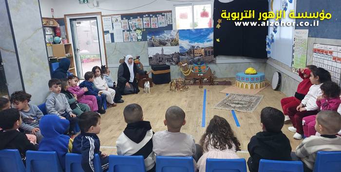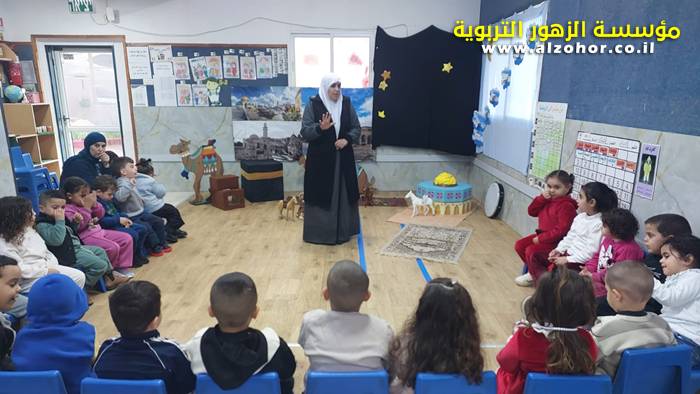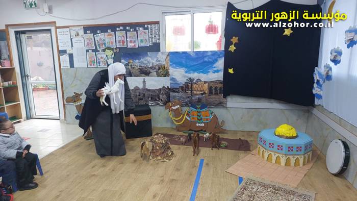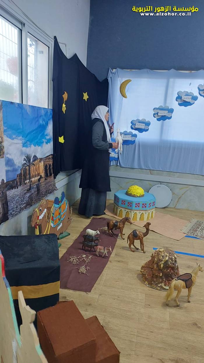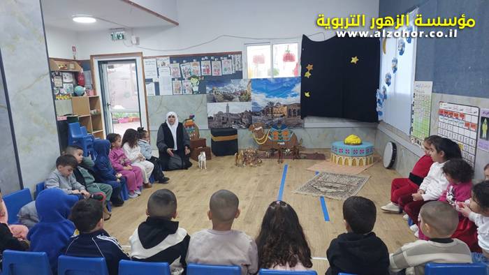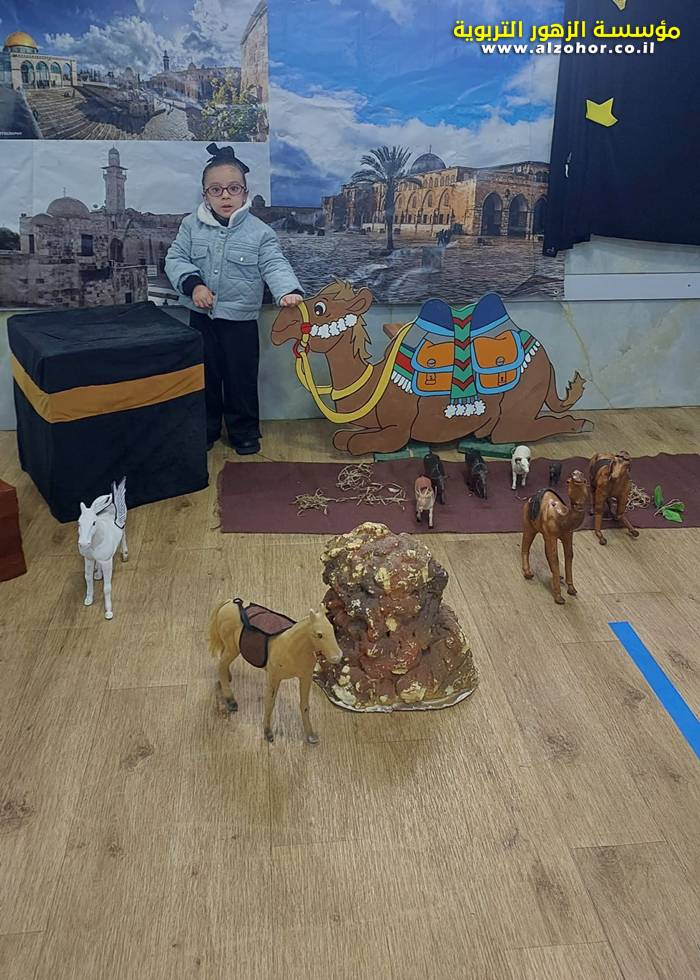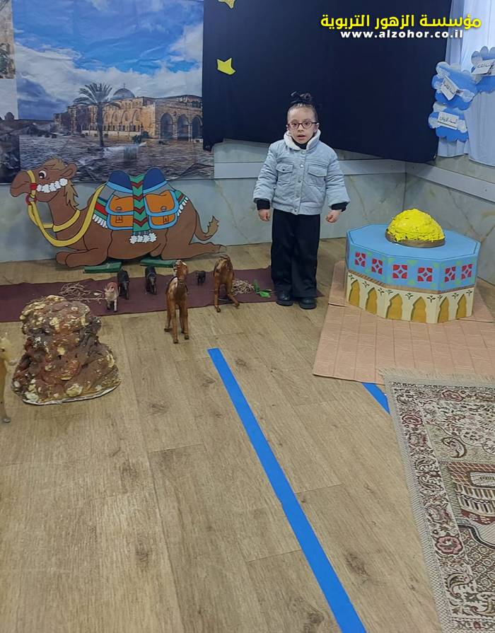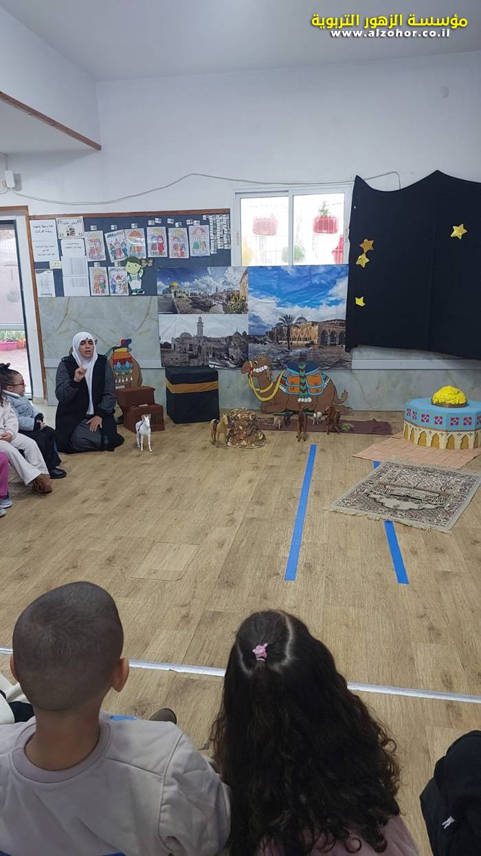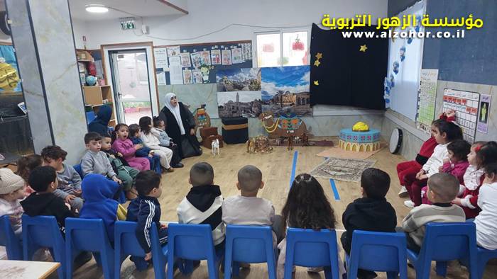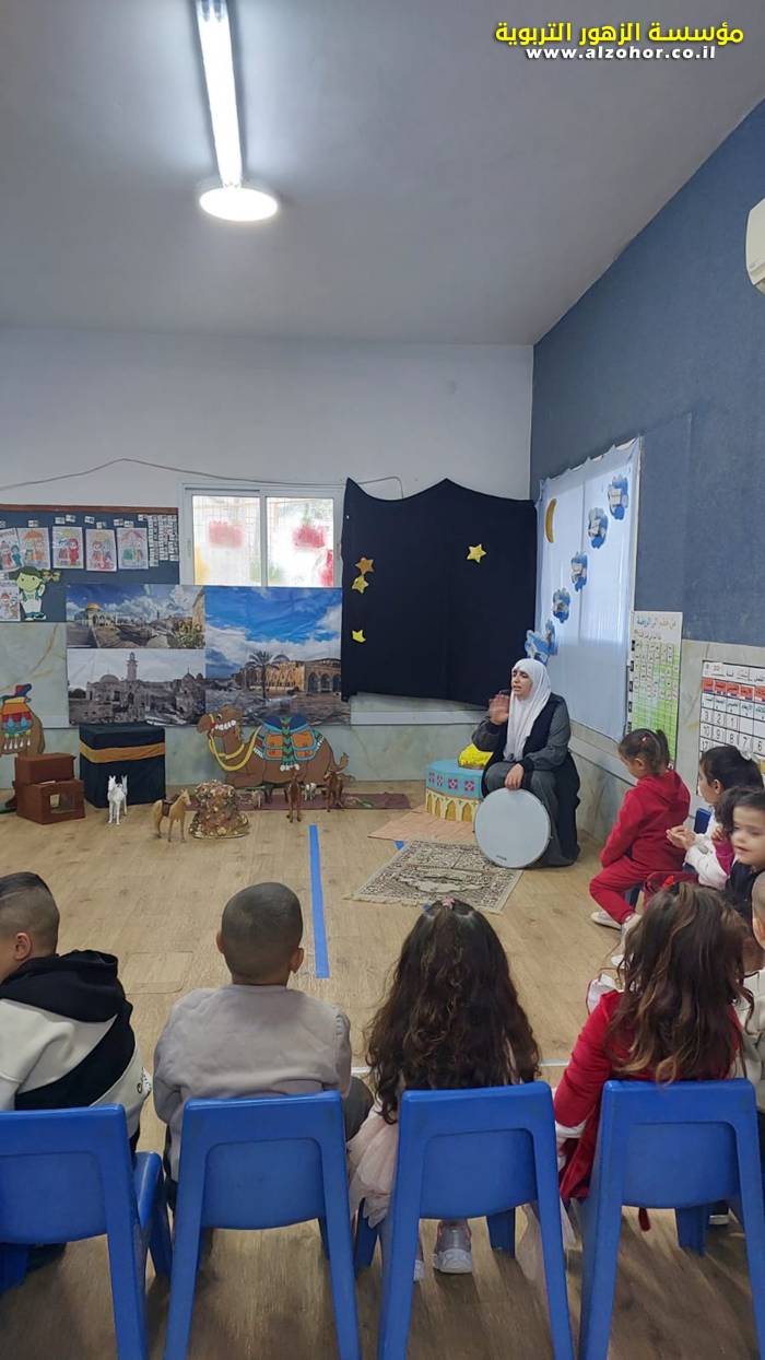 سرد قصة عن ذكرى الاسراء والمعراج مع الحكواتية ختام ياسين مقدمة من الطفلة الامورة جولان سمار في روضة الفراشات