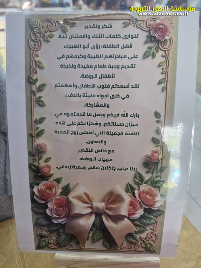 وجبة الاسبوع في روضة الورود مقدمة من الطفلة الجميلة رؤى ابو الهيجاء